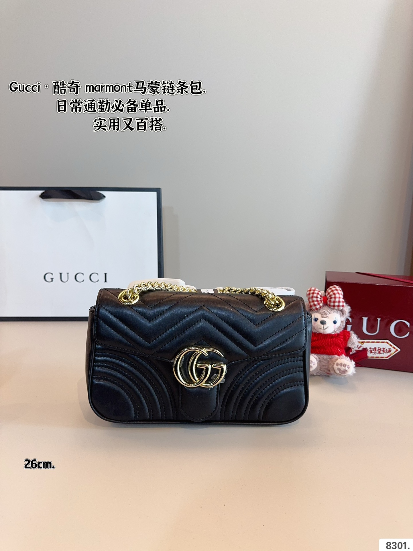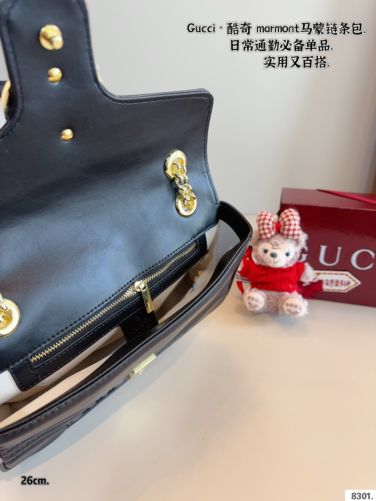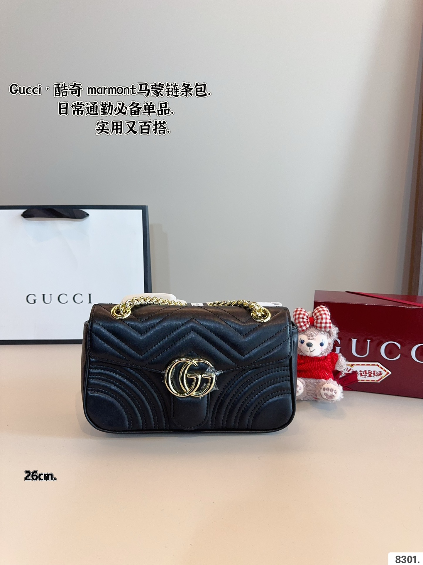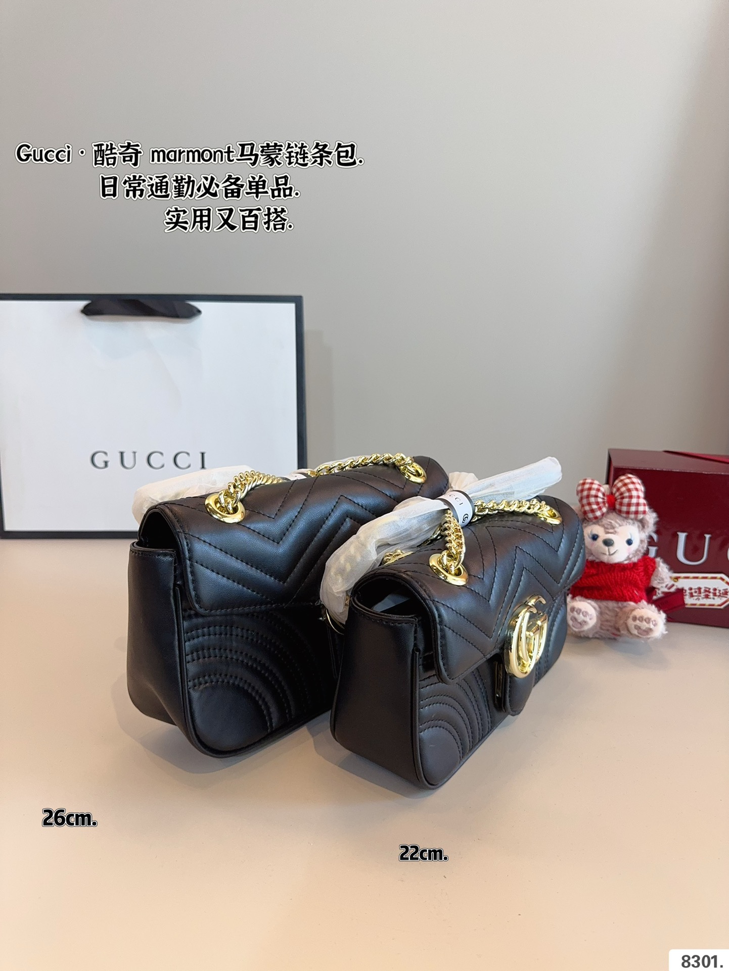 Chic Gucci Marmont chain bag. High-fashion, versatile design. Ideal for casual and dressy styles. Available in two sizes: 26*7*15cm, 22*6*12cm.