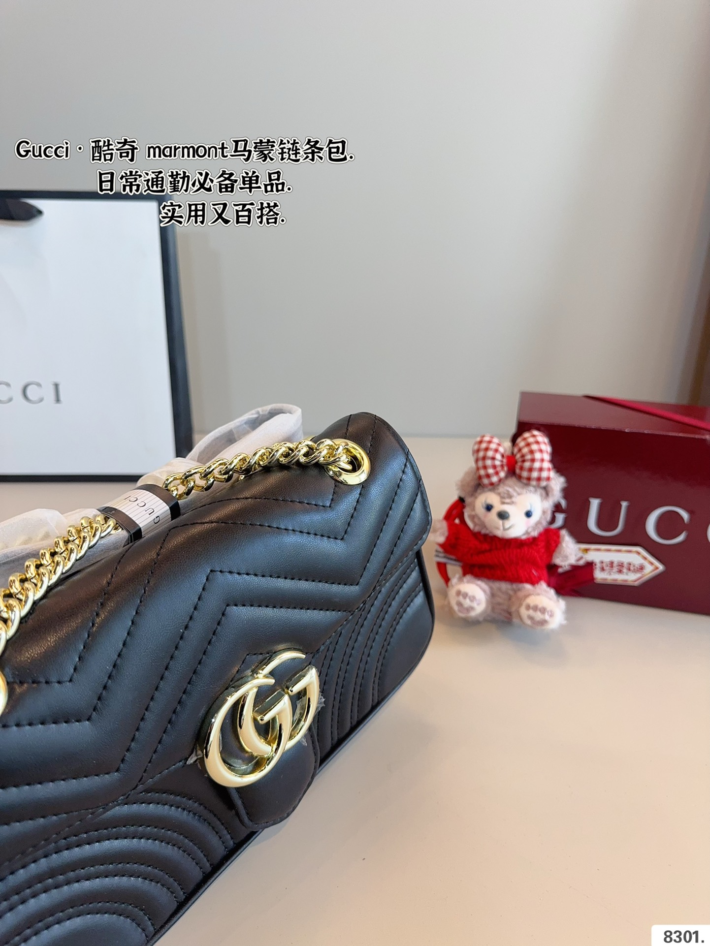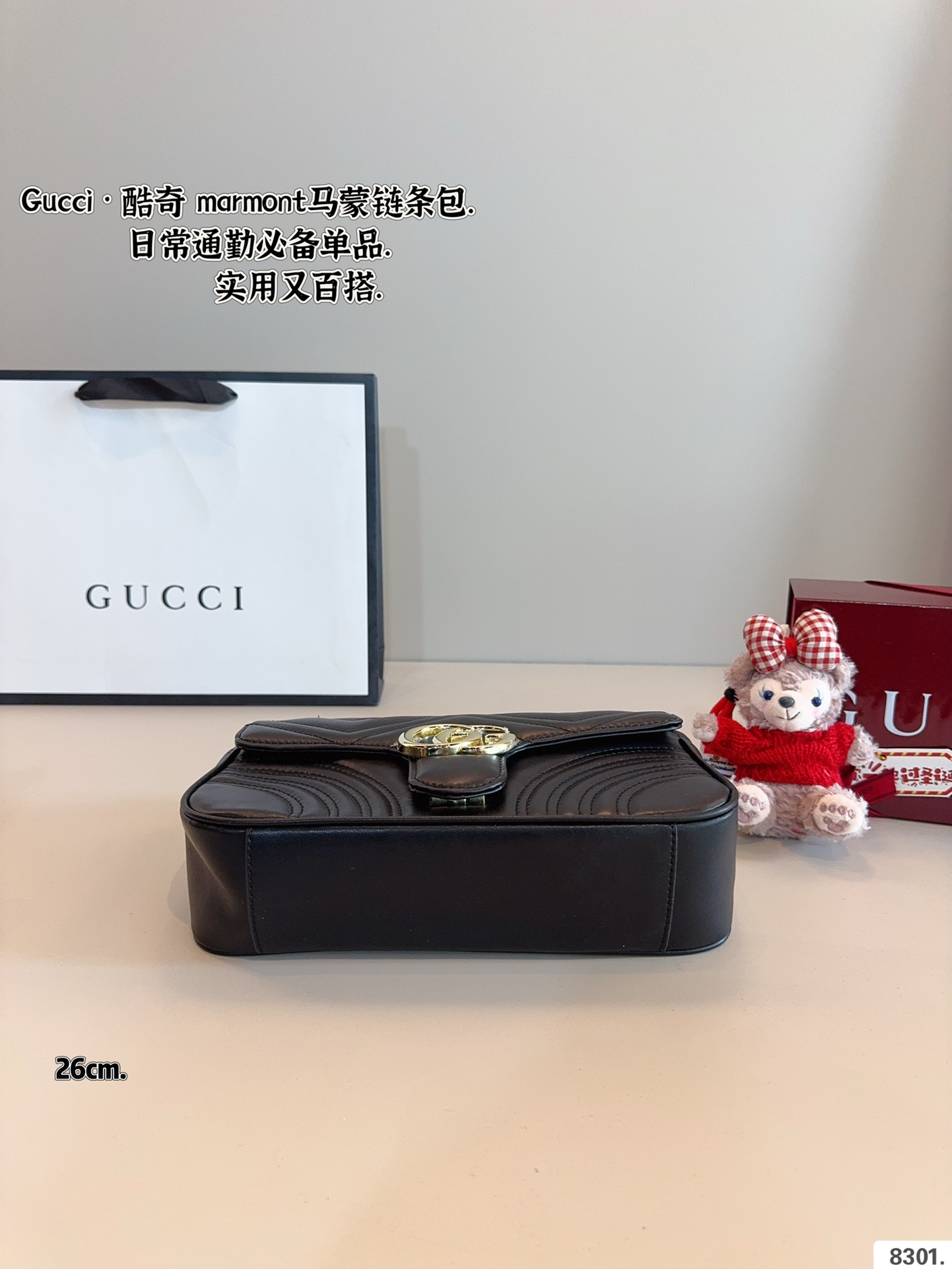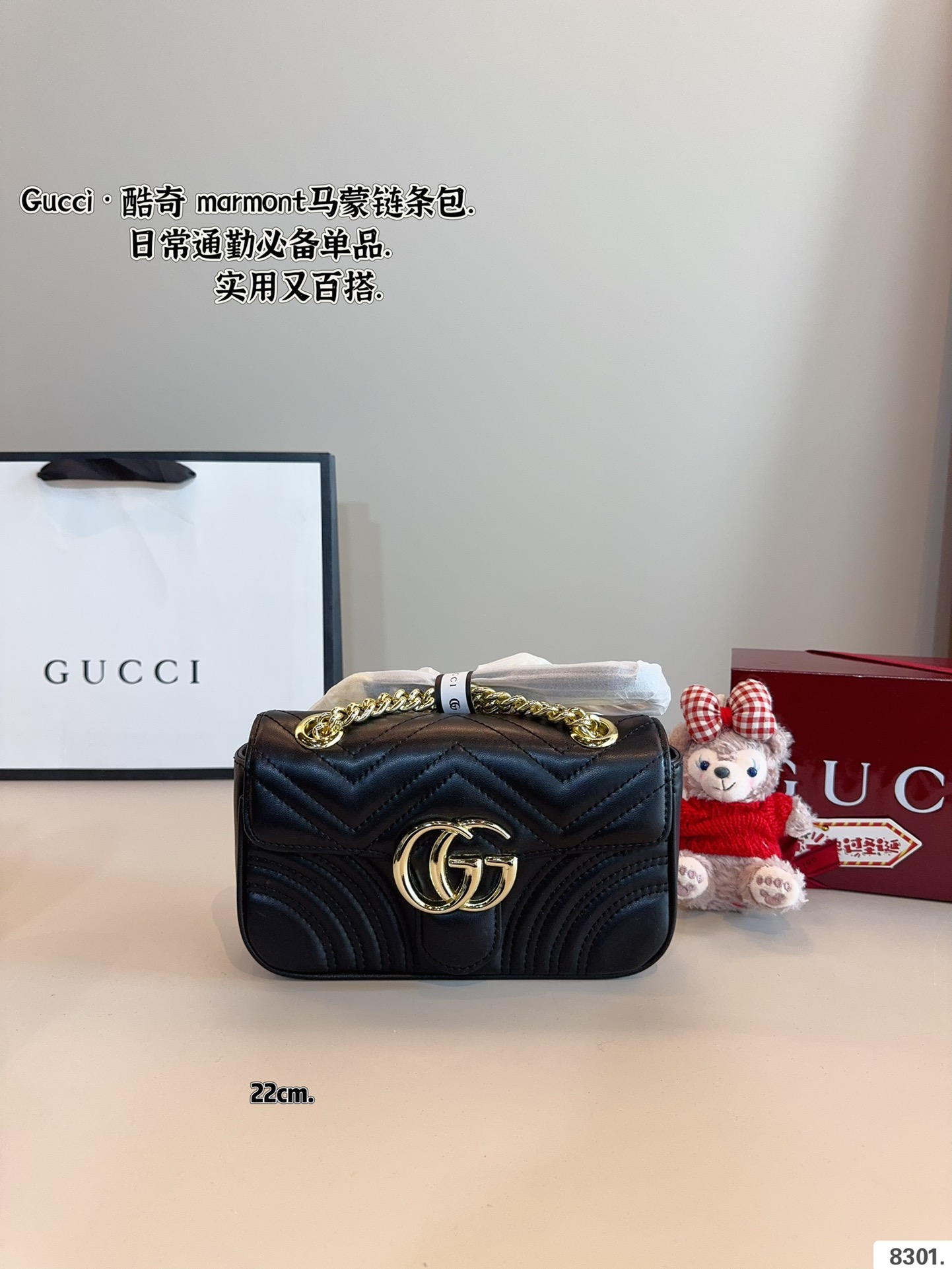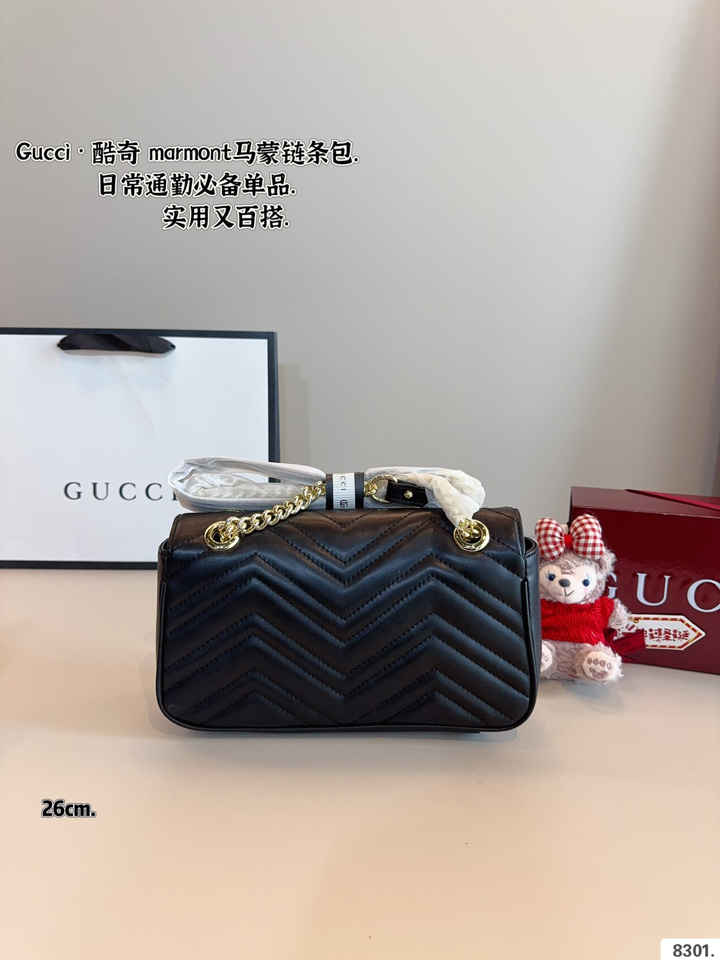 Chic Gucci Marmont chain bag. High-fashion, versatile design. Ideal for casual and dressy styles. Available in two sizes: 26*7*15cm, 22*6*12cm.