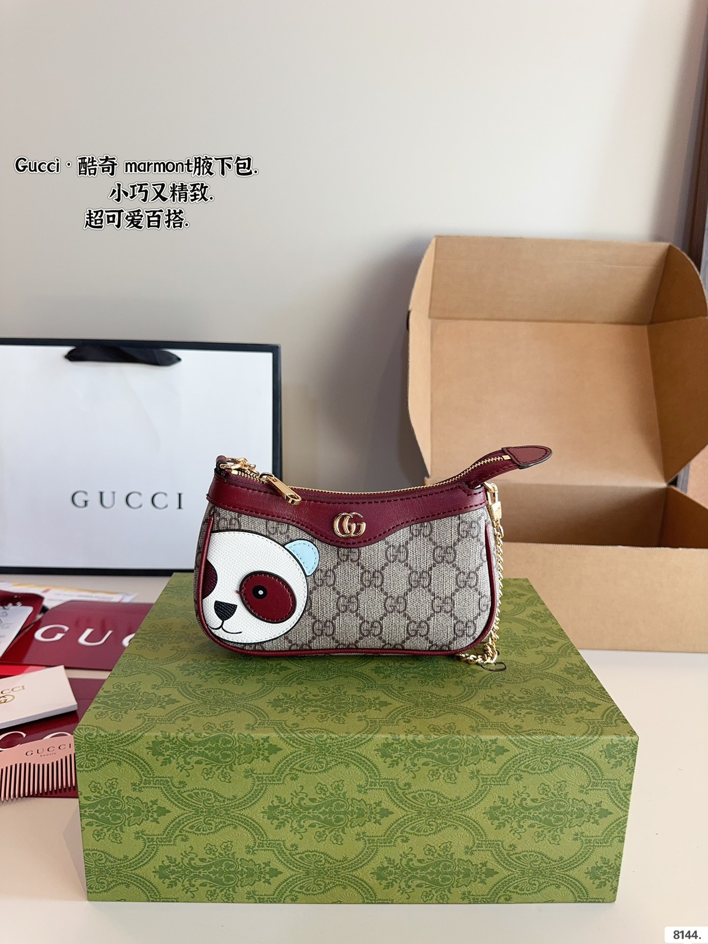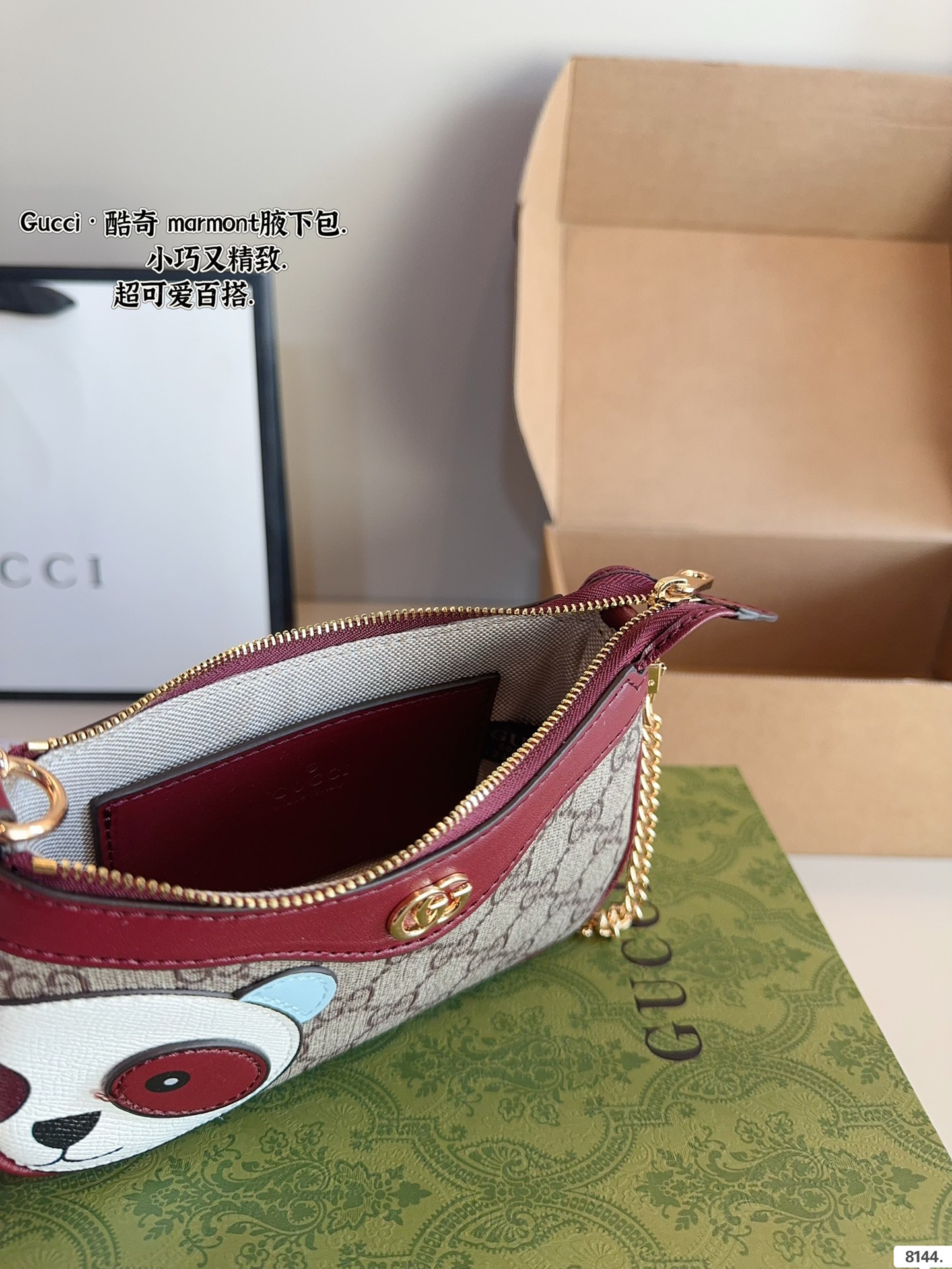 Elevate your style with this Gucci Marmont mini shoulder bag featuring an adorable panda design. Perfect for adding a touch of retro charm to any outfit.19*3*10cm