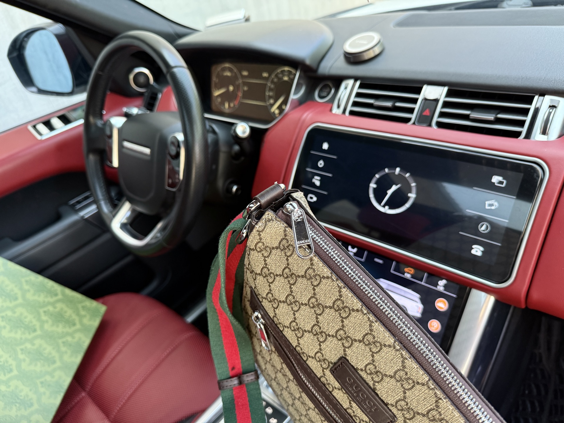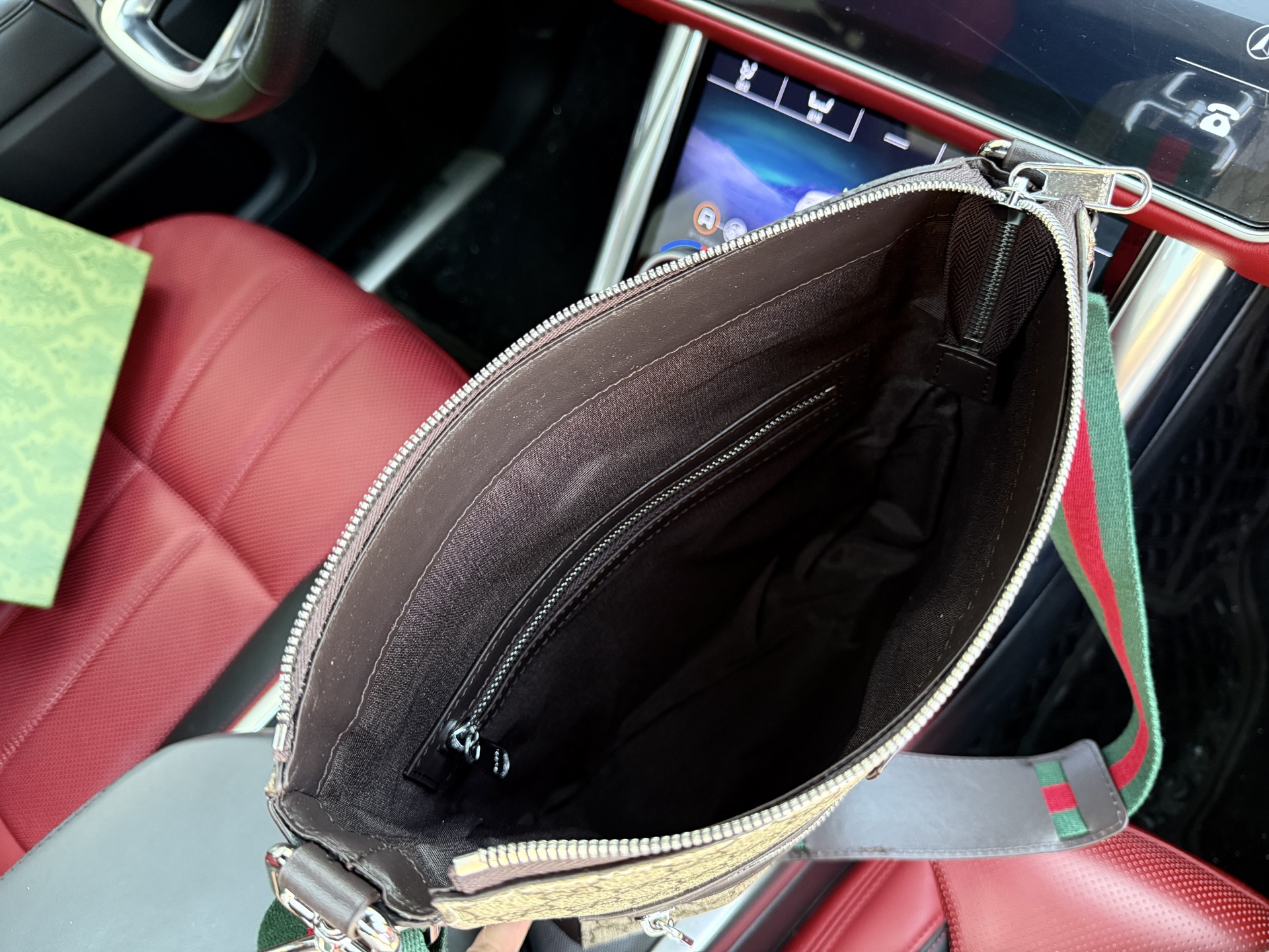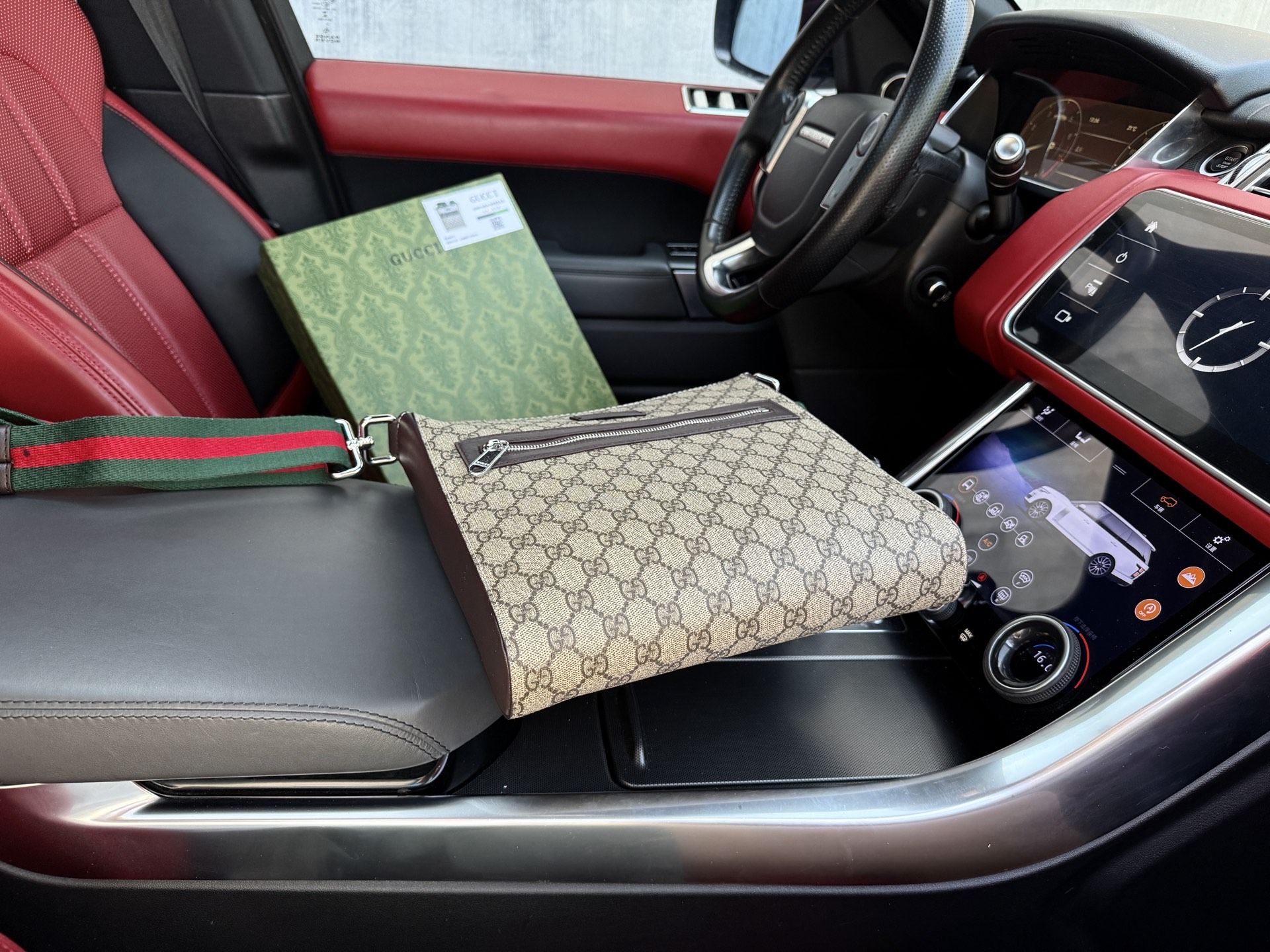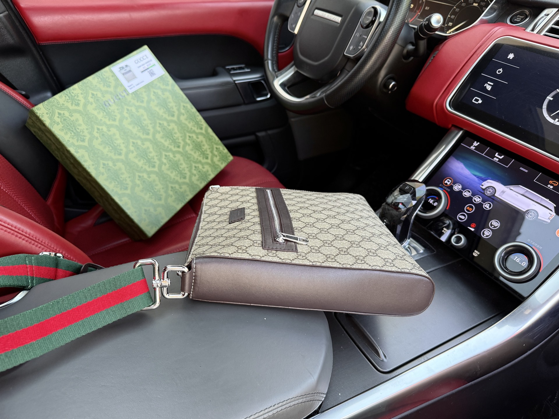 This Gucci messenger bag is a sophisticated accessory for the modern man. It combines iconic design with everyday functionality.