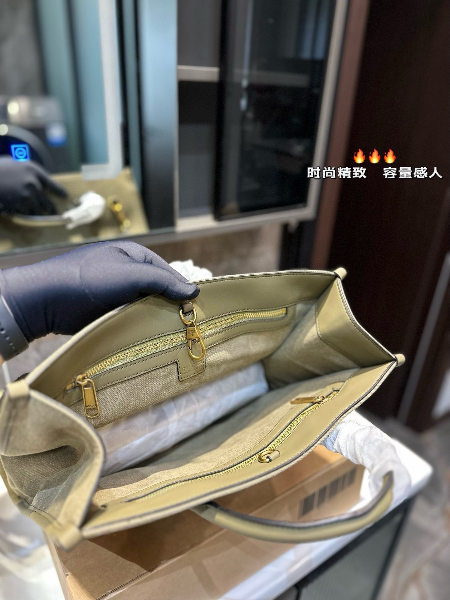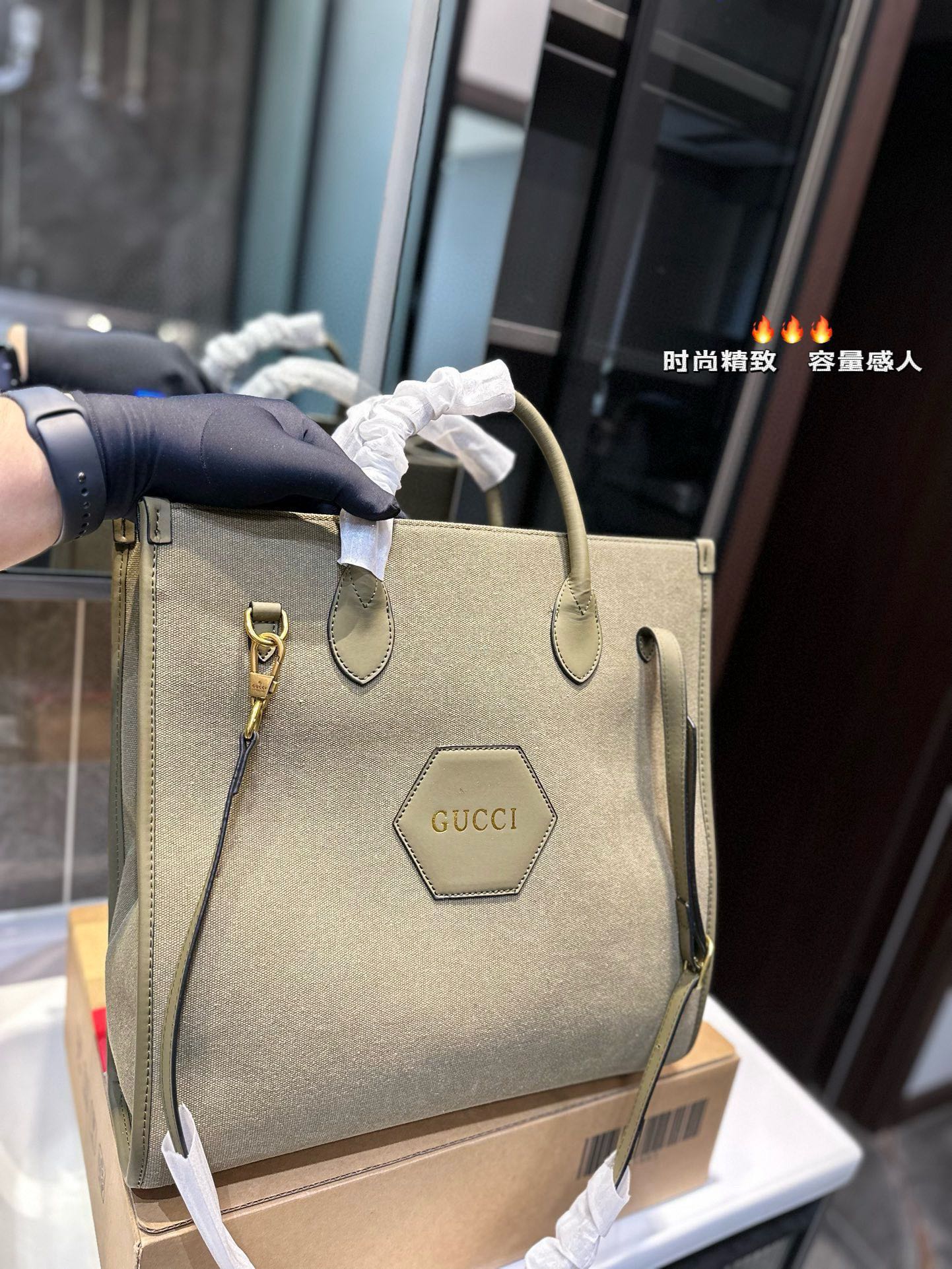 Introducing the latest Gucci tote bag, a blend of classic design and modern functionality. This exquisite piece features Gucci's signature golden hardware, adding a touch of luxury to your everyday style.