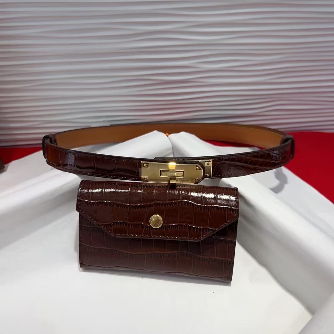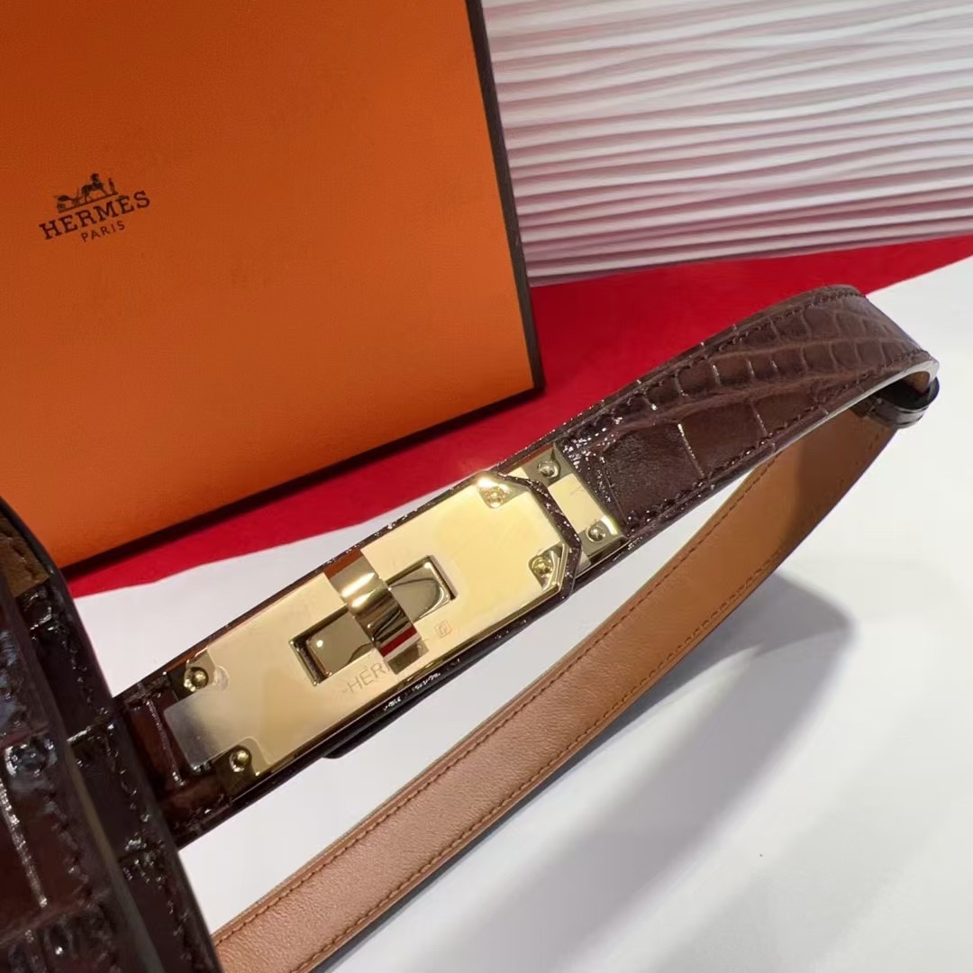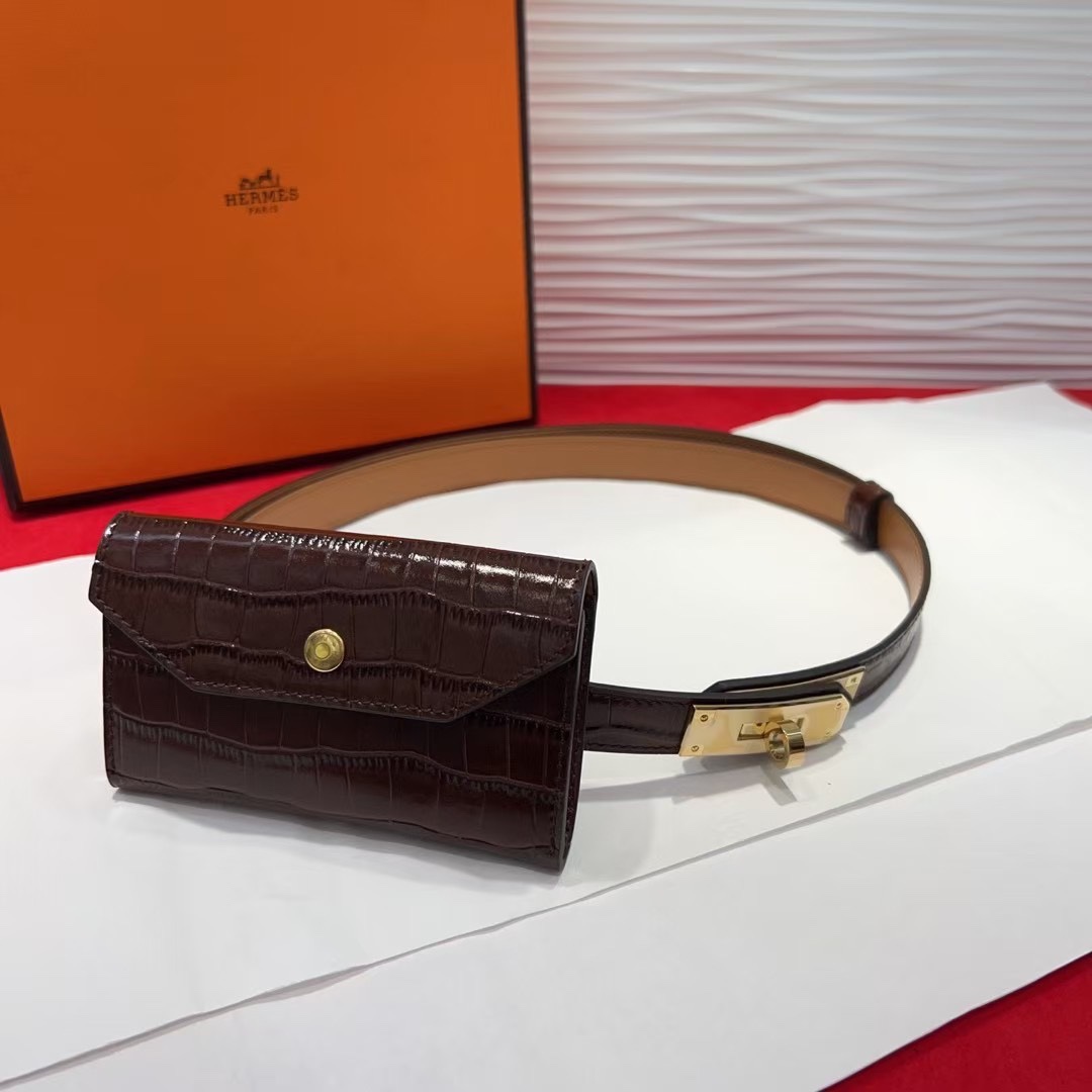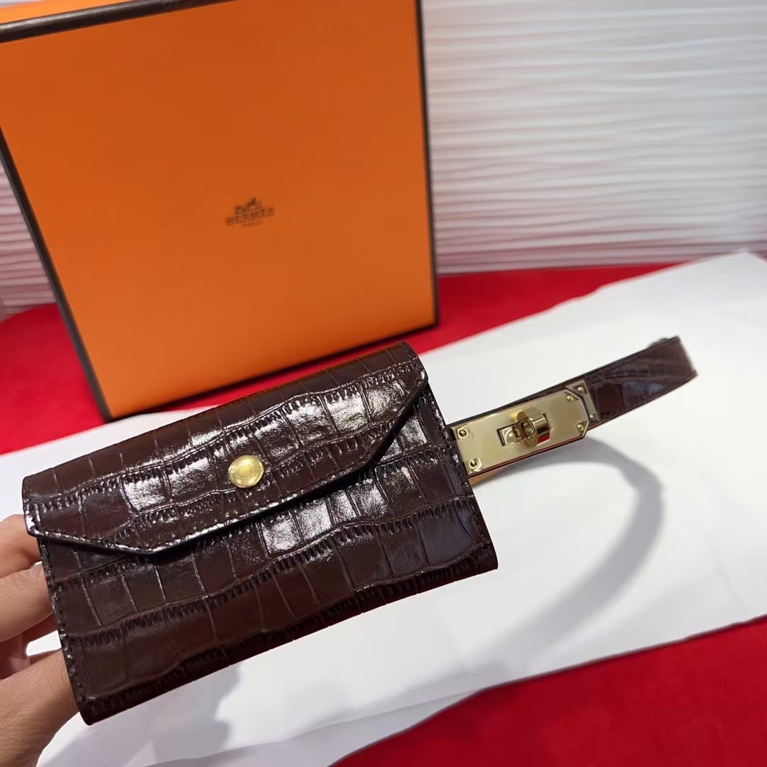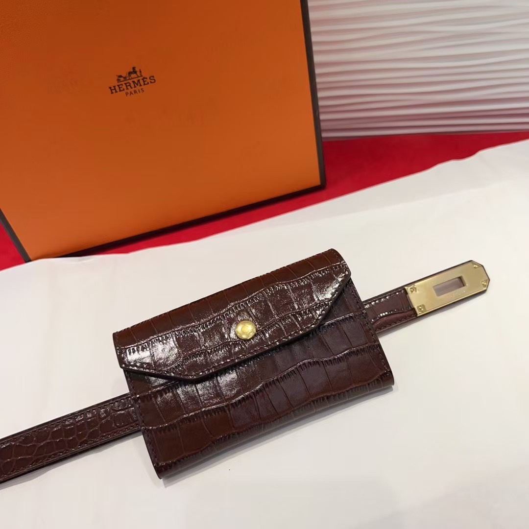 Hermes Kelly Buckle Crocodile Pattern Belt Bag - Adjustable, Stylish
