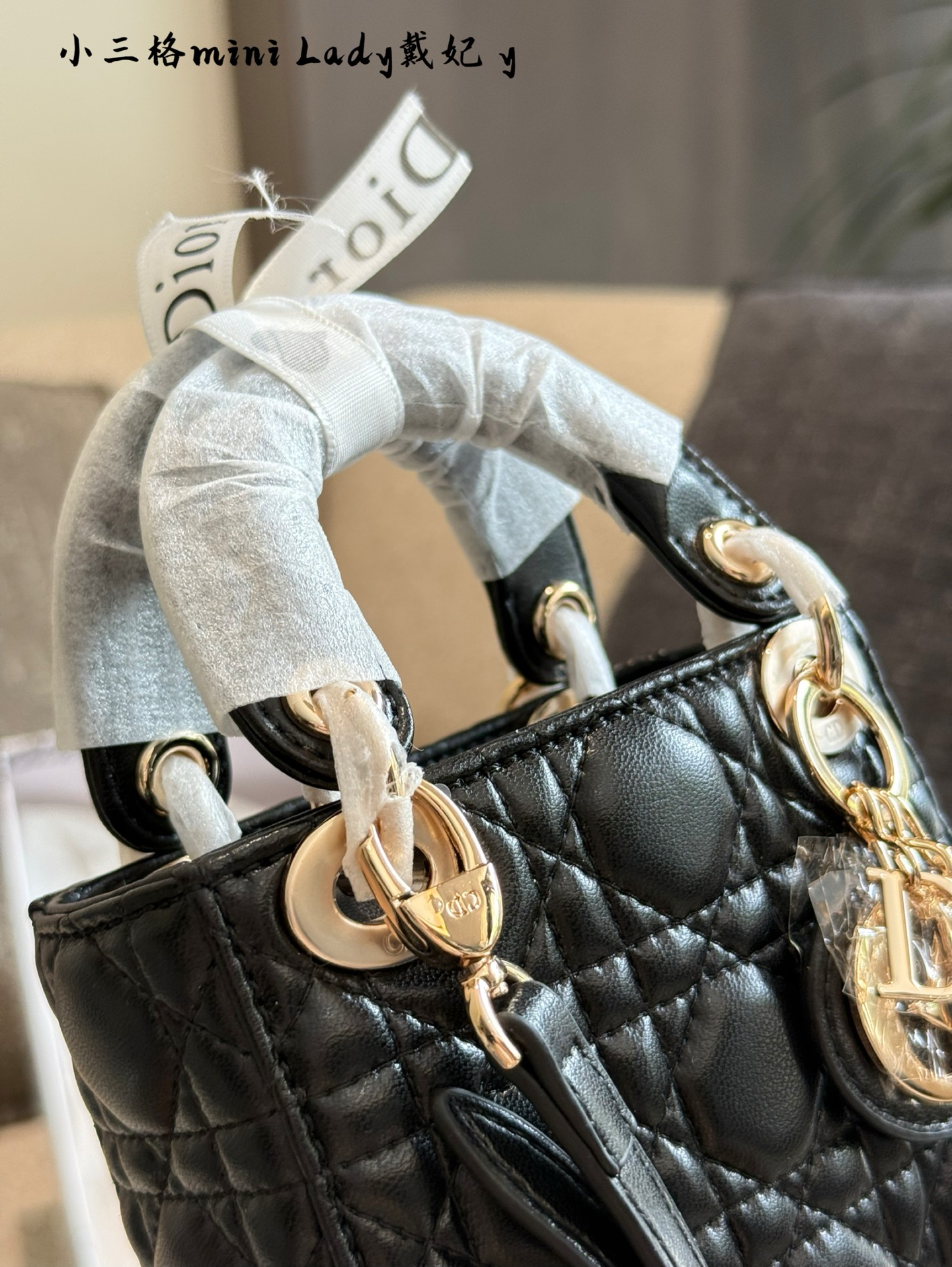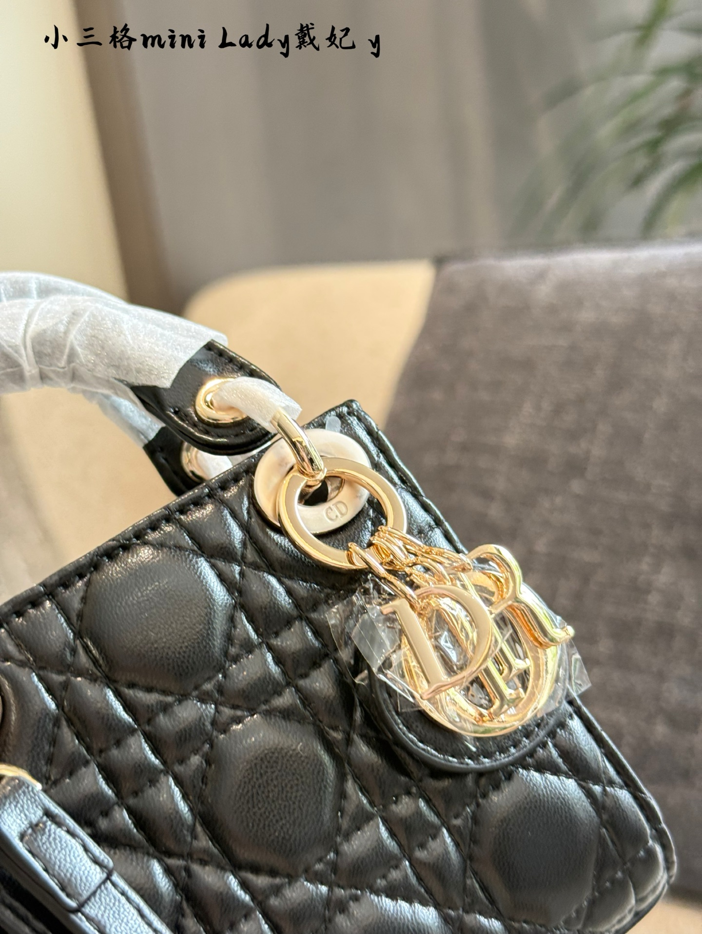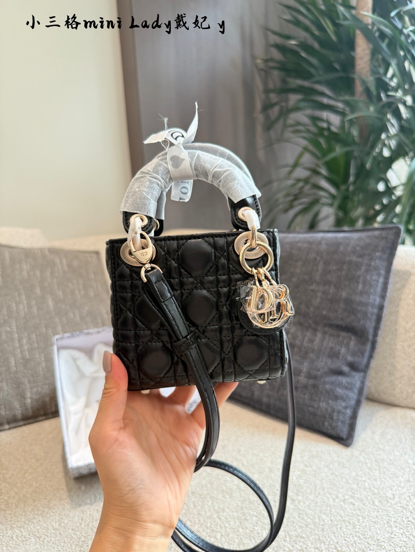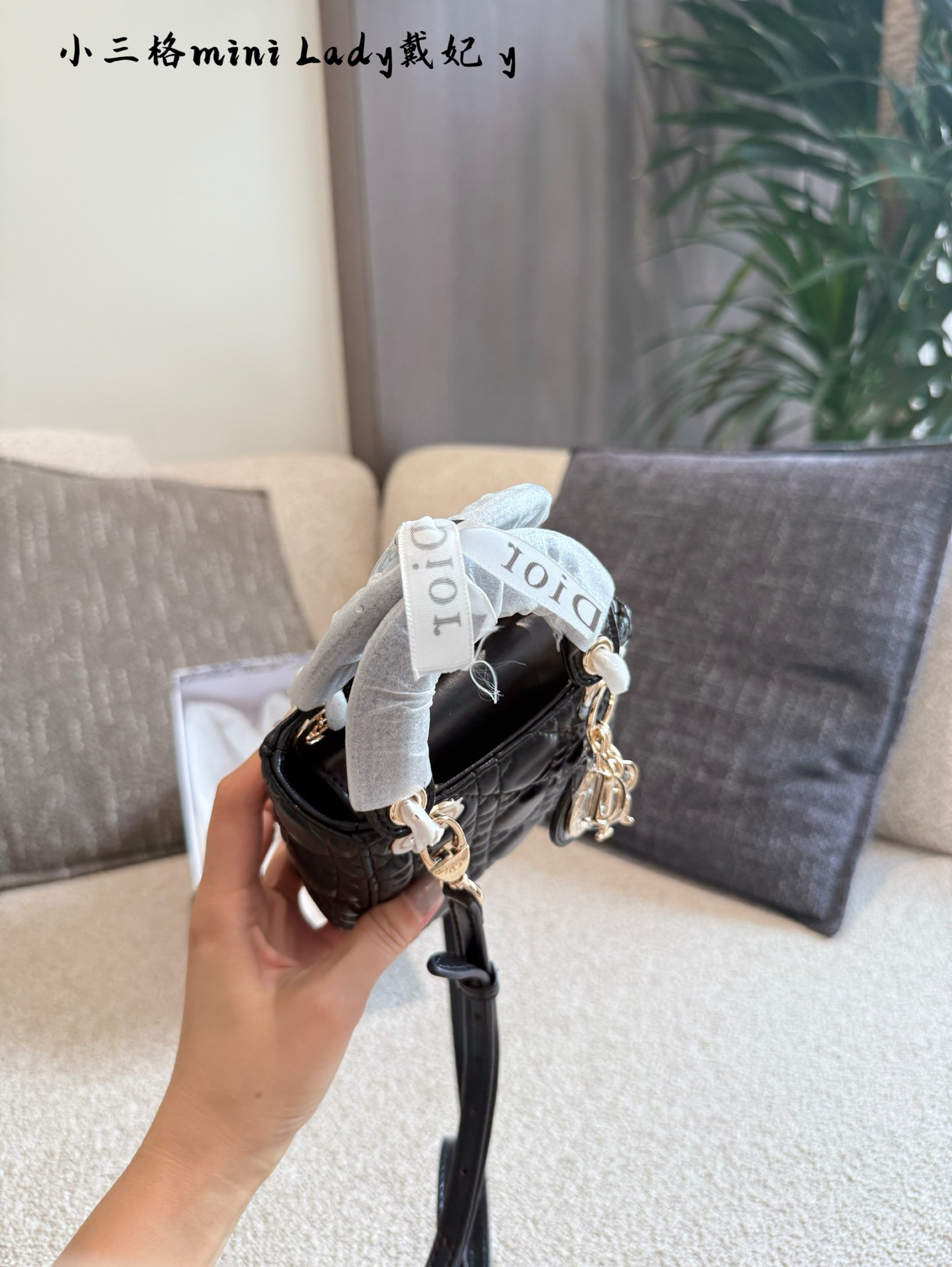 Lady Dior Mini Black Leather Handbag with Gold Hardware Crossbody Bag