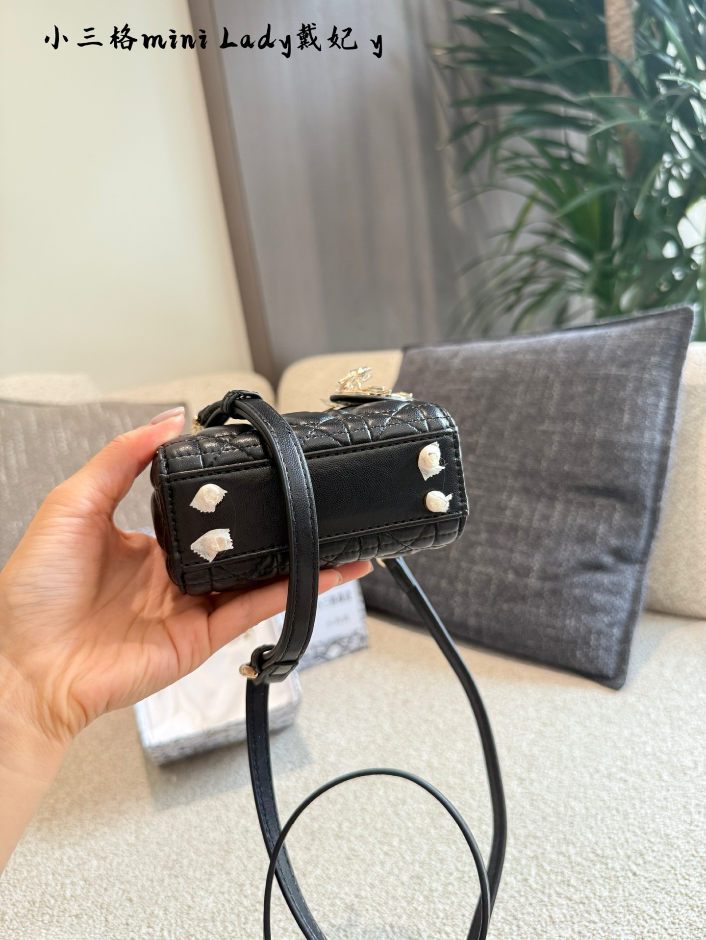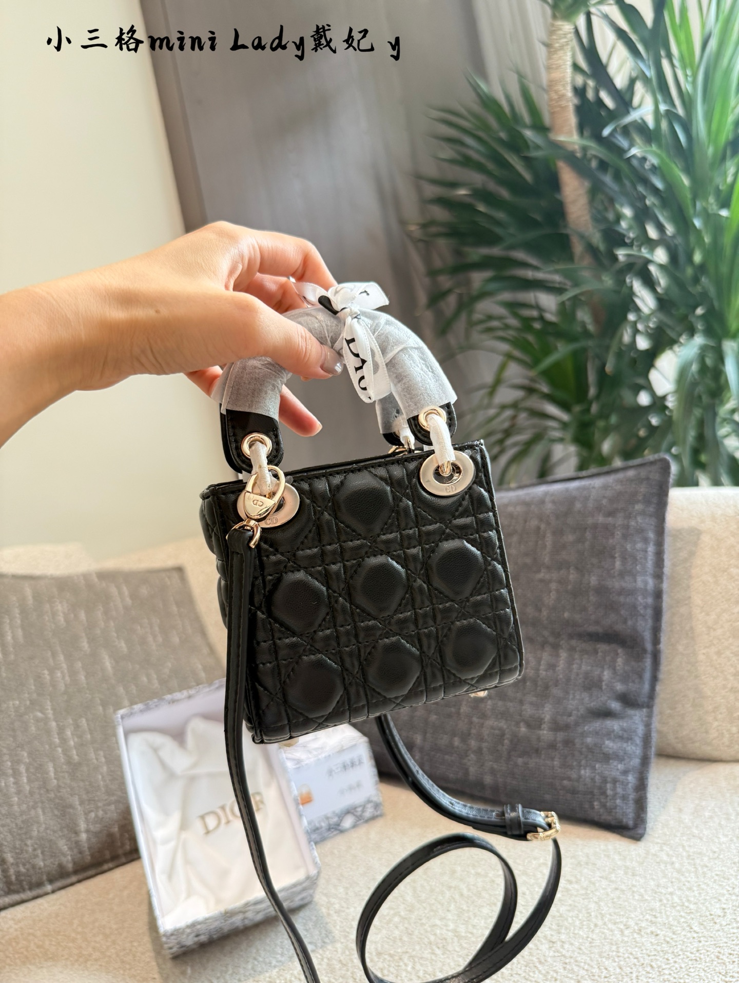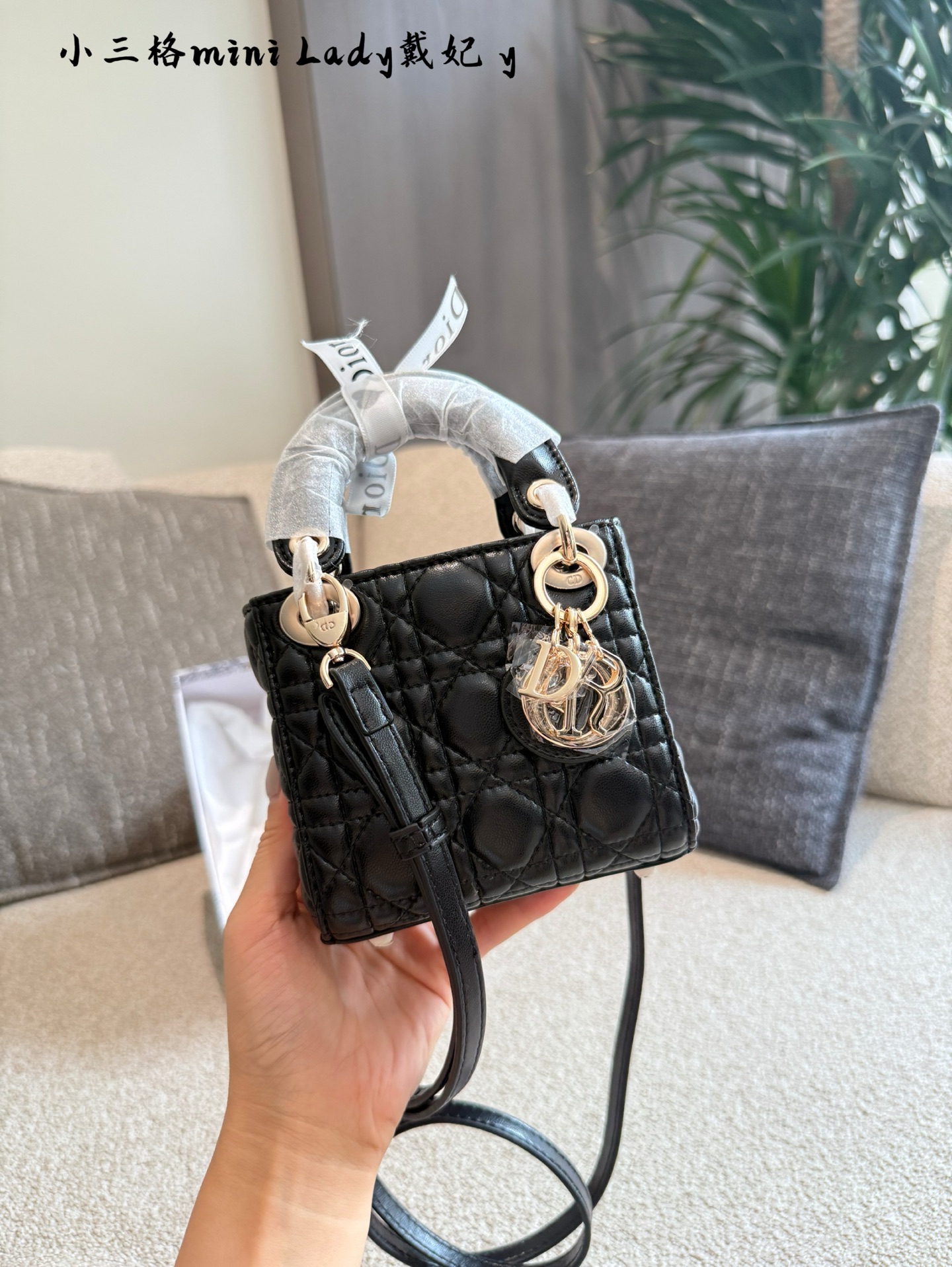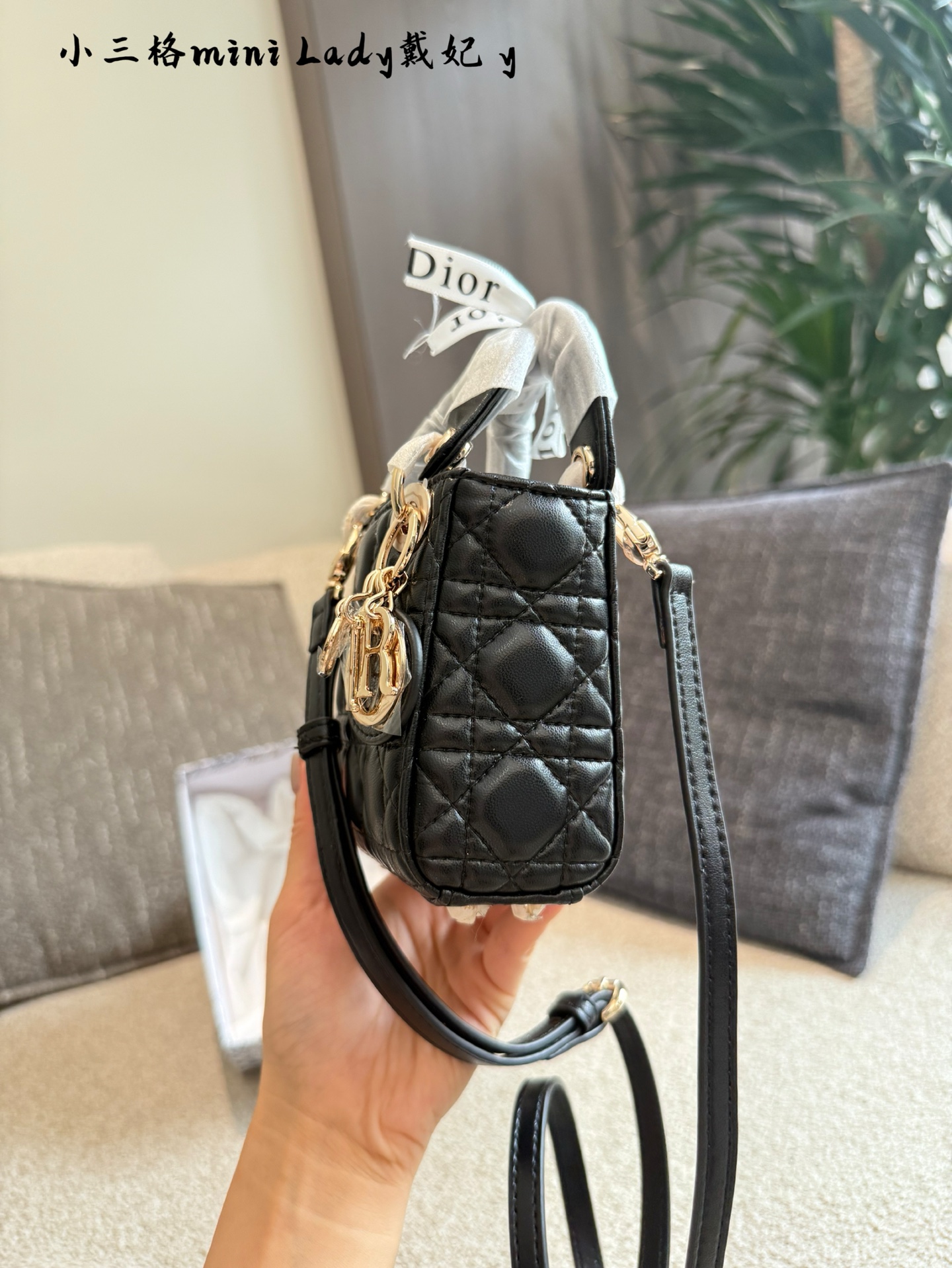 Lady Dior Mini Black Leather Handbag with Gold Hardware Crossbody Bag