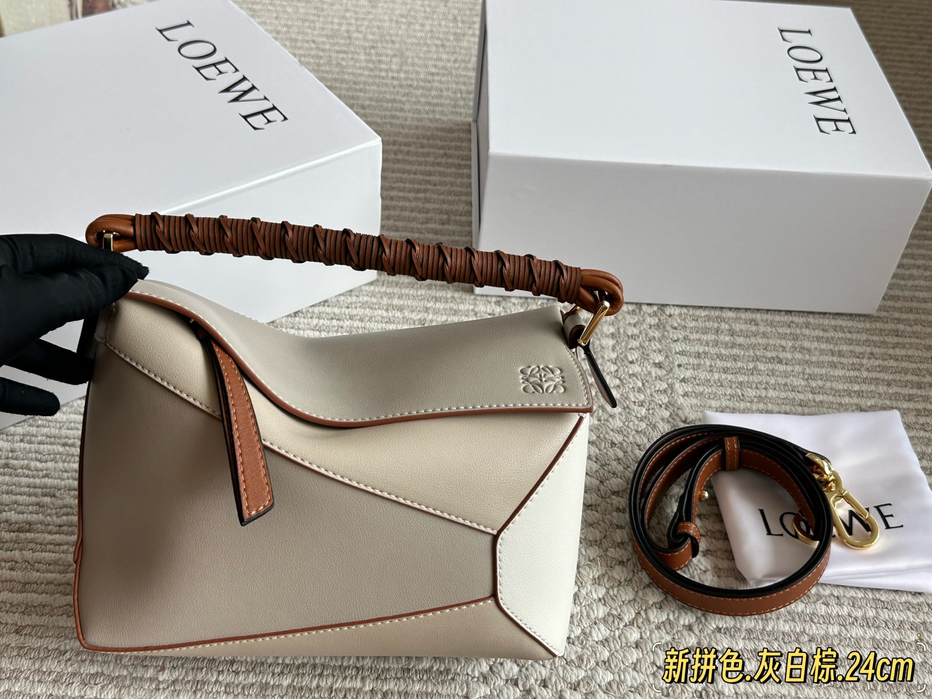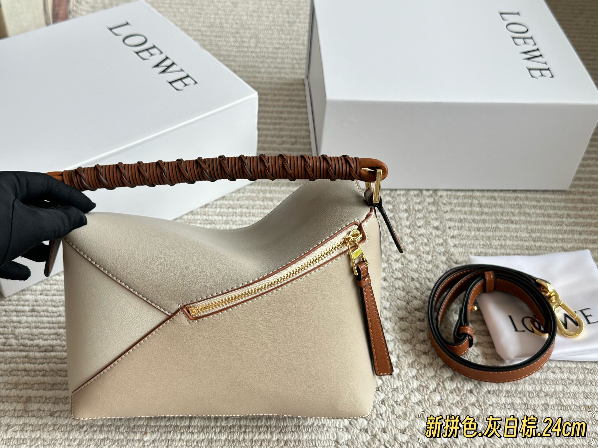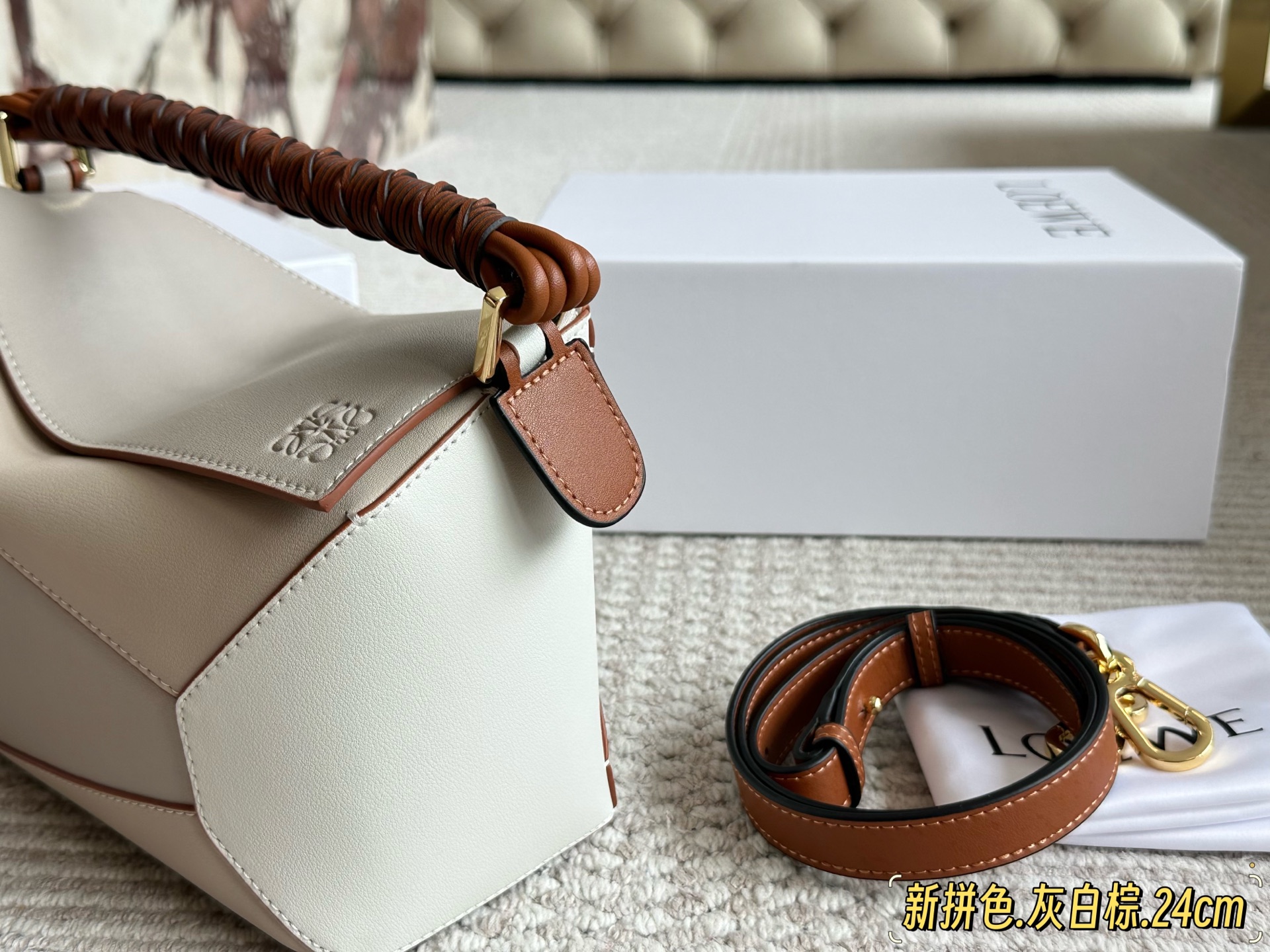 Elevate your style with this Loewe Puzzle bag. Its unique geometric design and special woven handle add a touch of sophistication to any outfit. Size: 24*15cm.