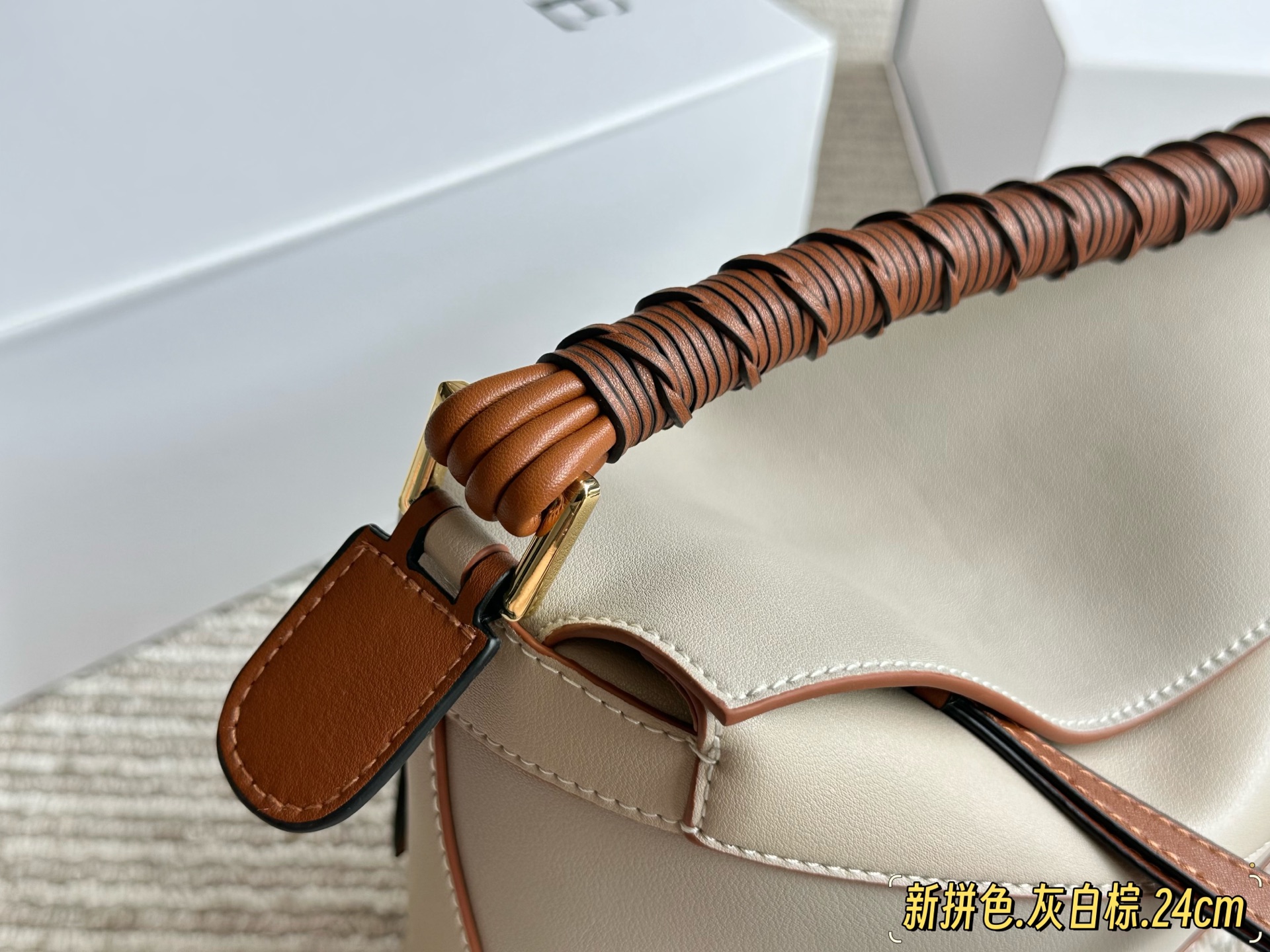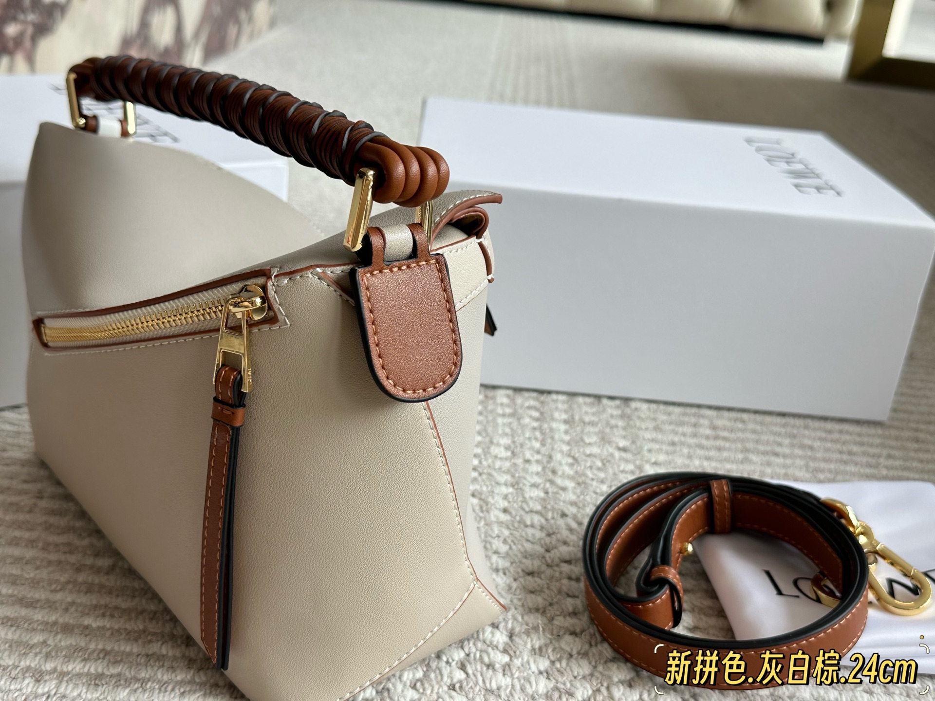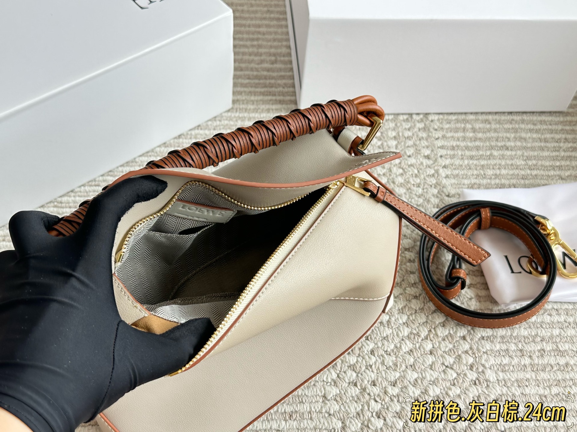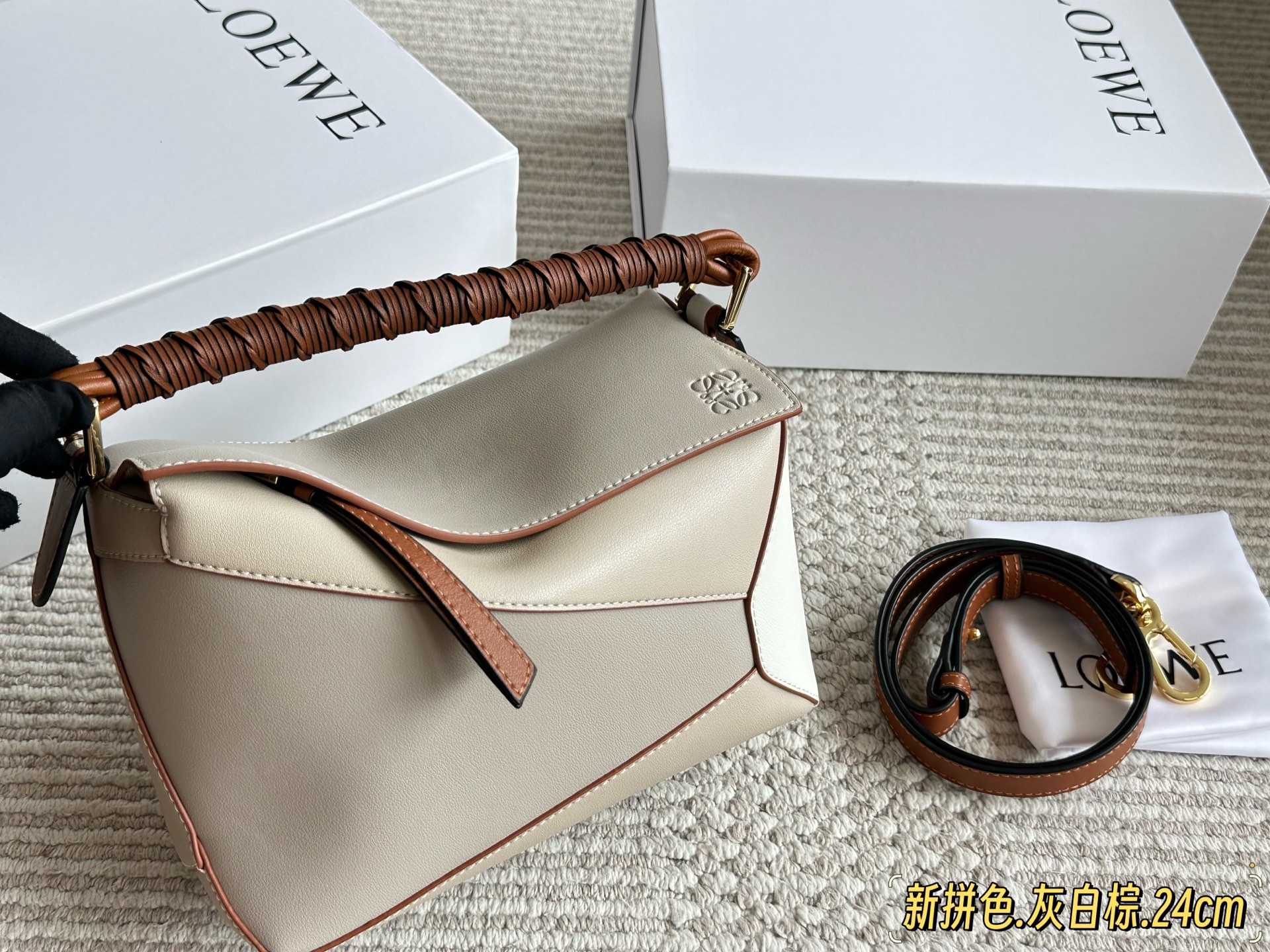 Loewe Puzzle Special Woven Handle Geometry Bag, Elegant Design, 24*15cm