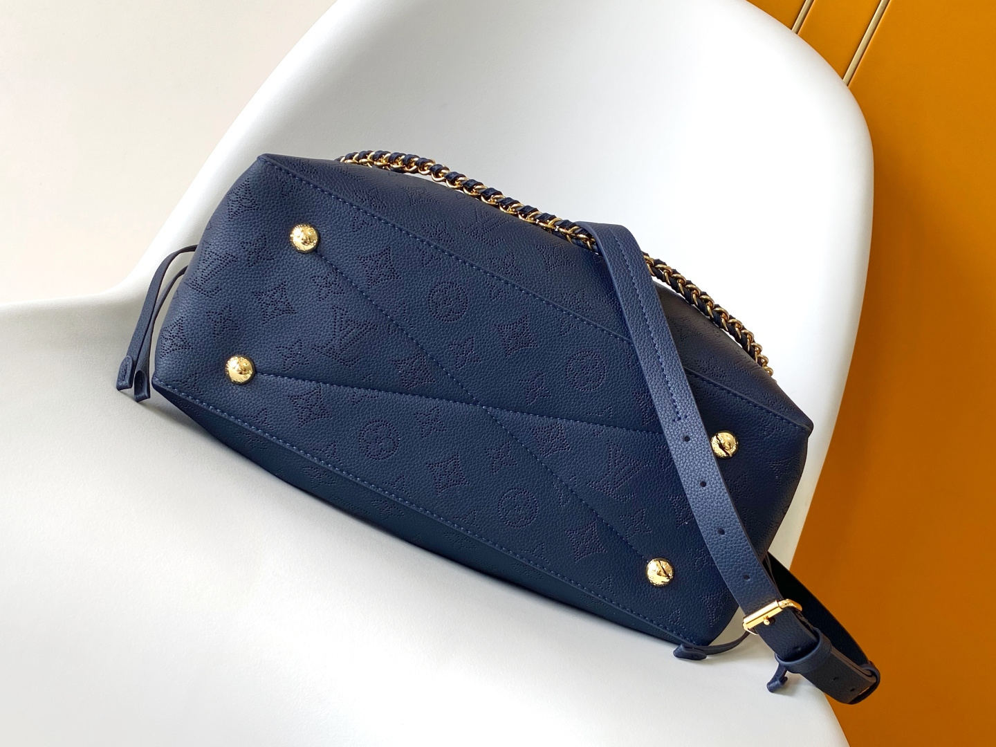 Louis Vuitton Bella Tote Bag Blue Leather with Chain Accent - Stylish & Roomy