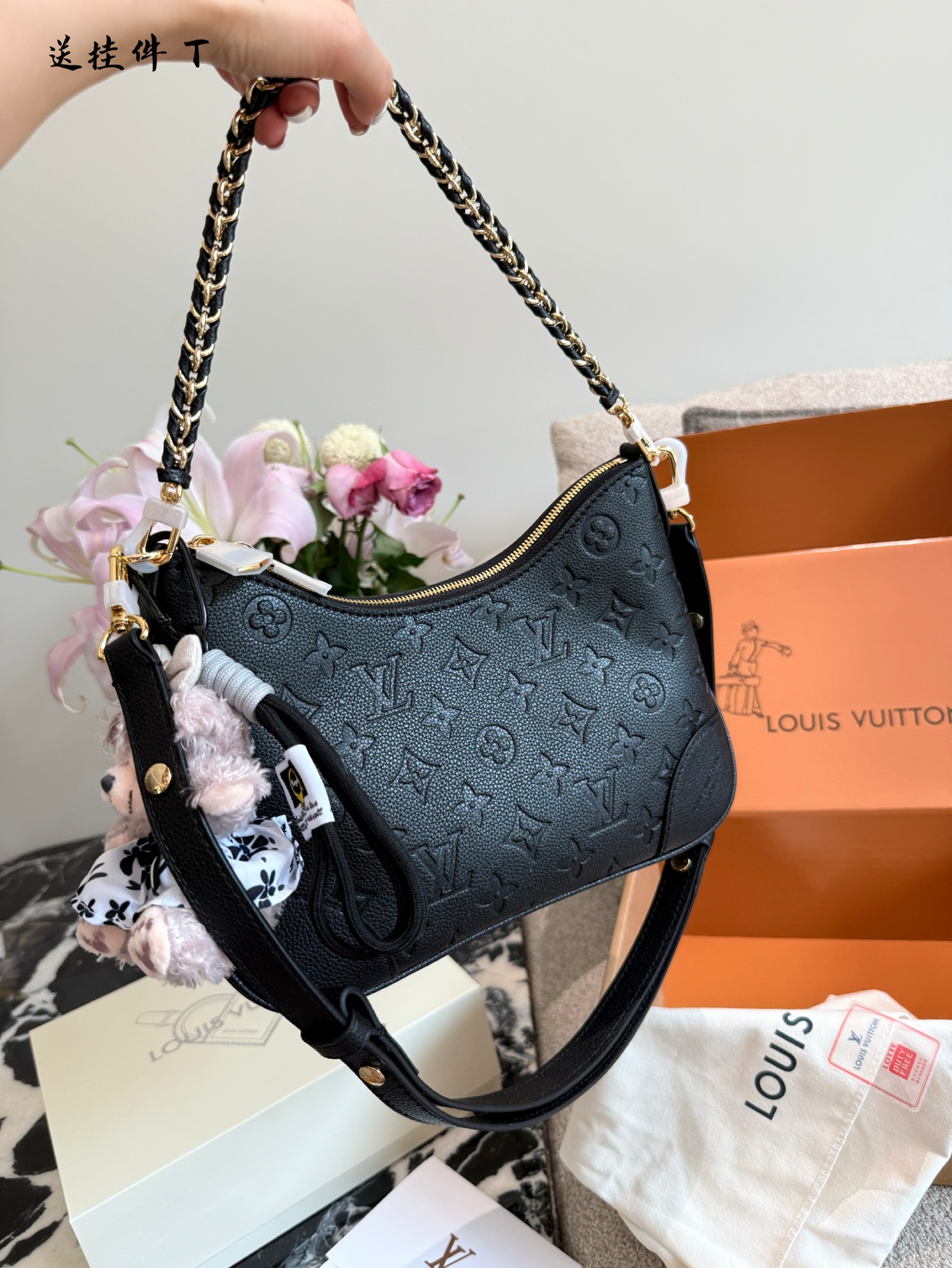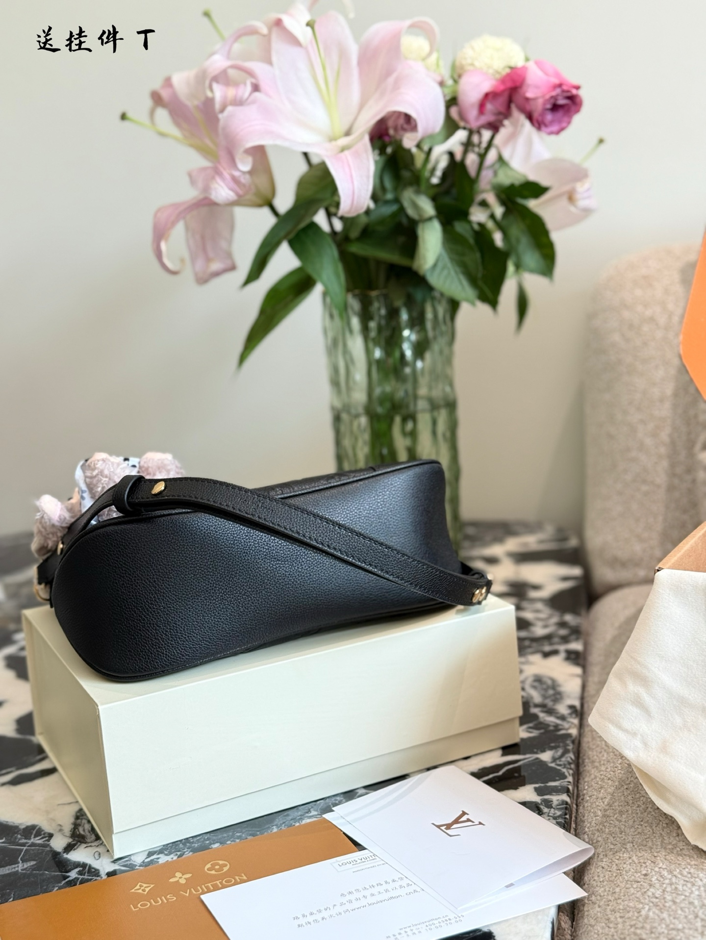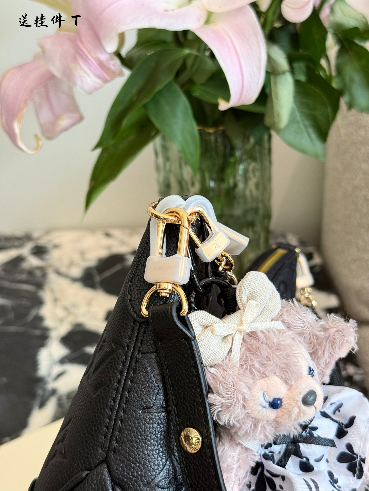 Louis Vuitton Black Leather Croissant Bag 2025 with Charm