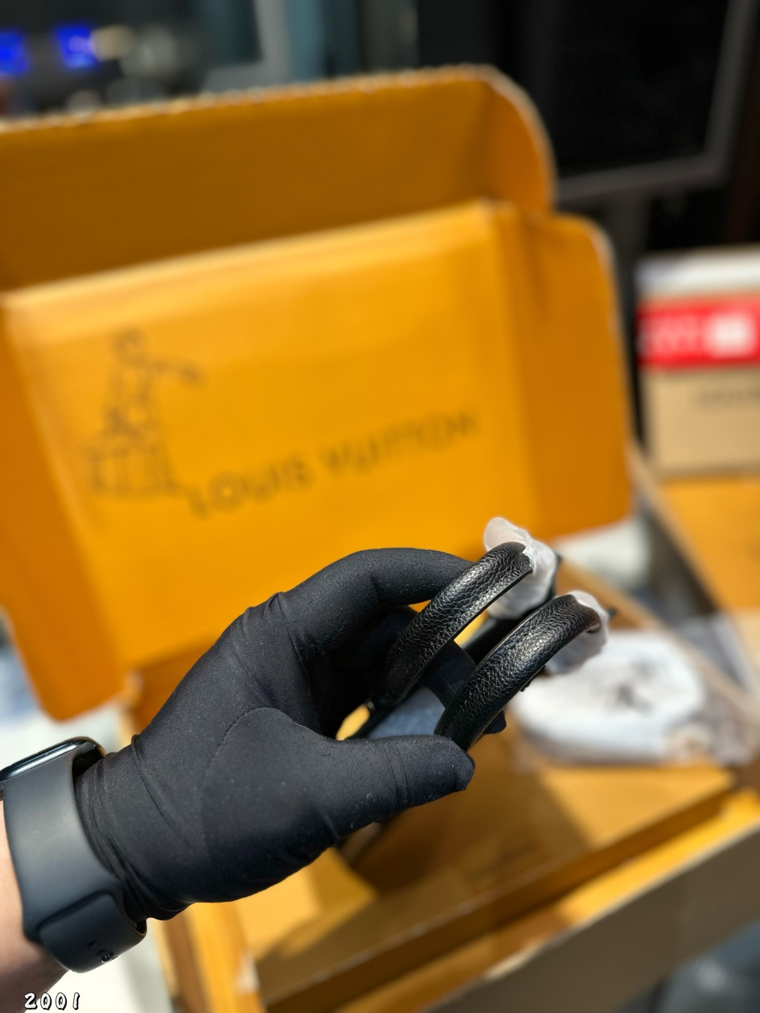 This Louis Vuitton tote combines iconic design with modern functionality. The black leather, embossed with the signature monogram, exudes sophistication.