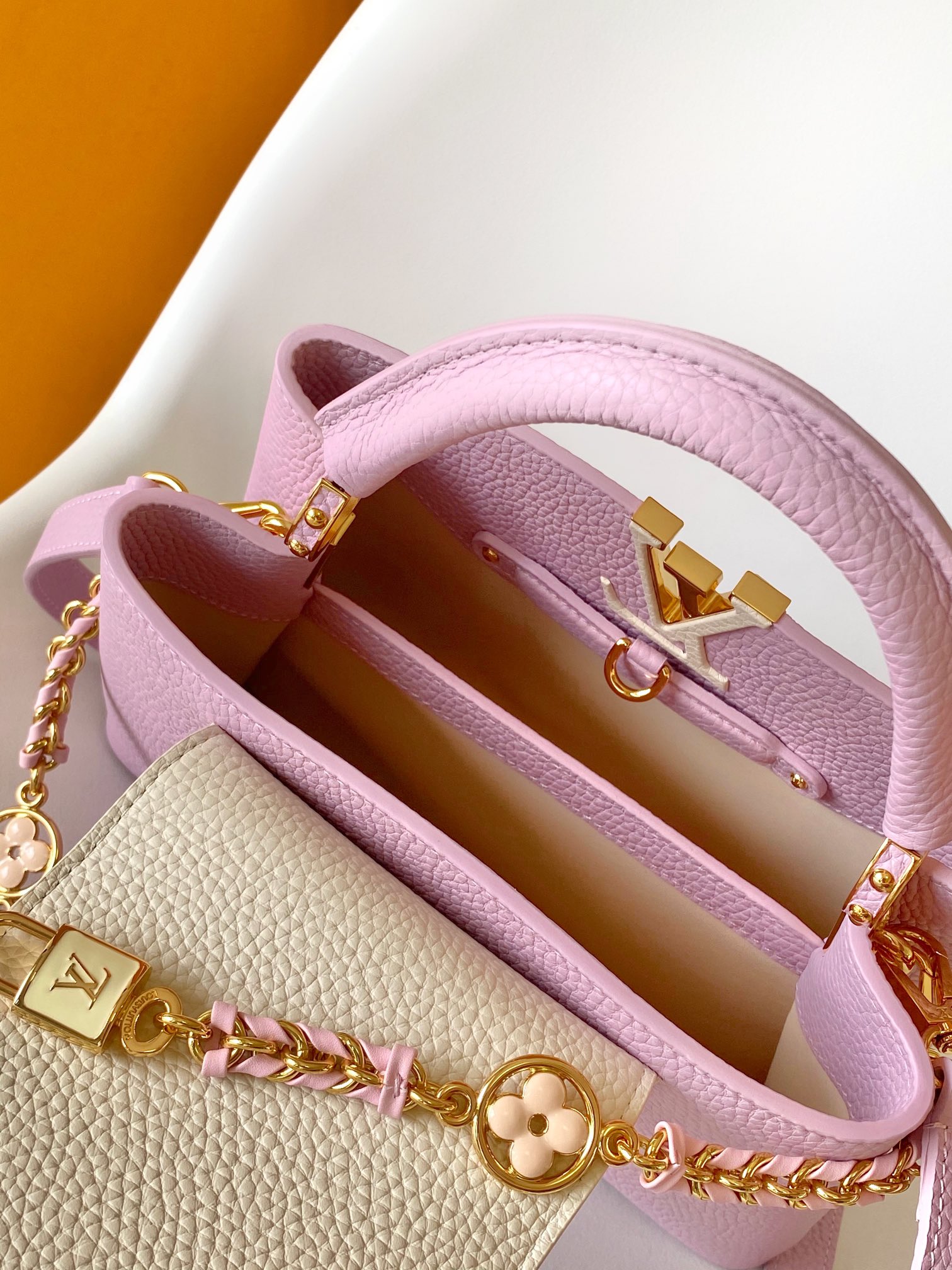 Louis Vuitton Capucines Mini Bag Lovelock Chain Taurillon Leather Pink