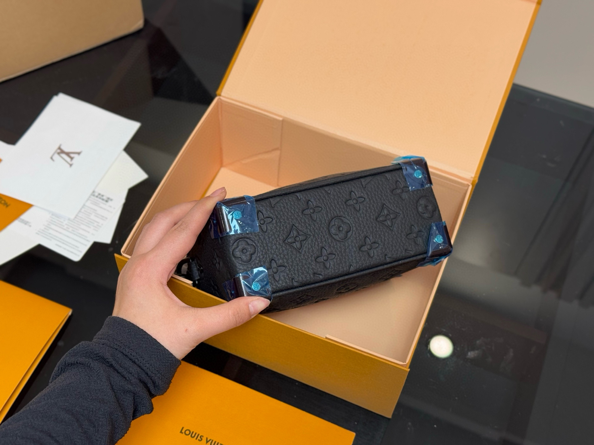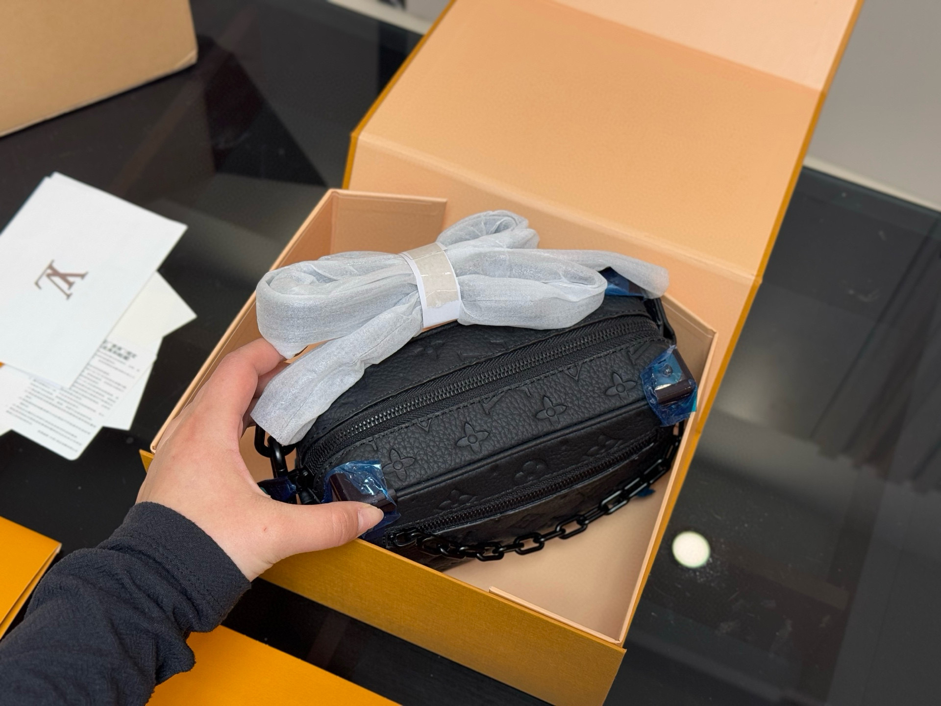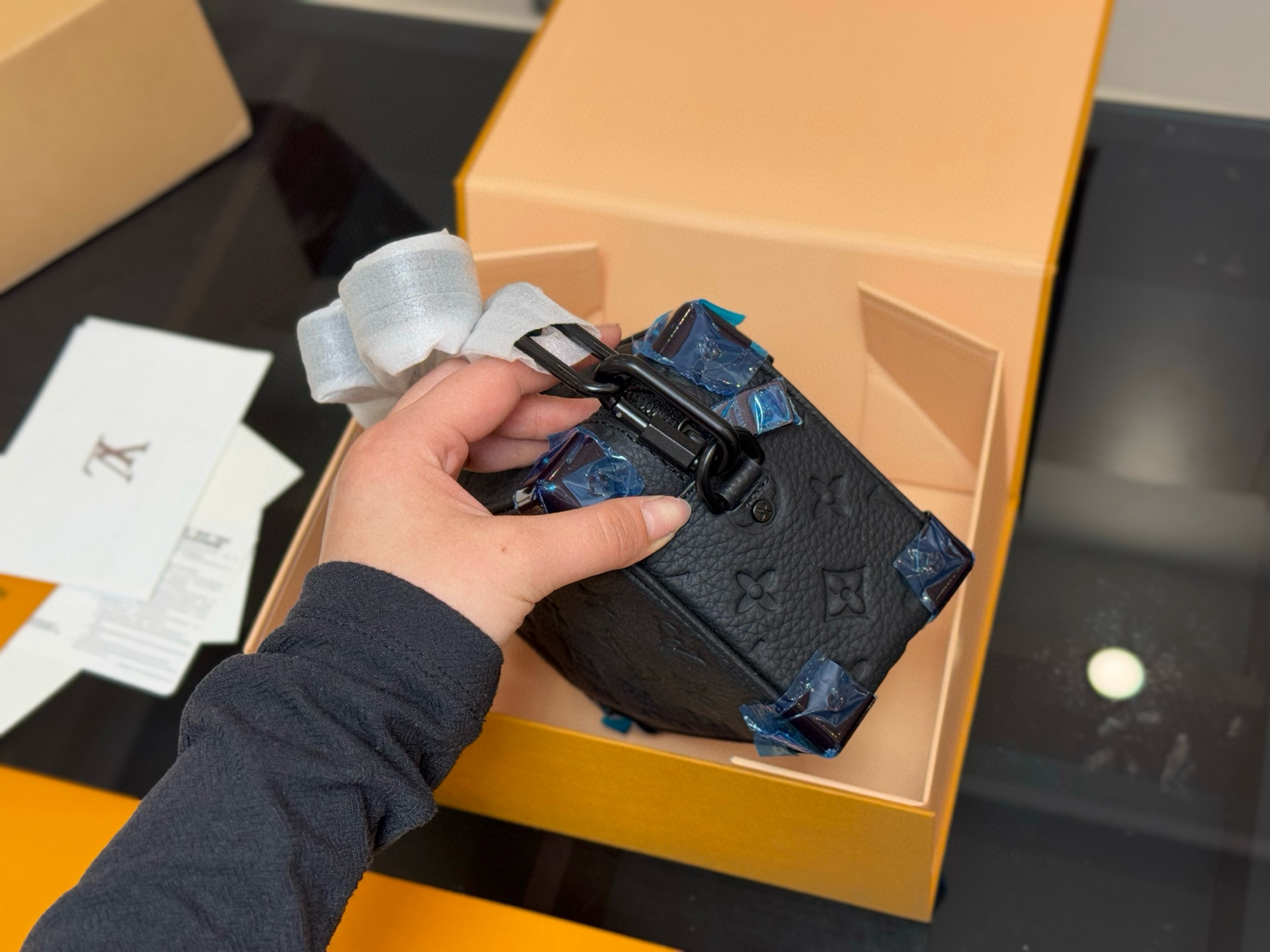 Louis Vuitton Mini Soft Trunk Box Bag - Black Leather with Chain Strap