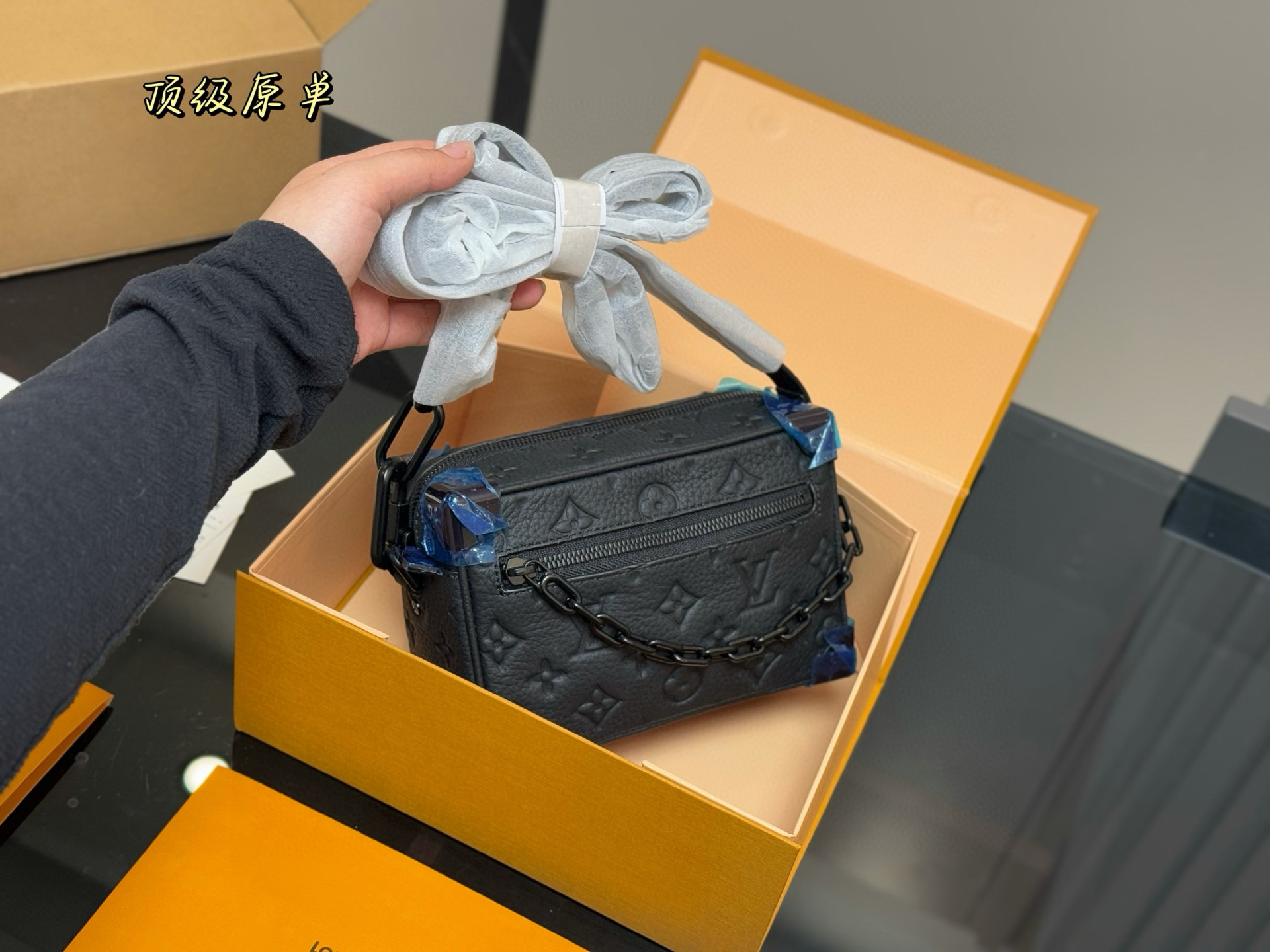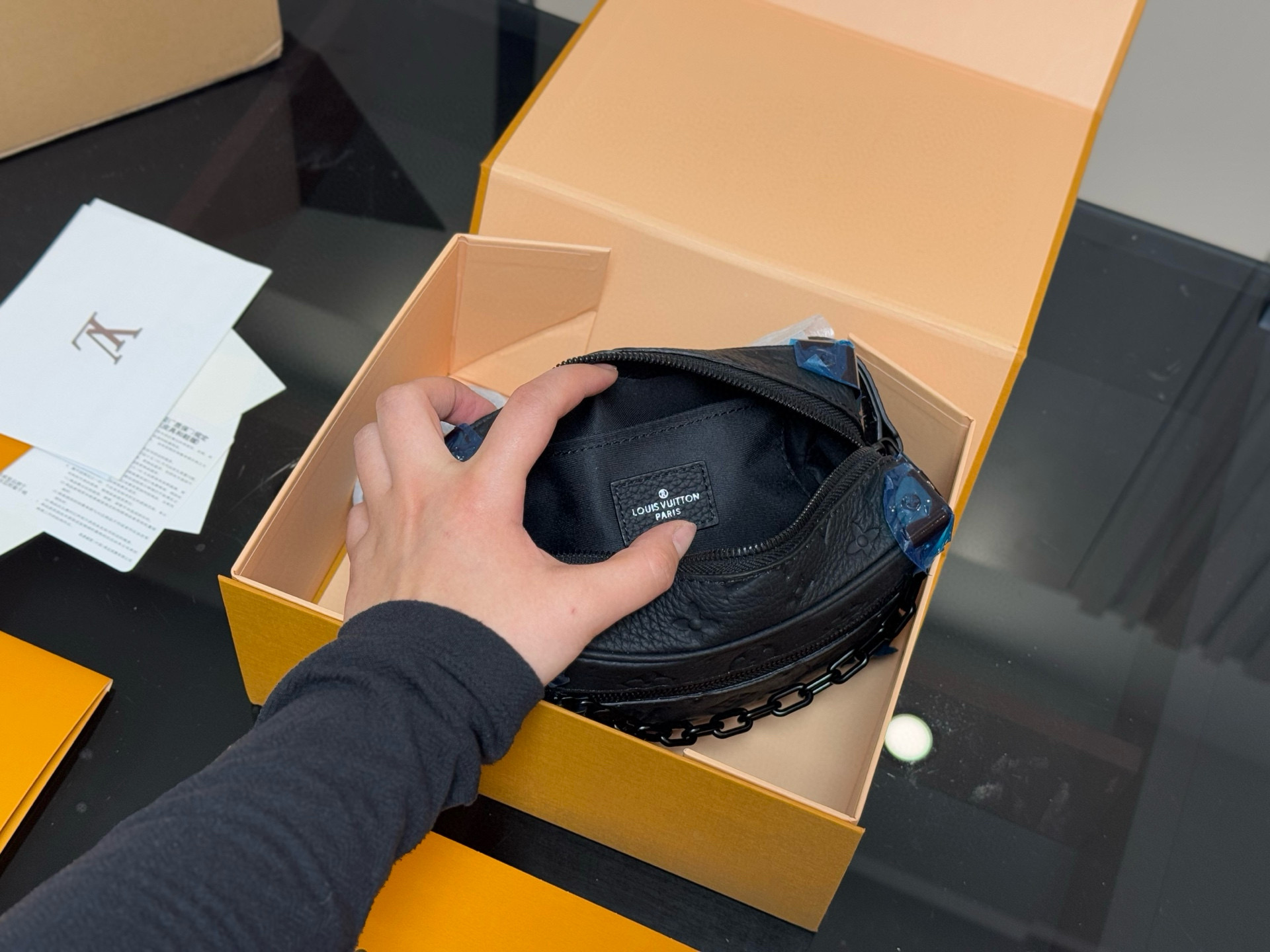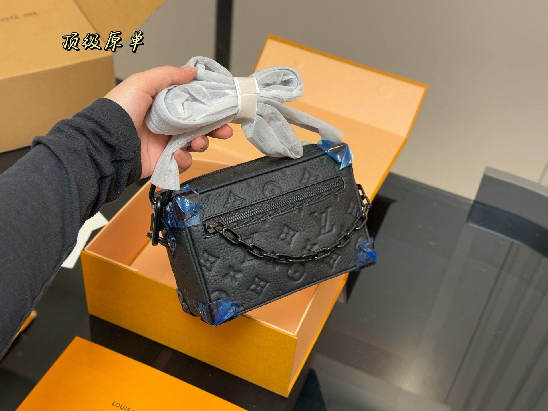 Louis Vuitton Mini Soft Trunk Box Bag - Black Leather with Chain Strap