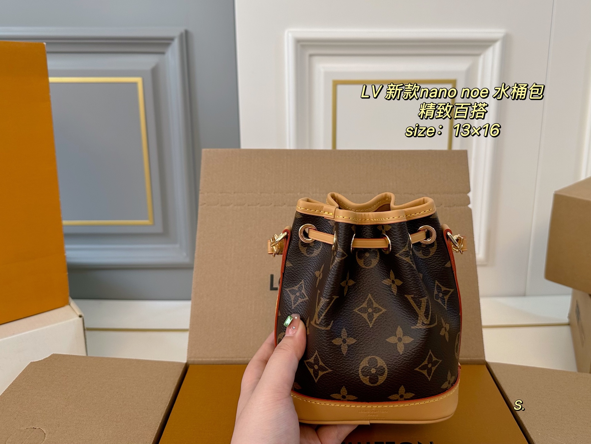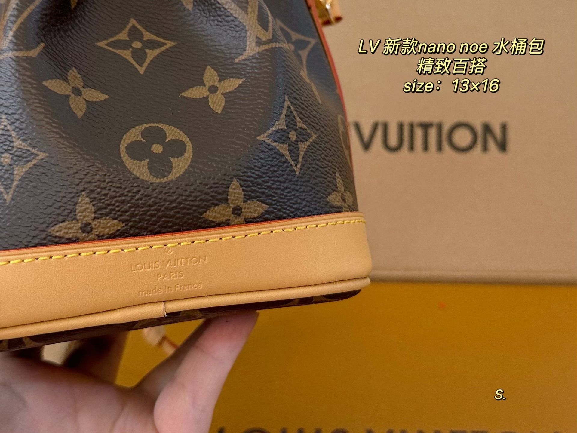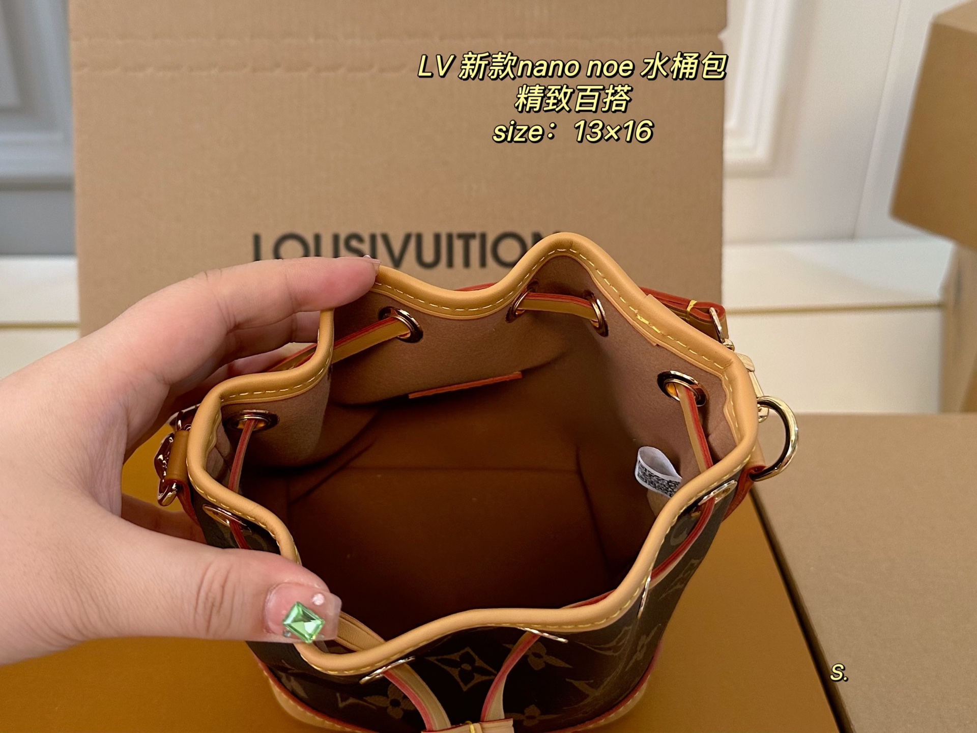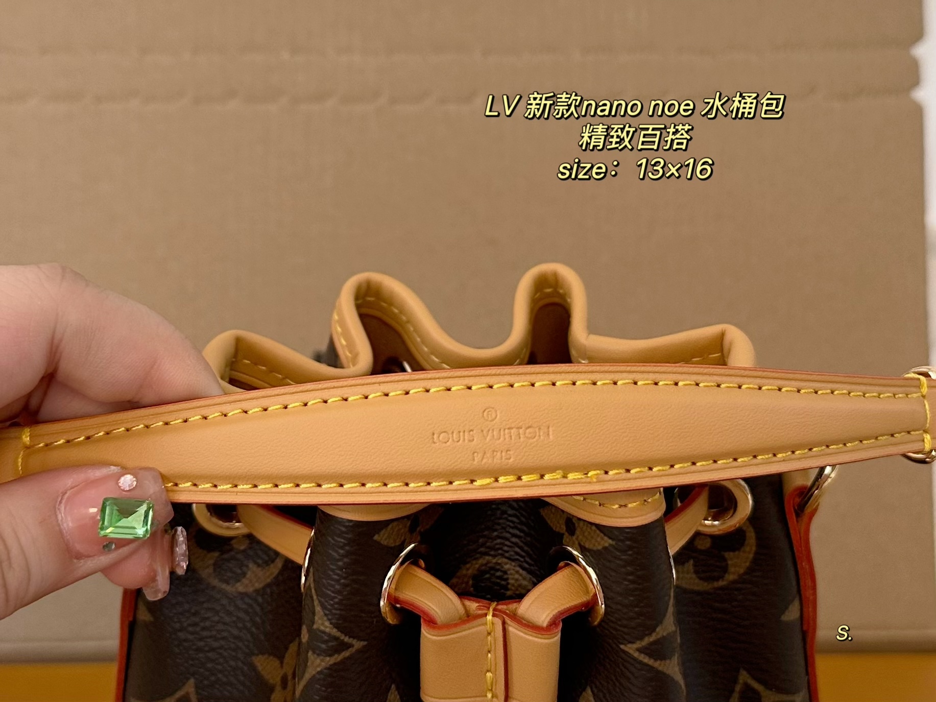 The Louis Vuitton Nano Noe bucket bag is a stylish, compact, and versatile accessory. Perfect for carrying essentials with ease.Detachable strap.