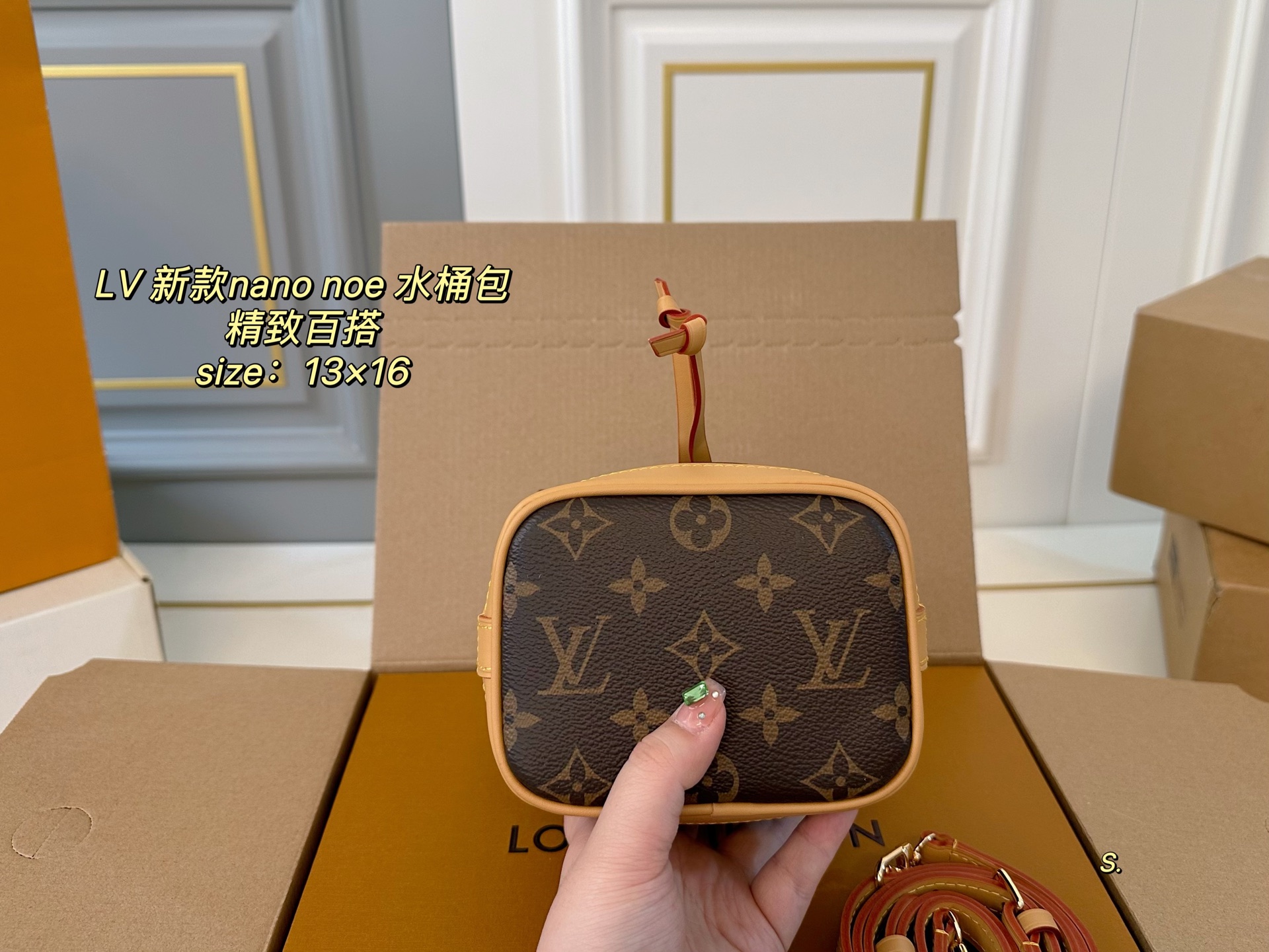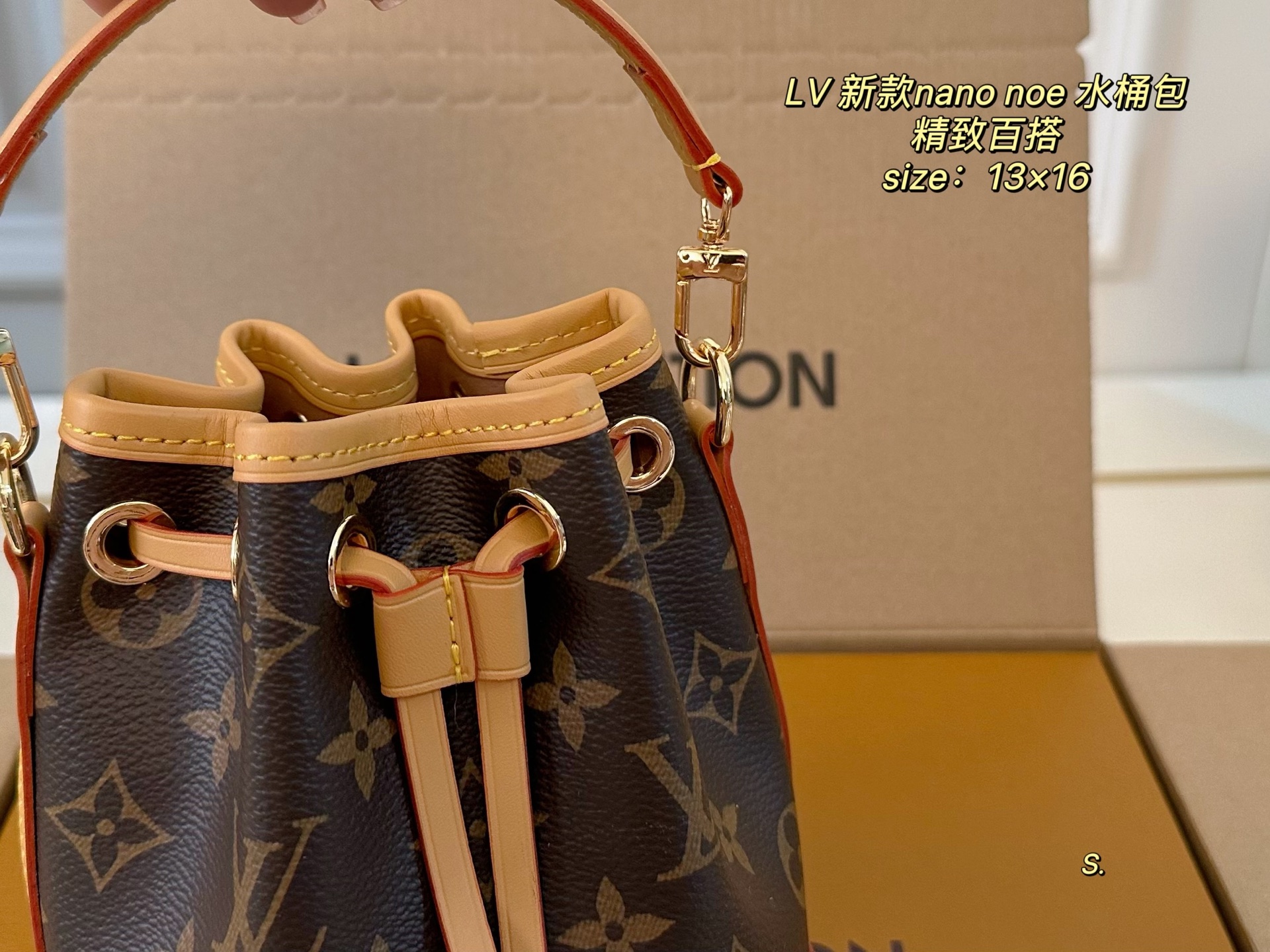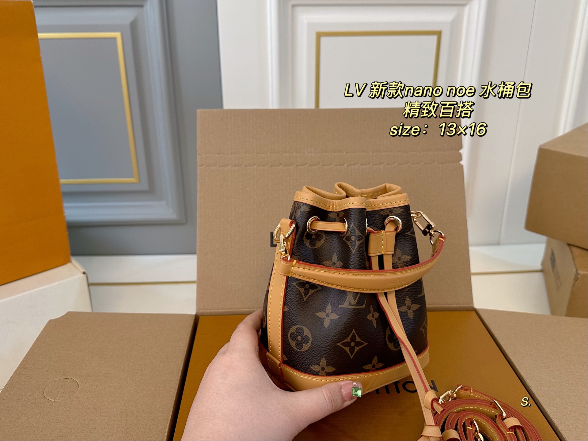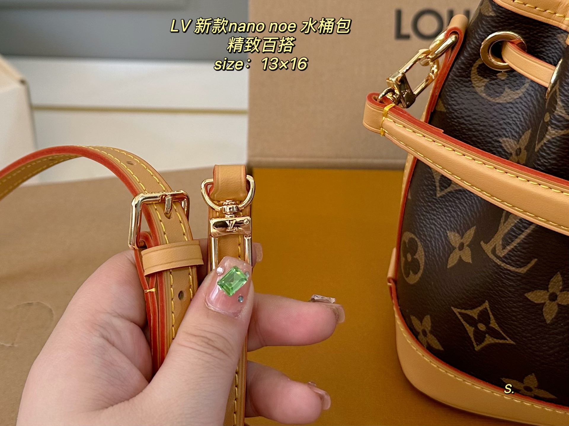 The Louis Vuitton Nano Noe bucket bag is a stylish, compact, and versatile accessory. Perfect for carrying essentials with ease.Detachable strap.
