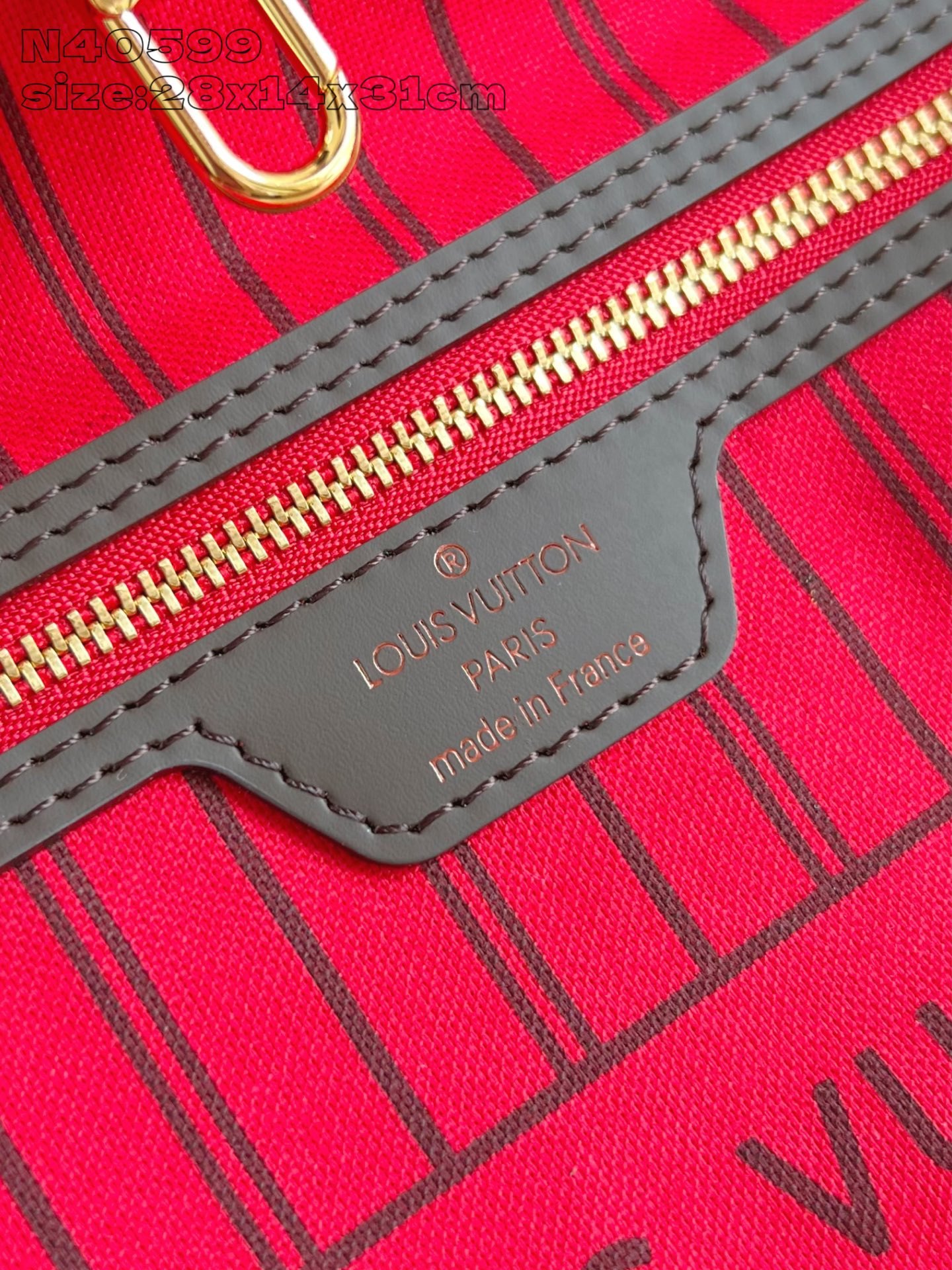 - Material: Damier Ebene canvas, leather trim