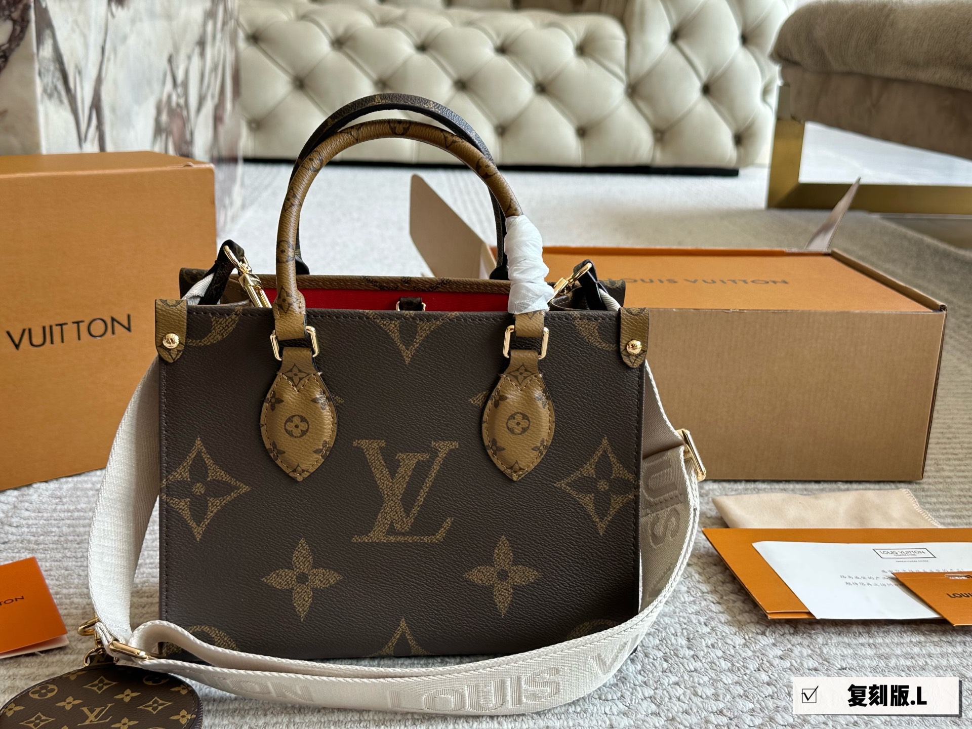 Louis Vuitton OnTheGo Small Tote Bag, 25*20cm, Wide Strap & Coin Purse Included