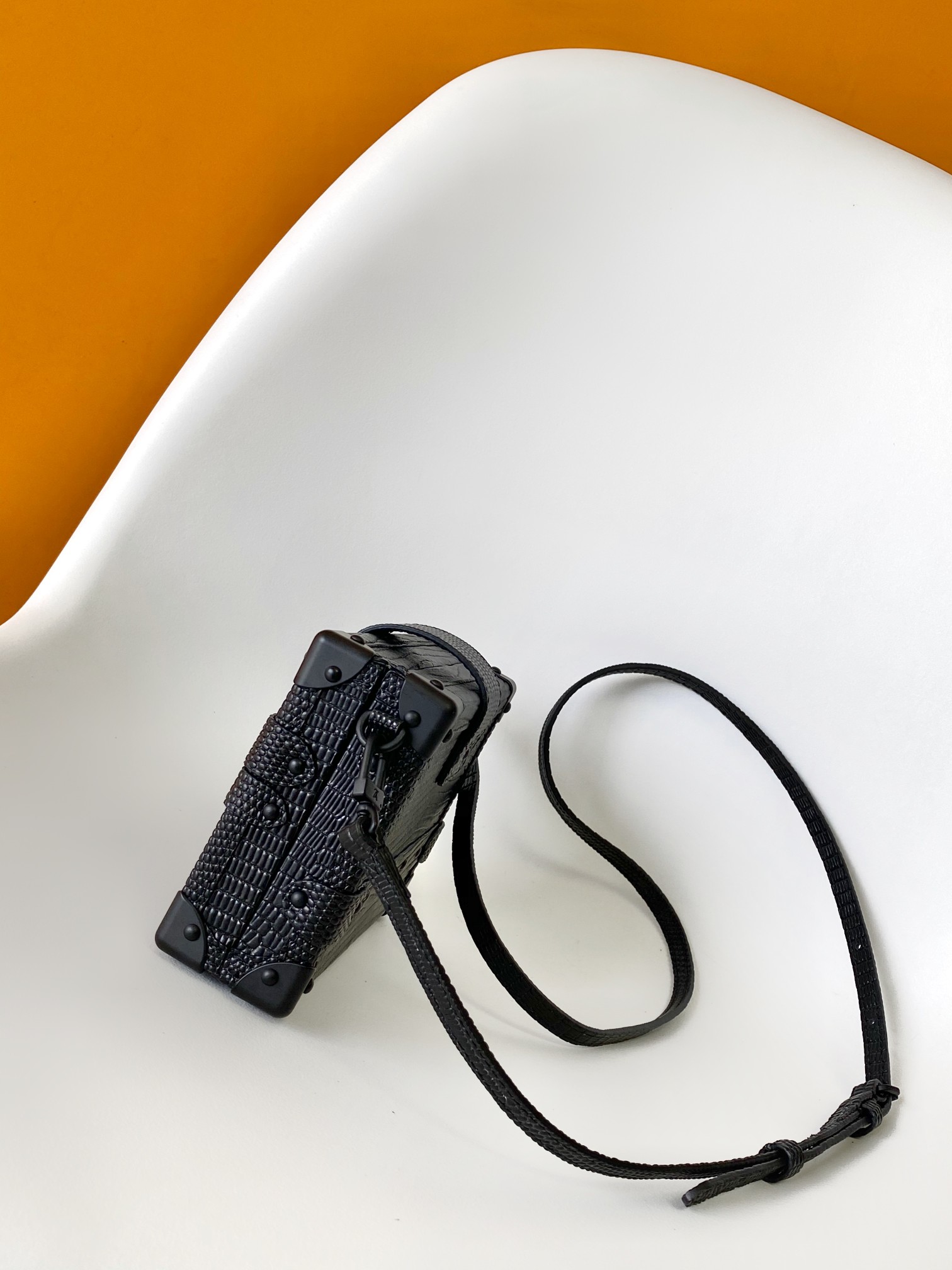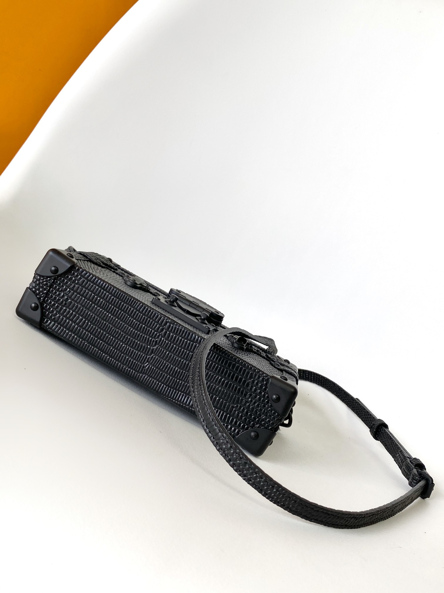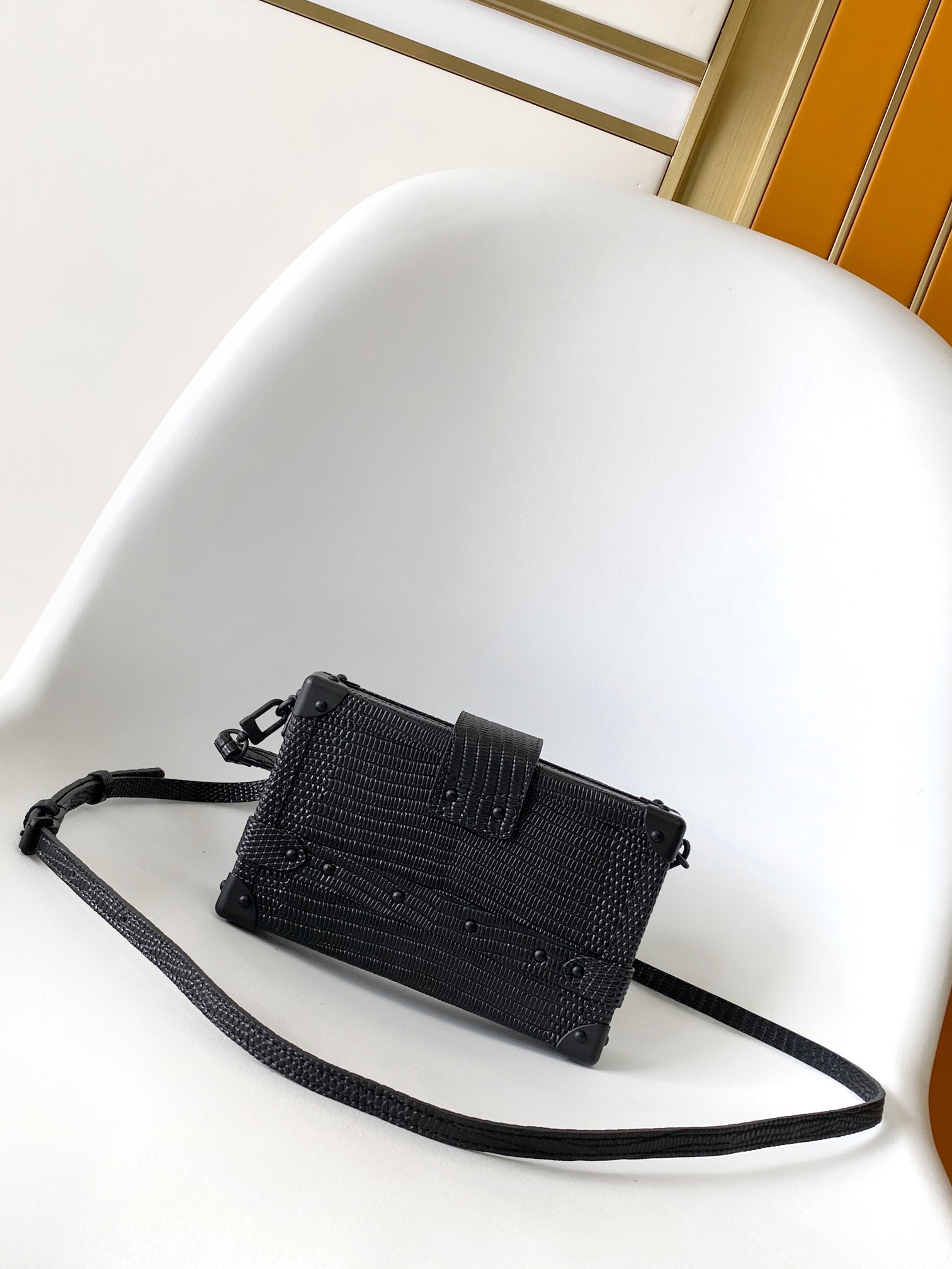 Louis Vuitton Petite Malle Black Lizard Leather Crossbody Bag - Stylish & Chic