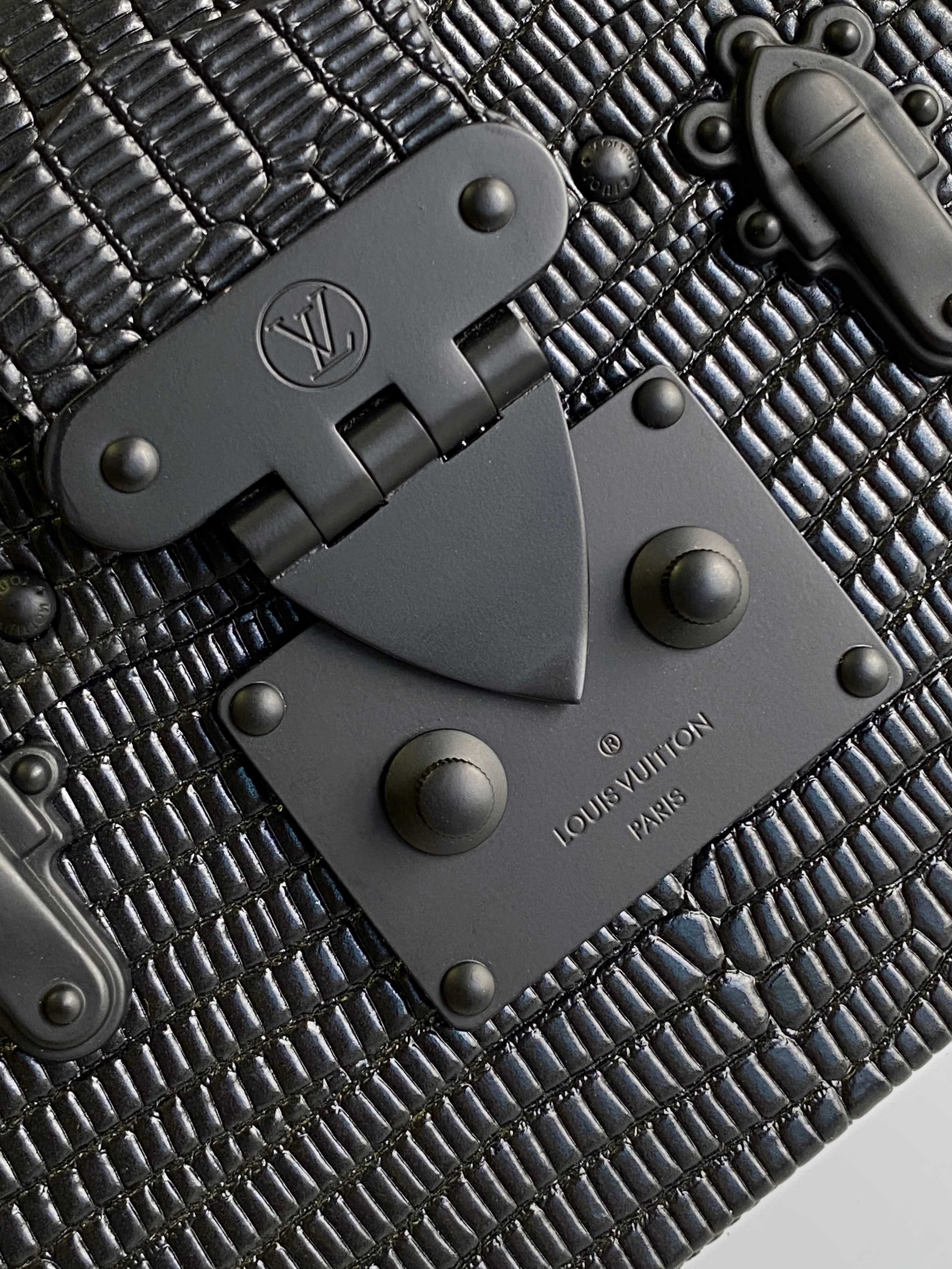 The Louis Vuitton Petite Malle is an iconic piece, inspired by the brand's heritage in trunk making. This particular model, crafted from exquisite black lizard leather, exudes sophistication and luxury.