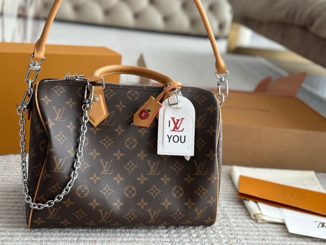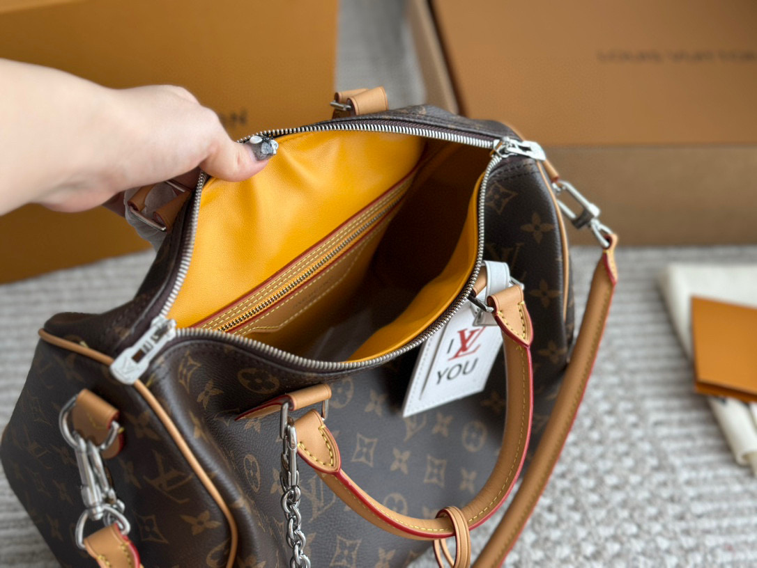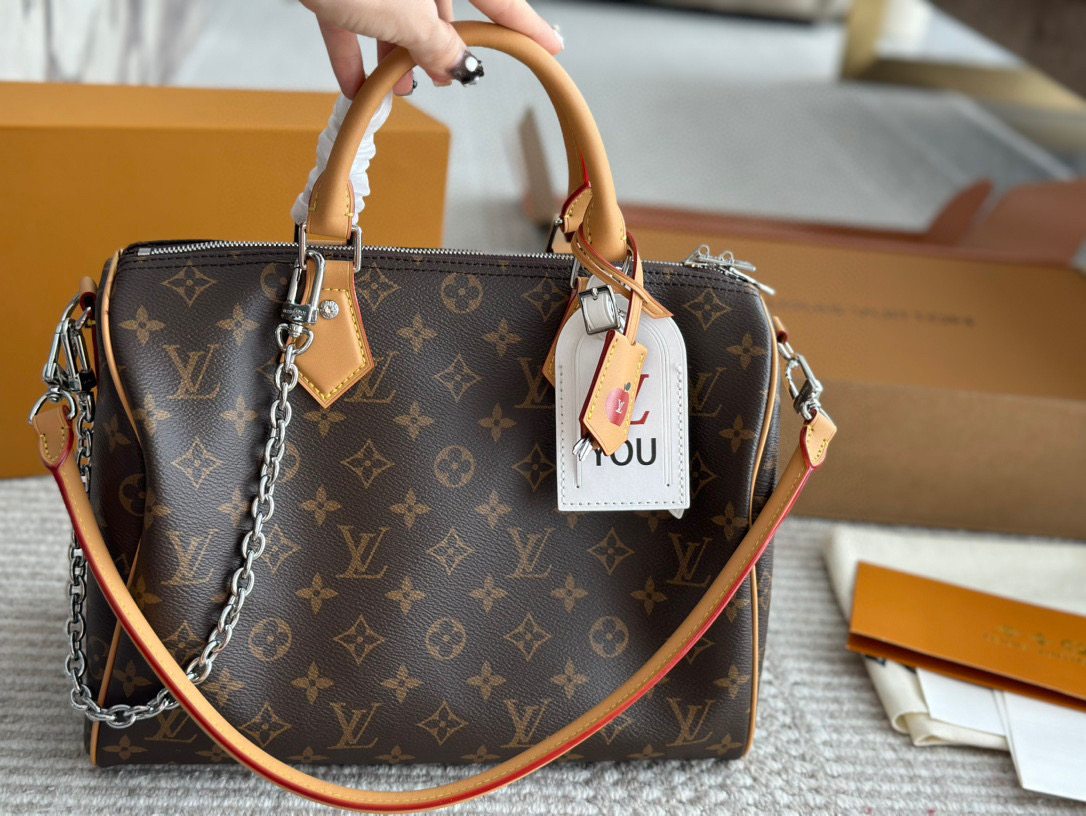 Classic Louis Vuitton Speedy 30 replica pillow bag. Features original hardware and stylish shoulder strap. Perfect for daily use. Includes box.