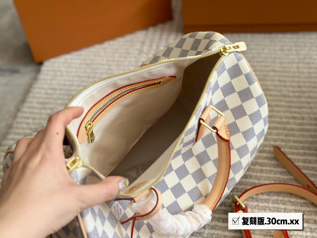 - Design: Features a classic Speedy silhouette with a detachable and adjustable shoulder strap for multiple carrying options.