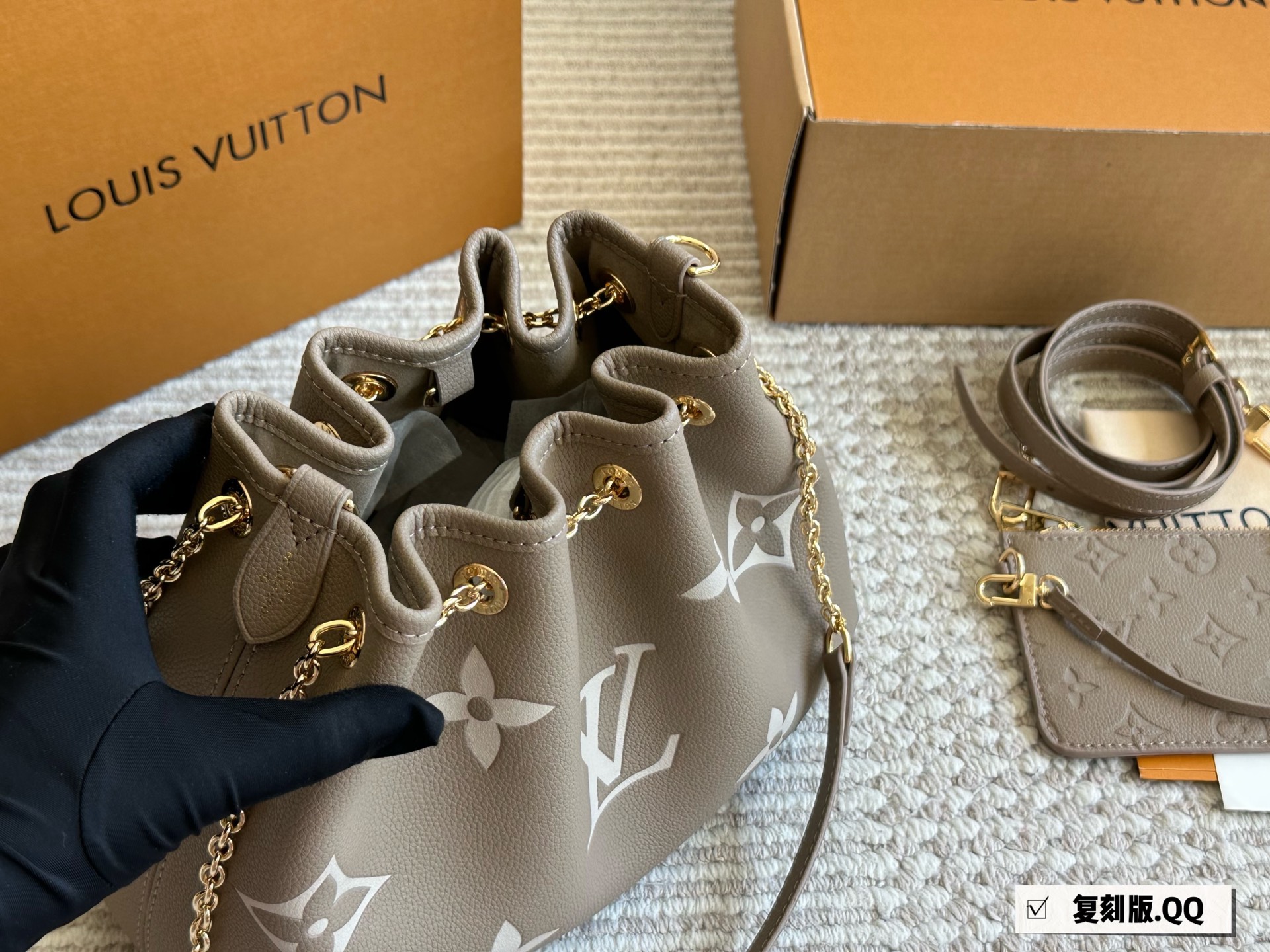 Elevate your style with this chic Louis Vuitton bucket bag. Lightweight, spacious, and perfect for any occasion. Comes with box.