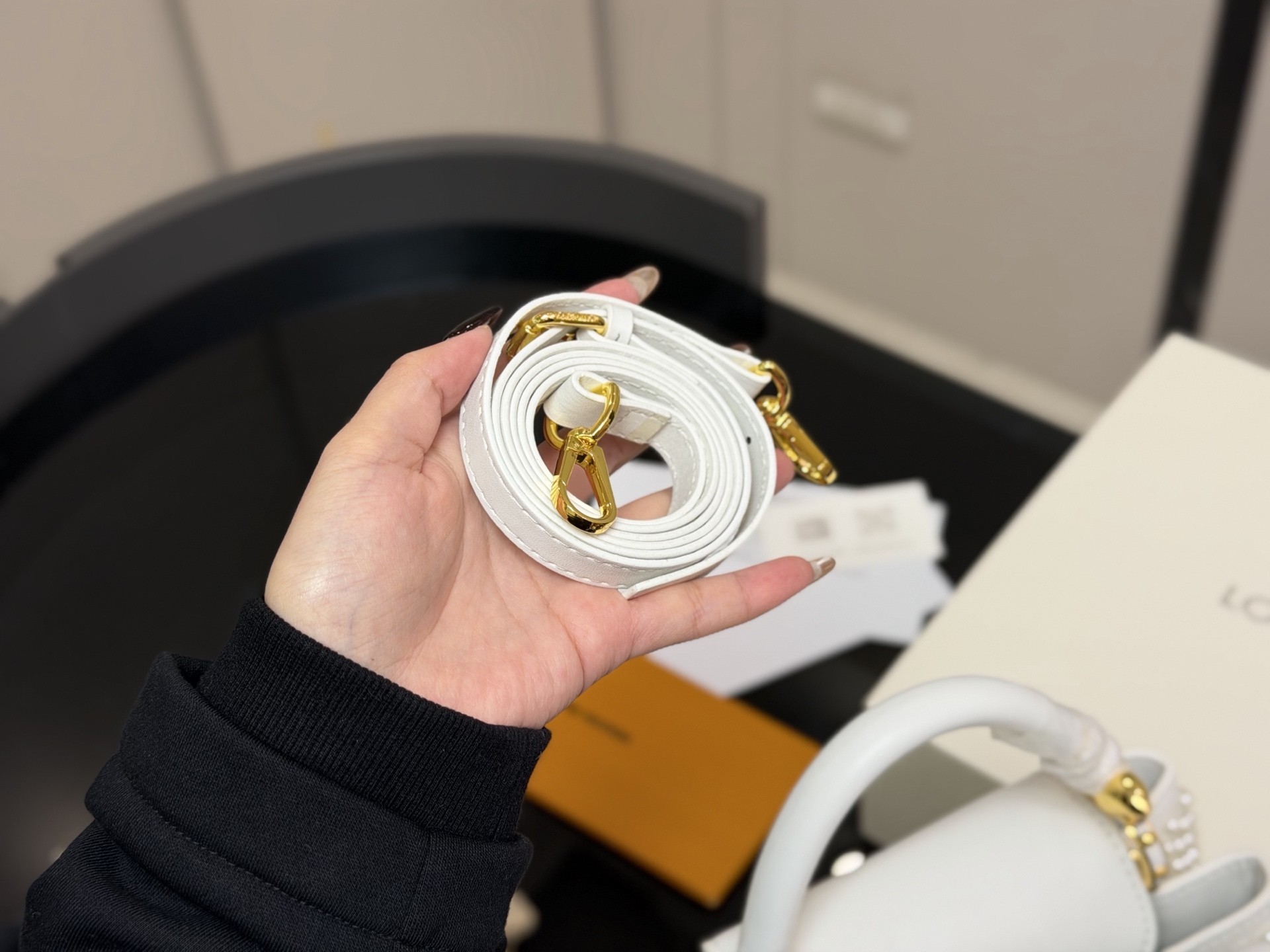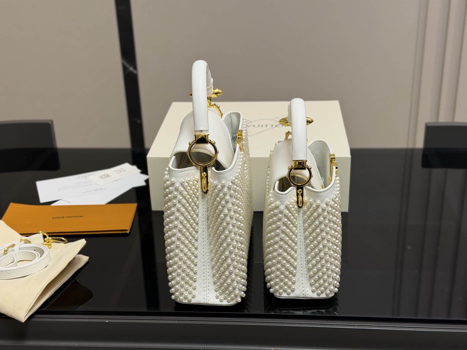 Luxury Lv Capucines White Pearl Handbag,Taurillon Leather, 21/27cm