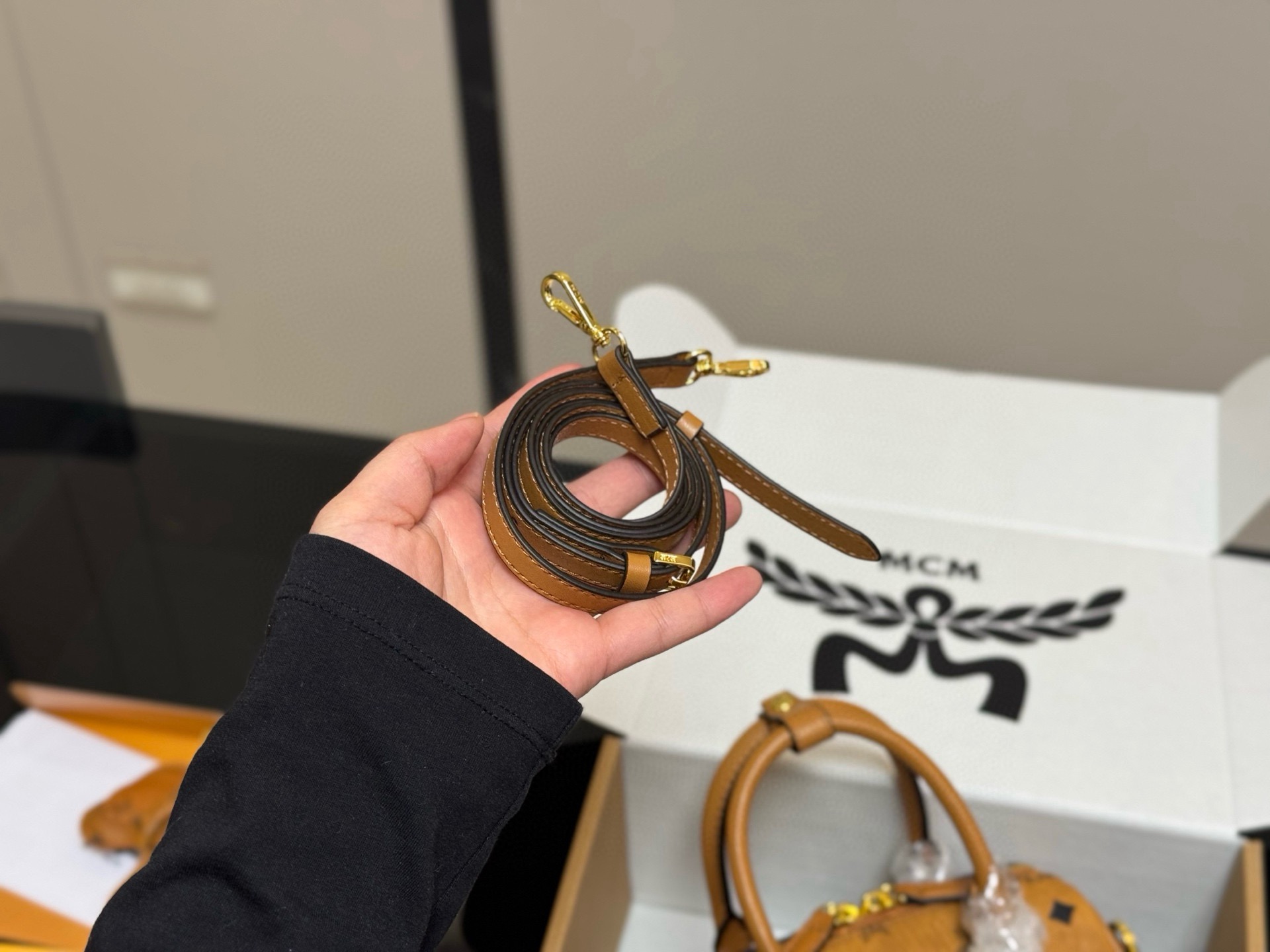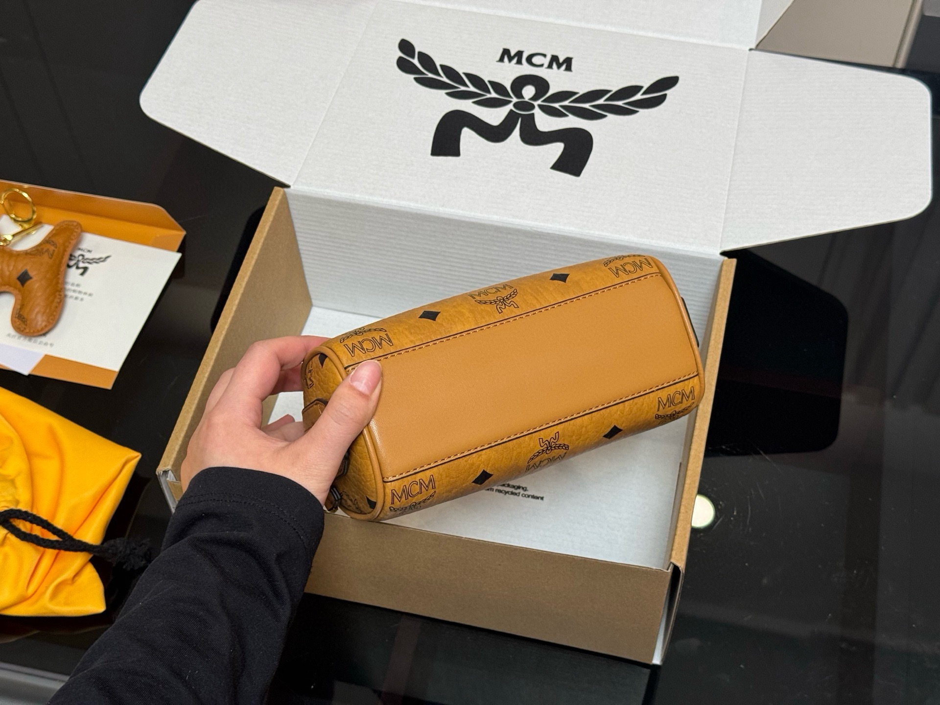 Authentic MCM mini Boston pillow bag with high-quality hardware. Comes with a cute dog accessory. Perfect for everyday use and collectors!