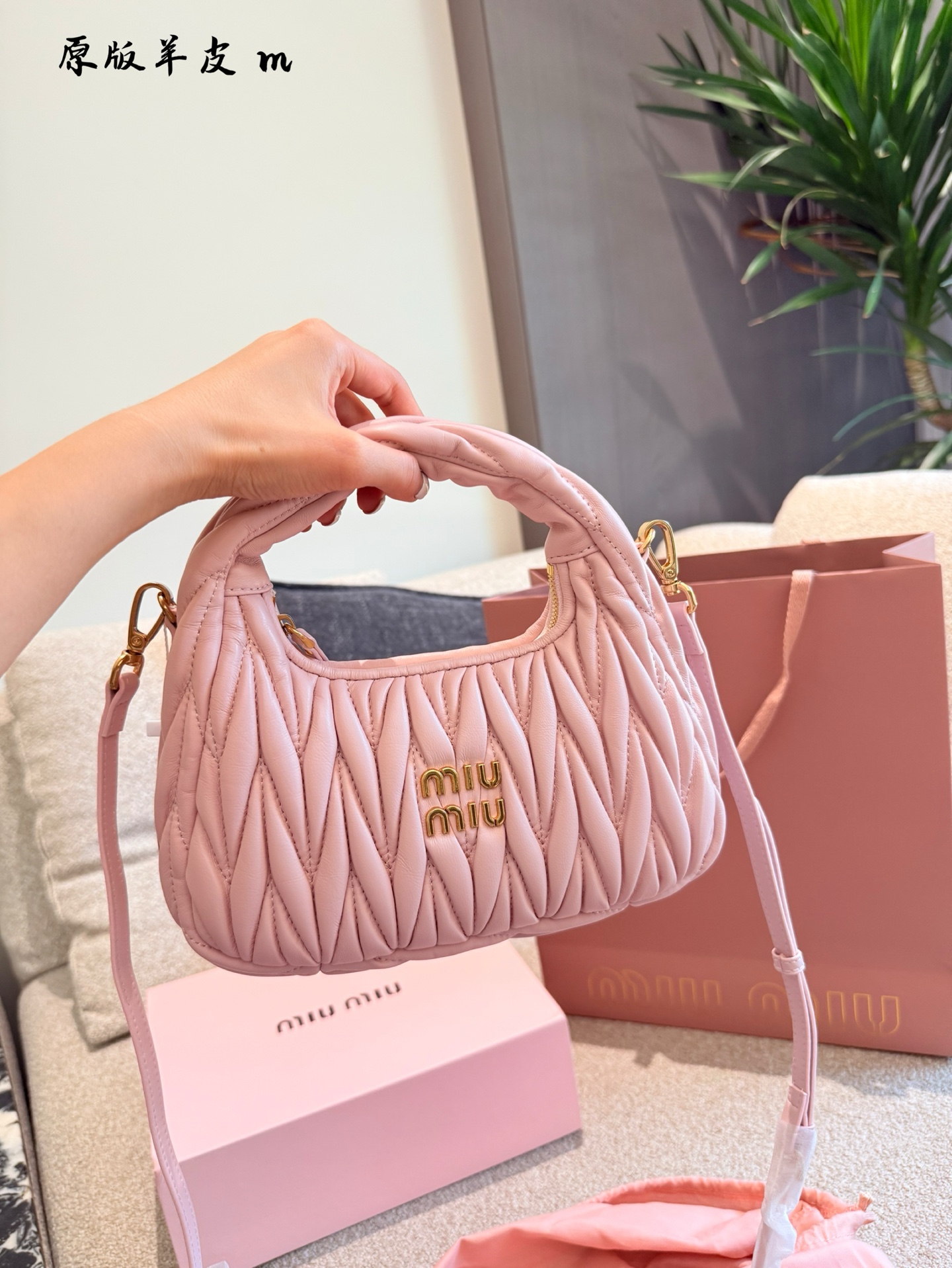 Miu Miu Small Hobo Bag Lambskin Leather Pink, Fashionable and Elegant