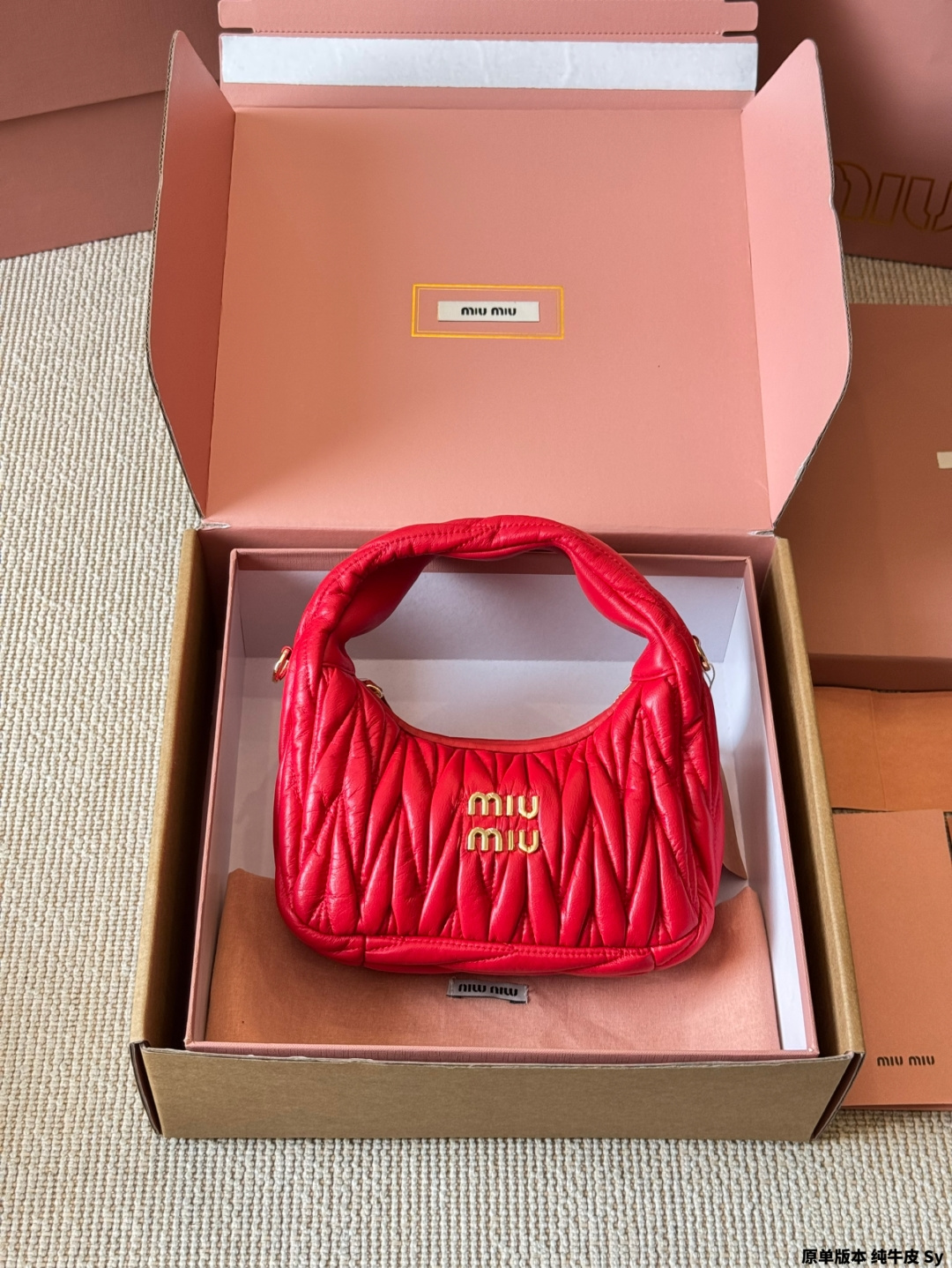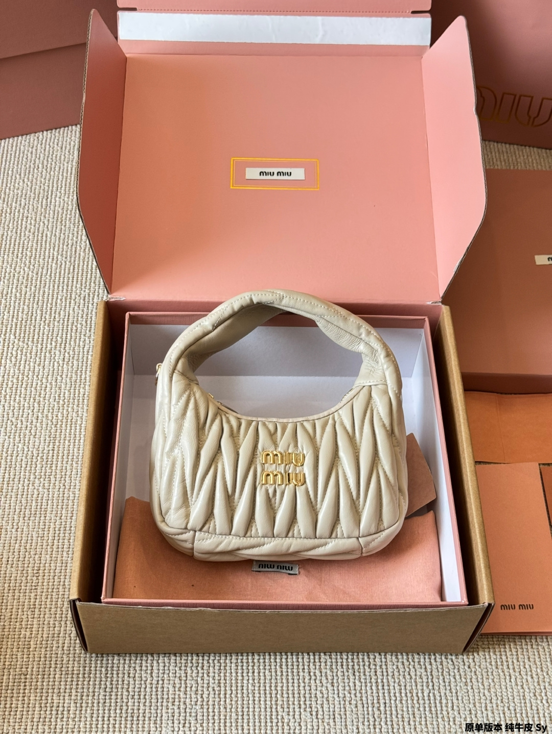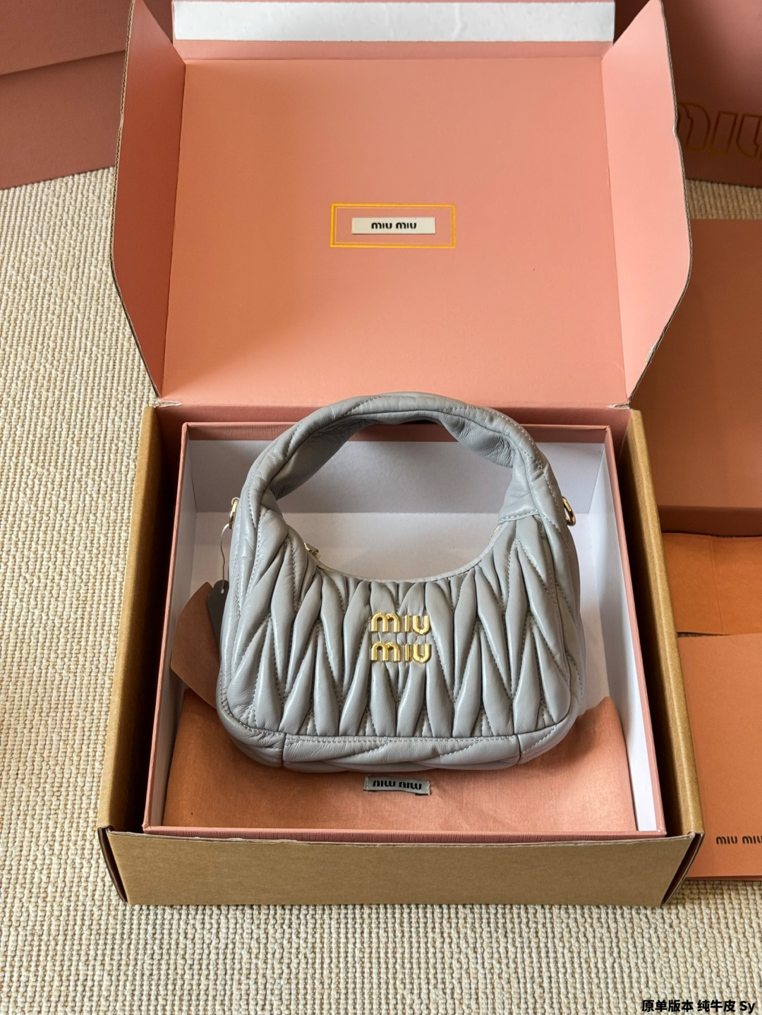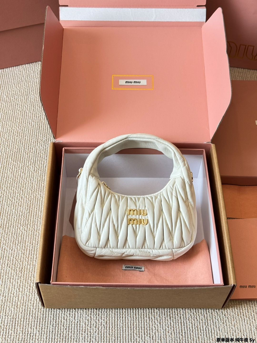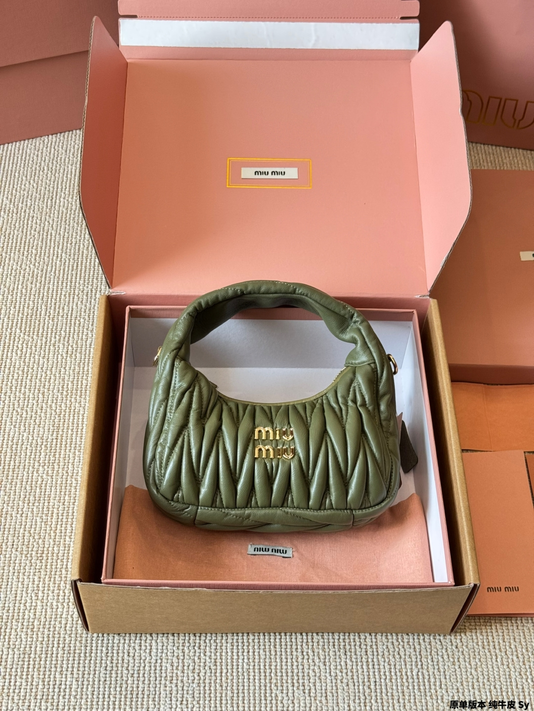 - Features the iconic Miu Miu logo.