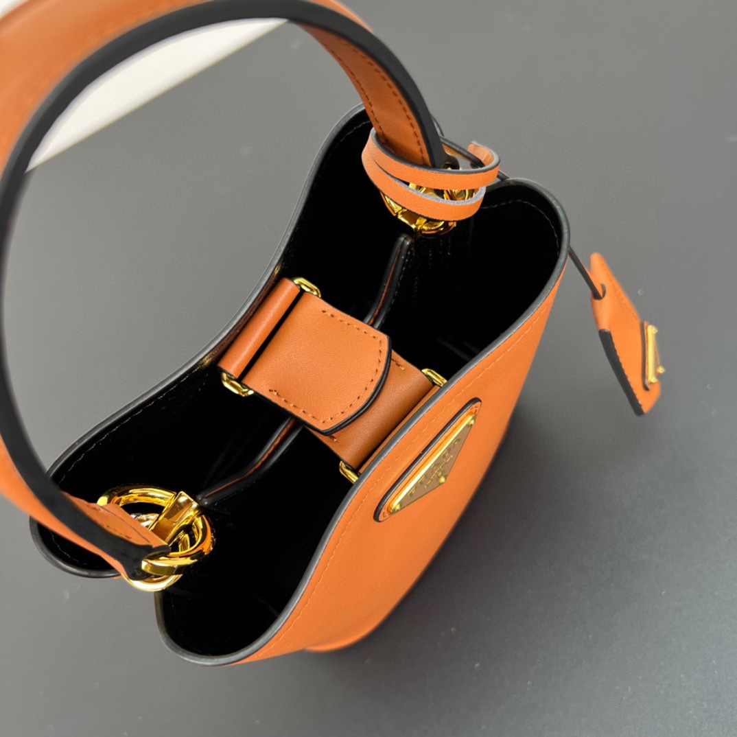 Prada 1BA373 Leather Bucket Bag with Detachable Strap - Chic and Versatile