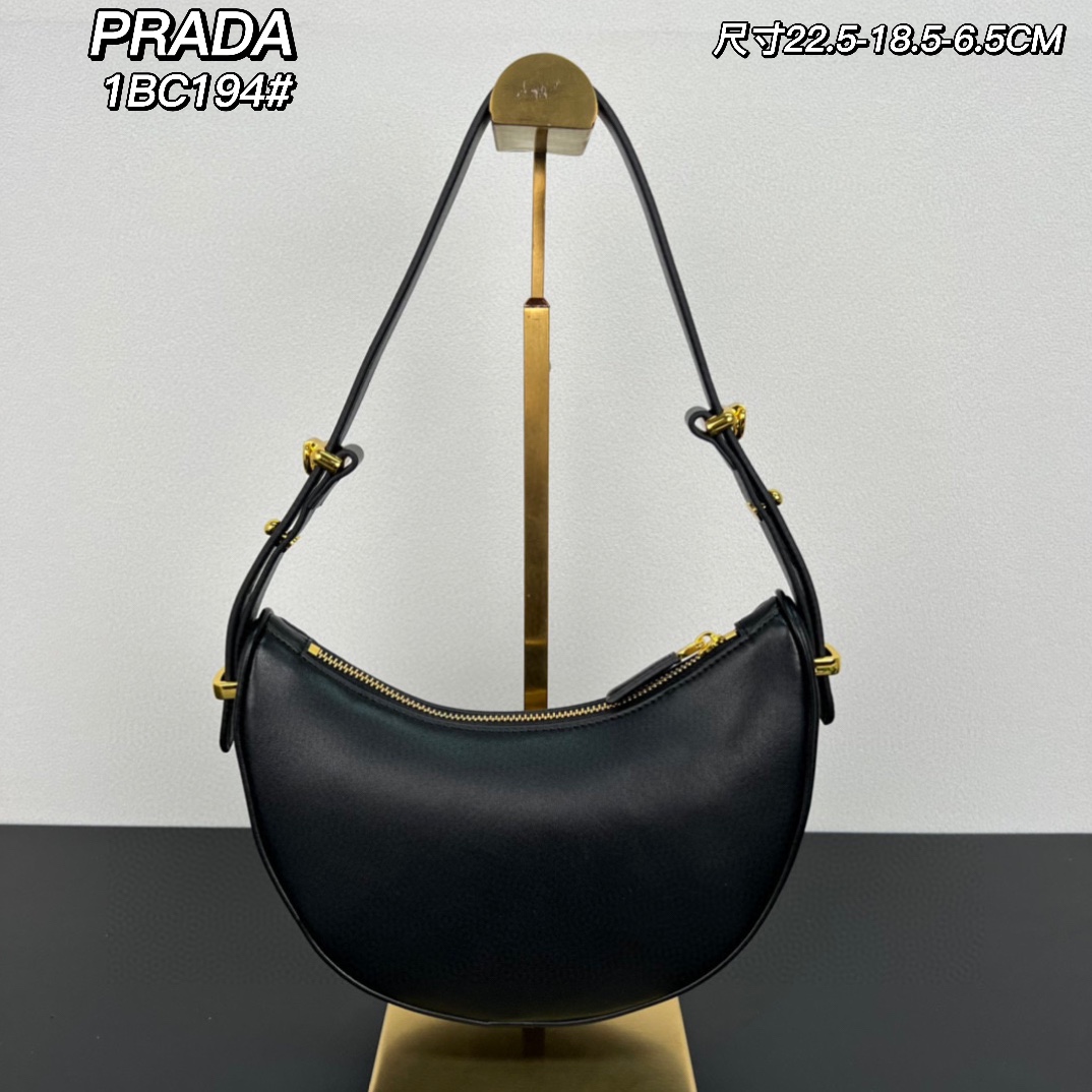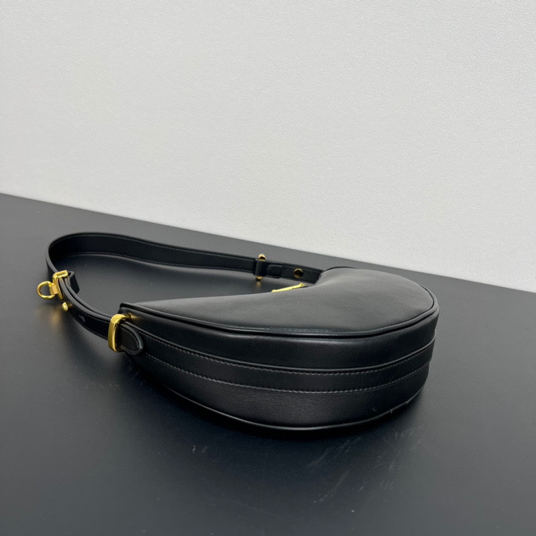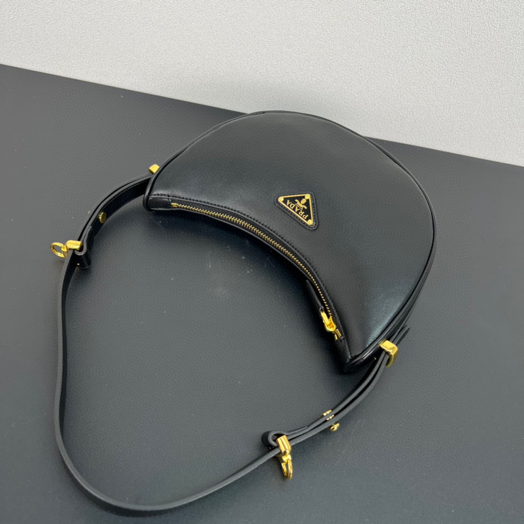 The PRADA Moon Handbag exudes modern elegance and timeless style. Crafted from premium leather, this versatile bag features a unique half-moon shape and adjustable shoulder straps, making it the perfect accessory for any occasion.