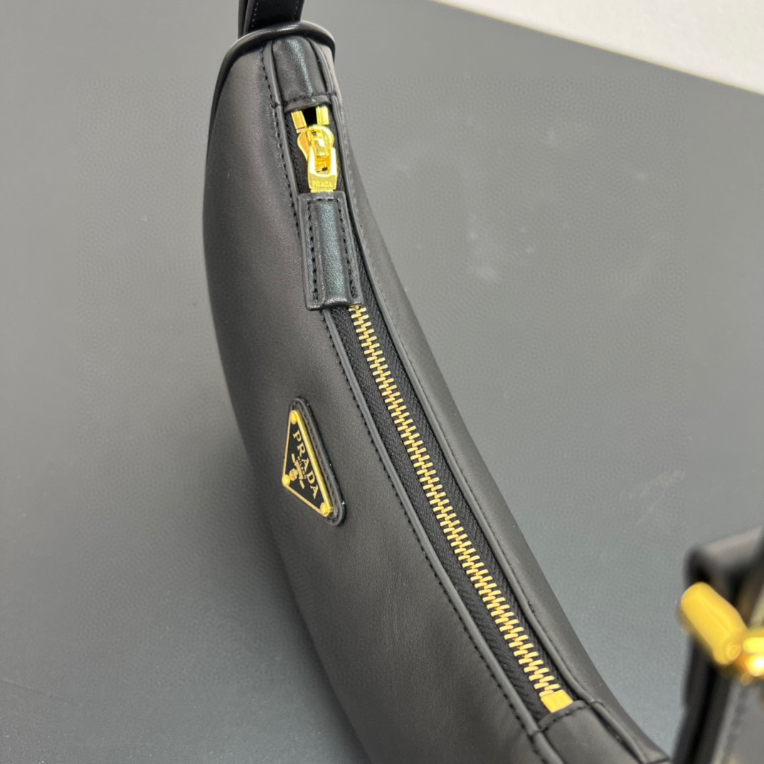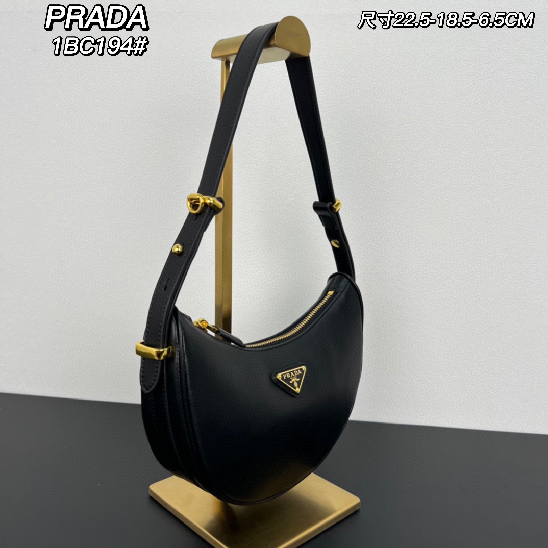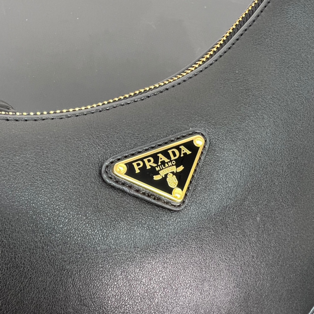 The PRADA Moon Handbag exudes modern elegance and timeless style. Crafted from premium leather, this versatile bag features a unique half-moon shape and adjustable shoulder straps, making it the perfect accessory for any occasion.