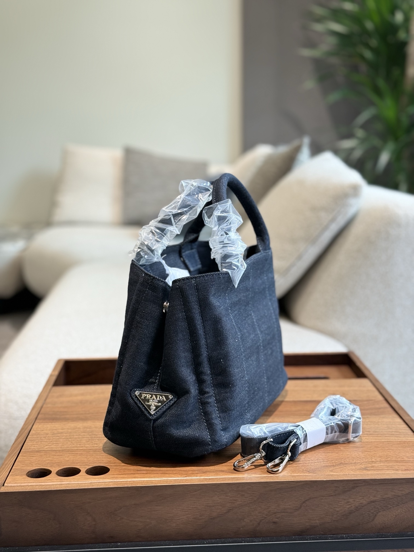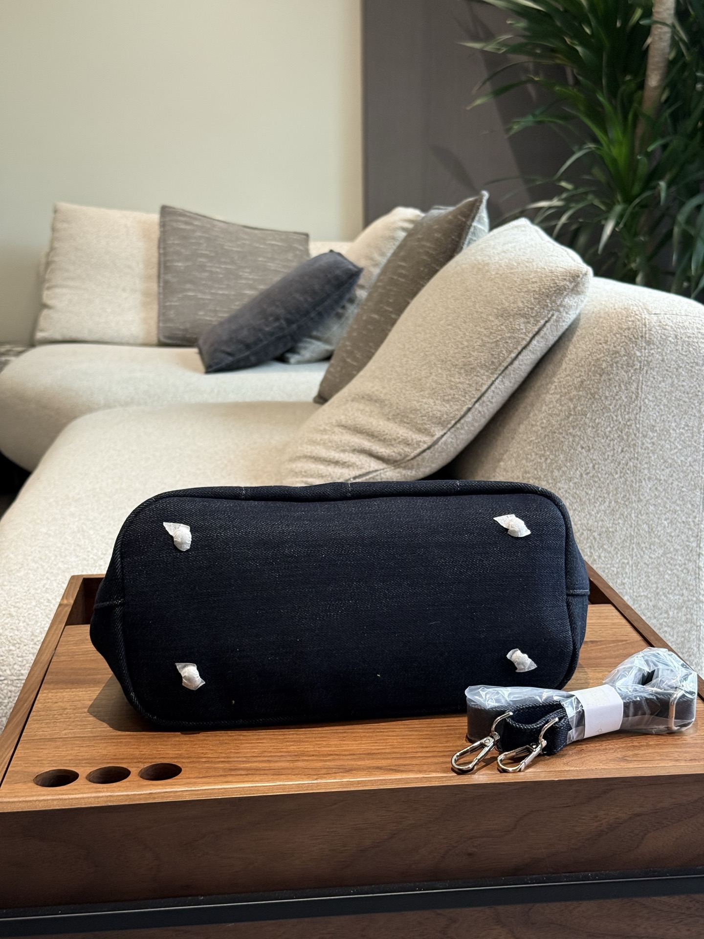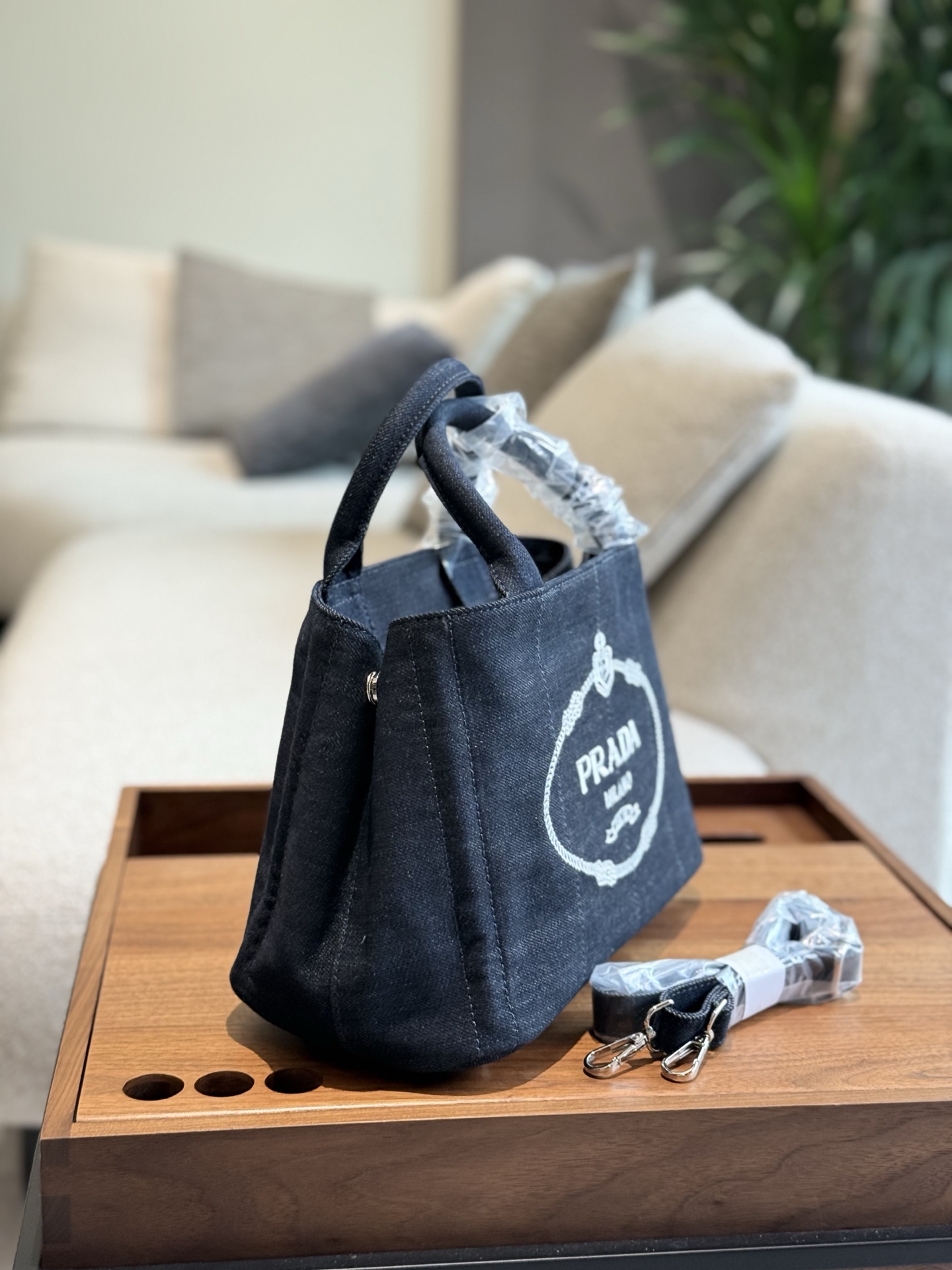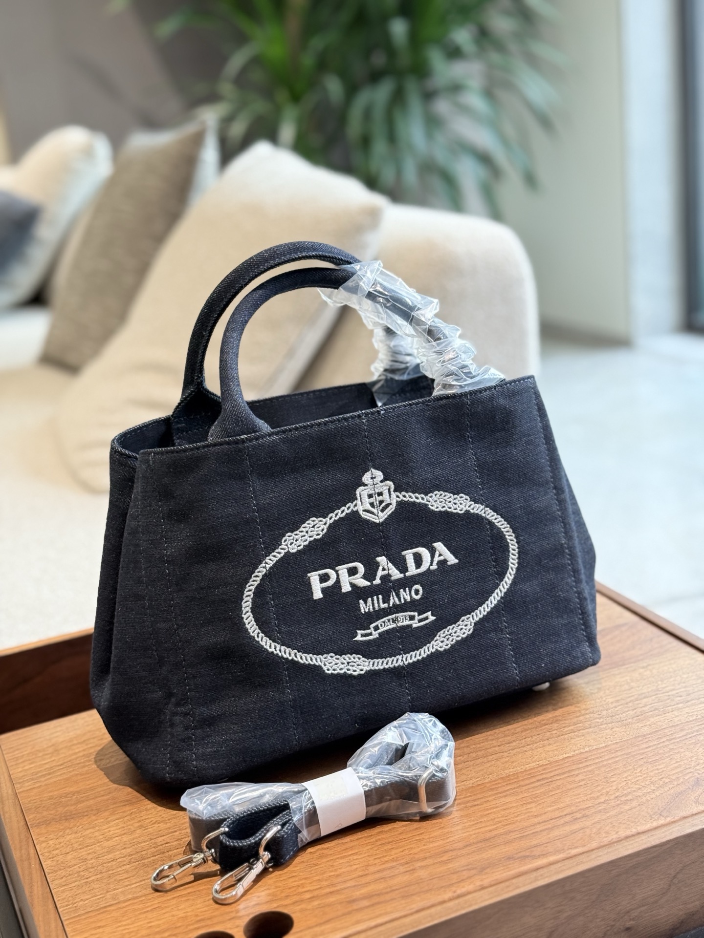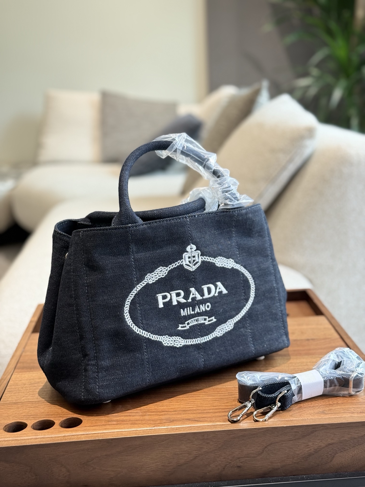 In conclusion, the Prada CANAPA denim beach bag is a stylish and durable accessory that combines practicality with luxury. Its timeless design and robust construction make it a worthwhile addition to any wardrobe.