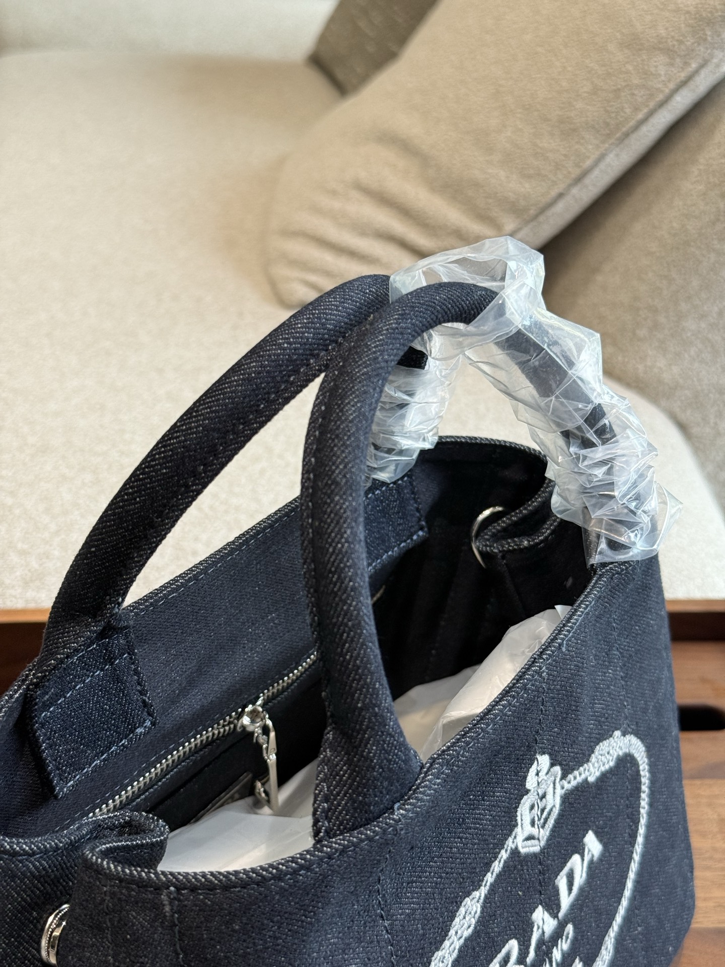 Prada CANAPA Denim Beach Bag, Dark Blue, Durable Material, 26cm