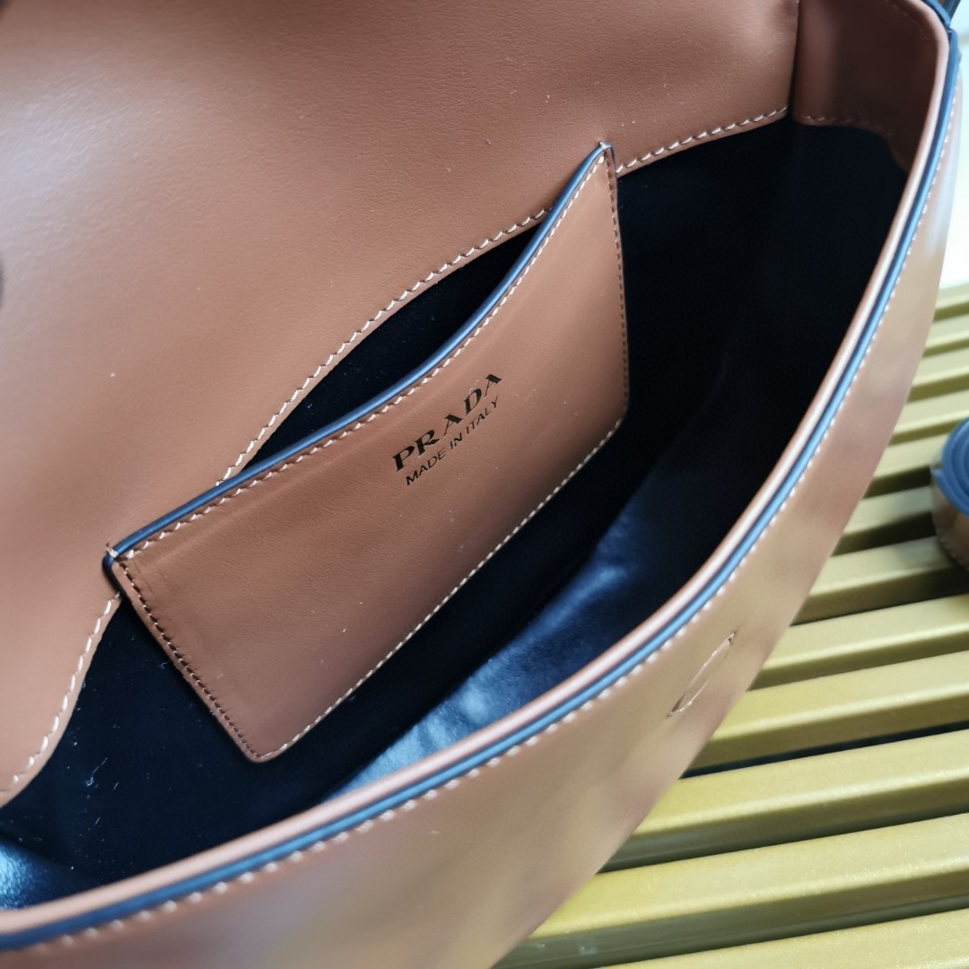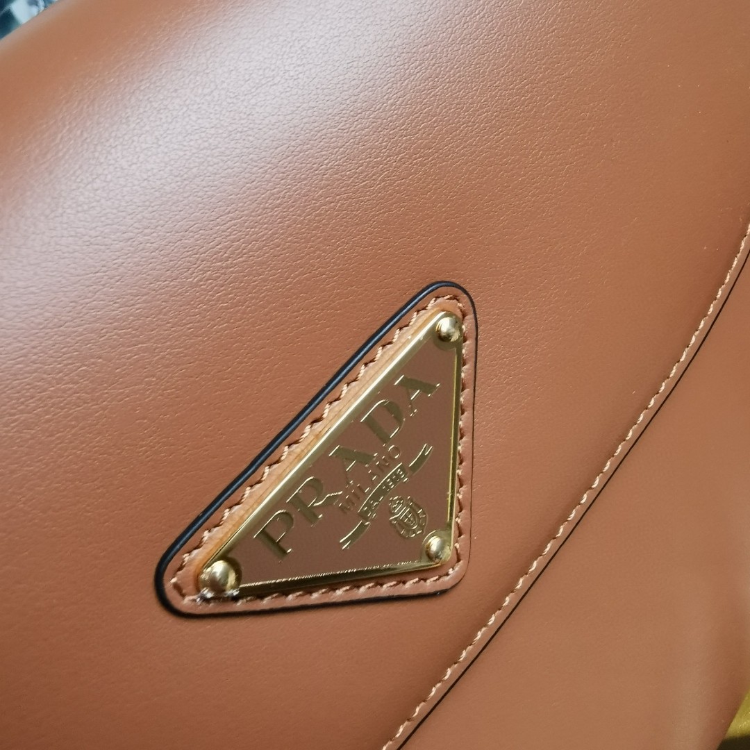 The Prada Moon Bag is a blend of timeless elegance and modern functionality. Crafted from premium leather, this shoulder bag offers a sophisticated look with its clean lines and iconic Prada logo.