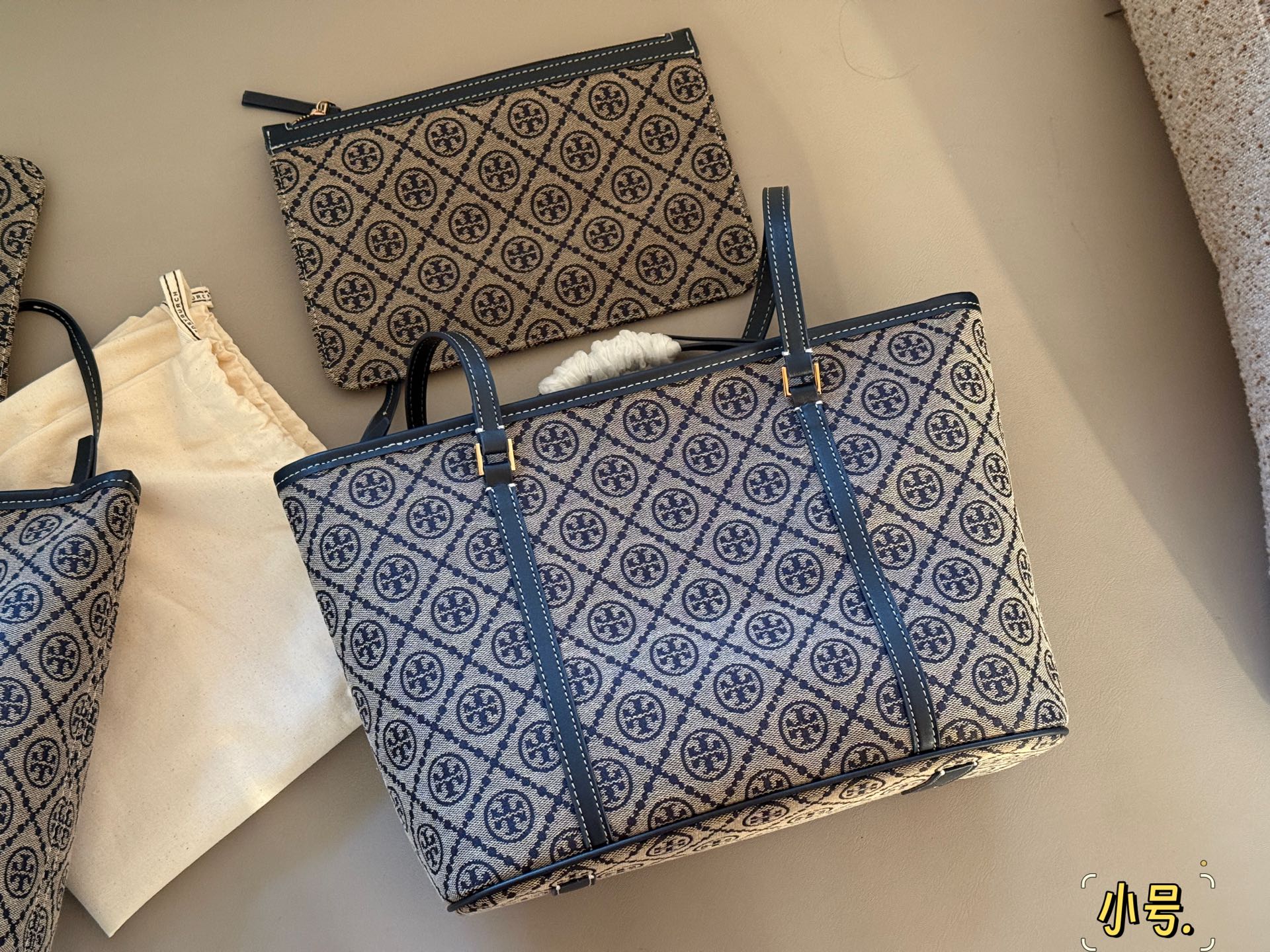 Tory Burch Navy Floral Print Tote Bag with Coin Purse - Lightweight