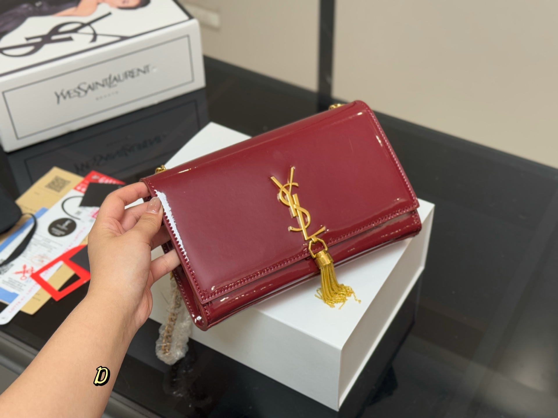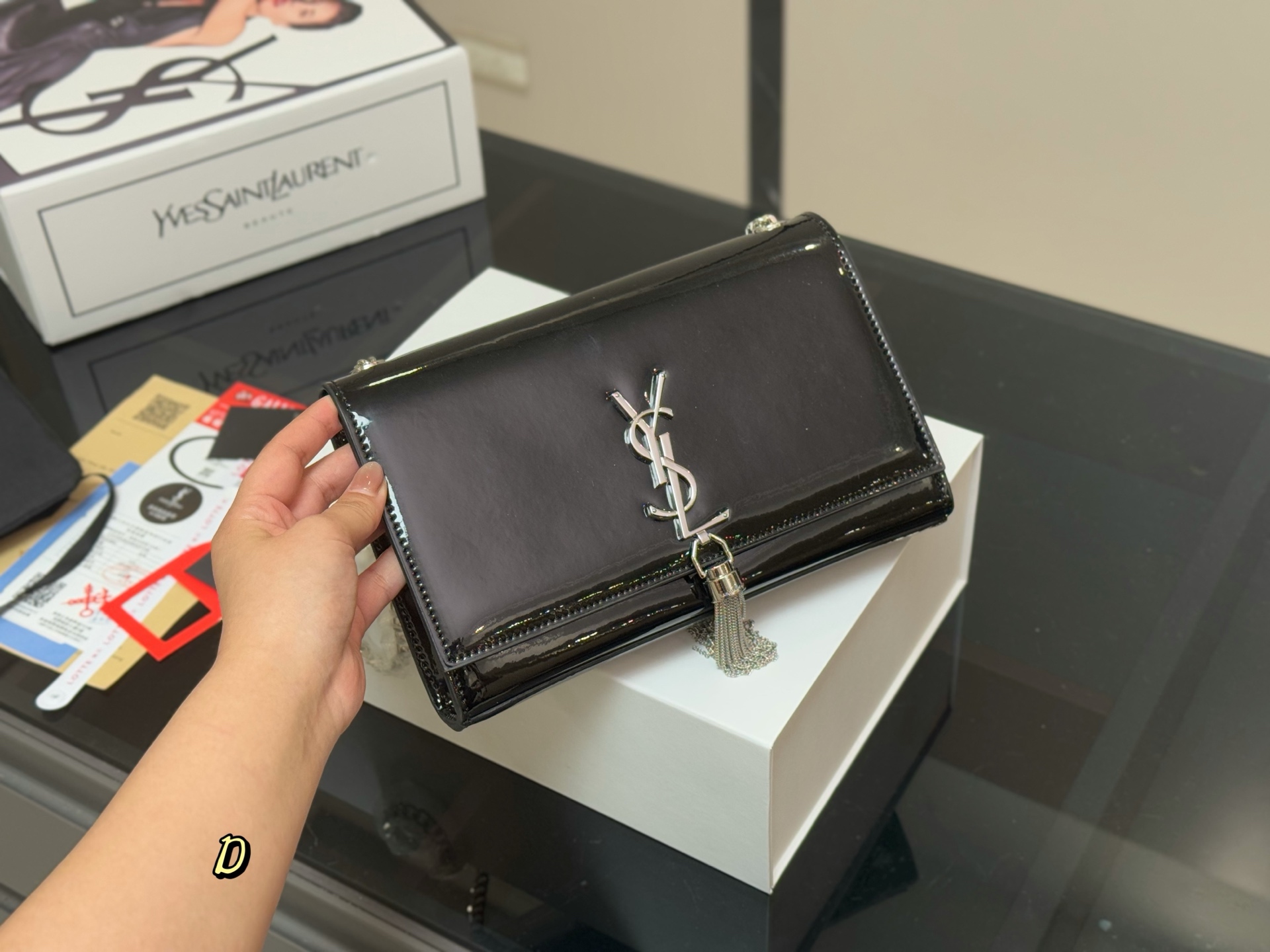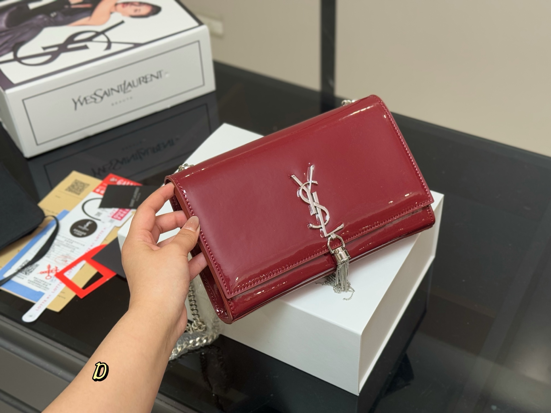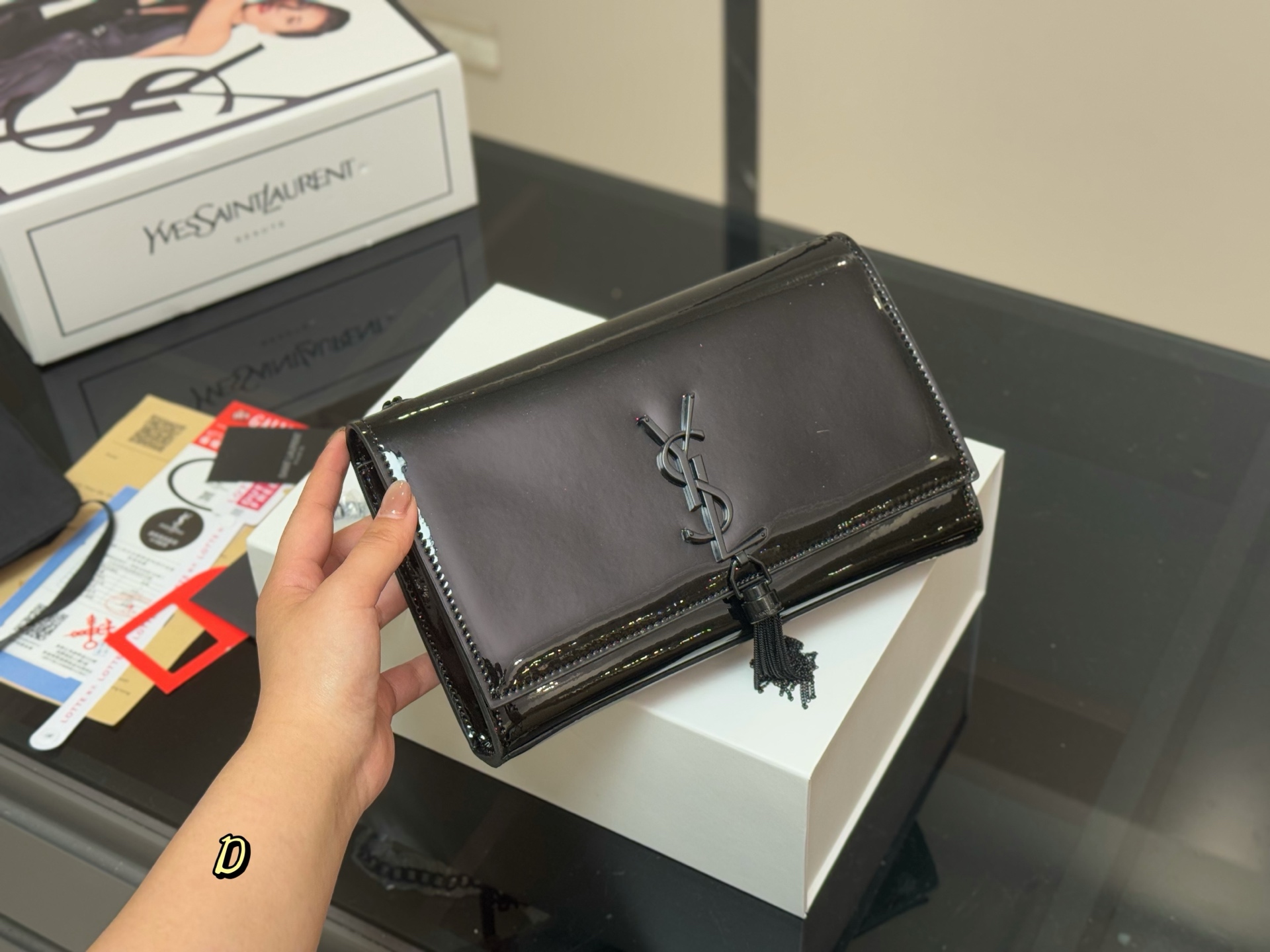- Envelope Style: Classic envelope design with the iconic YSL logo.