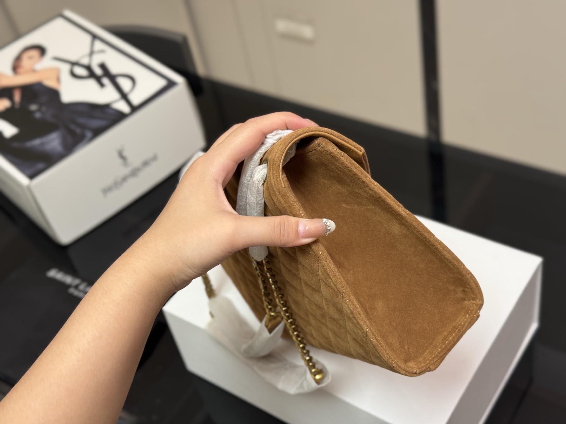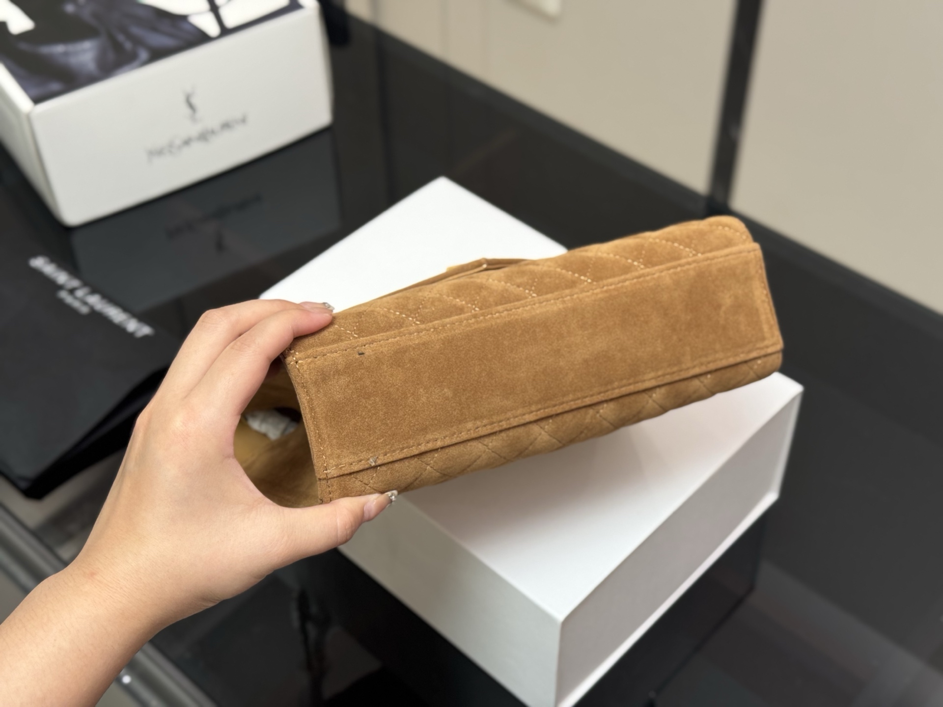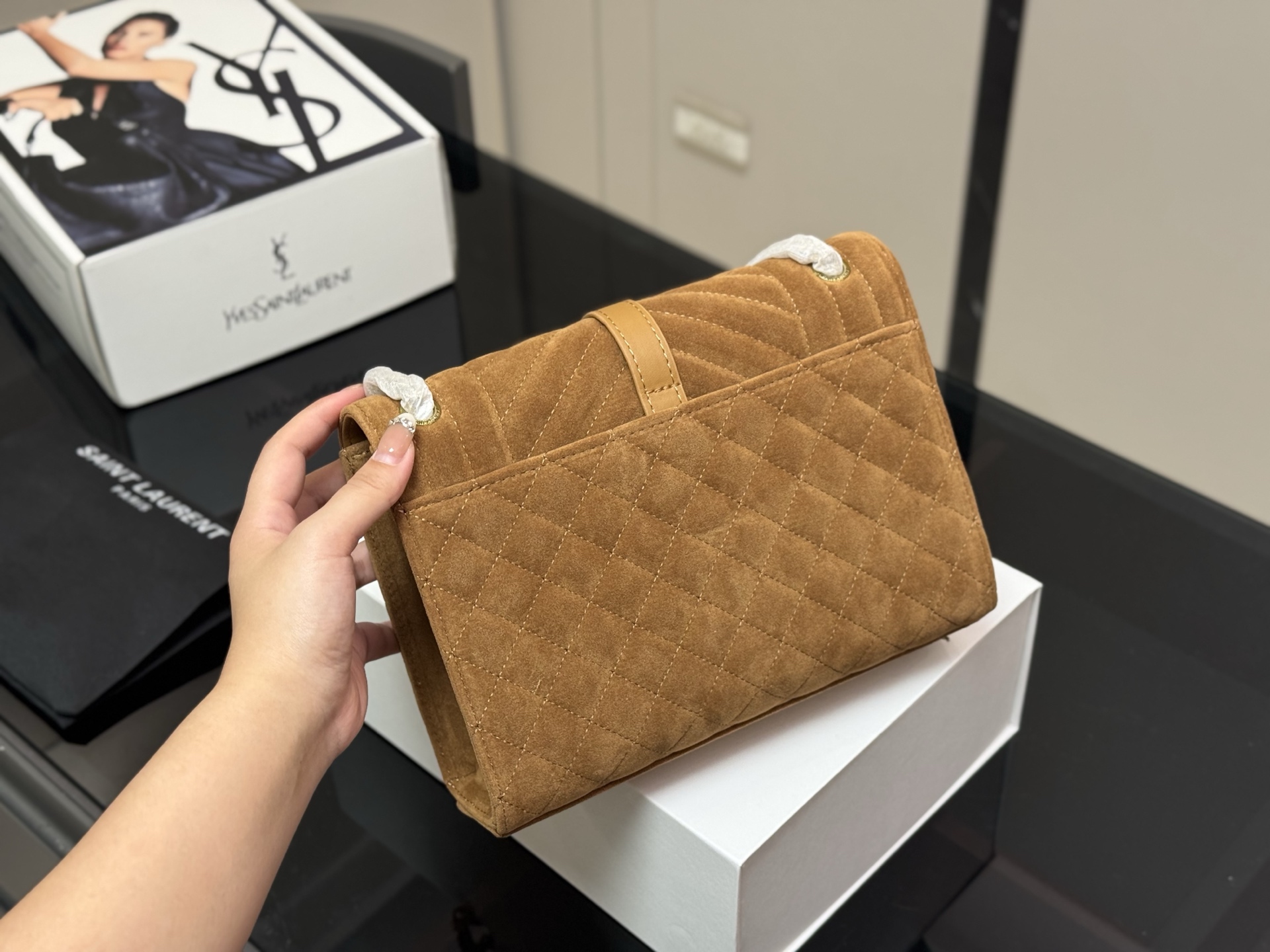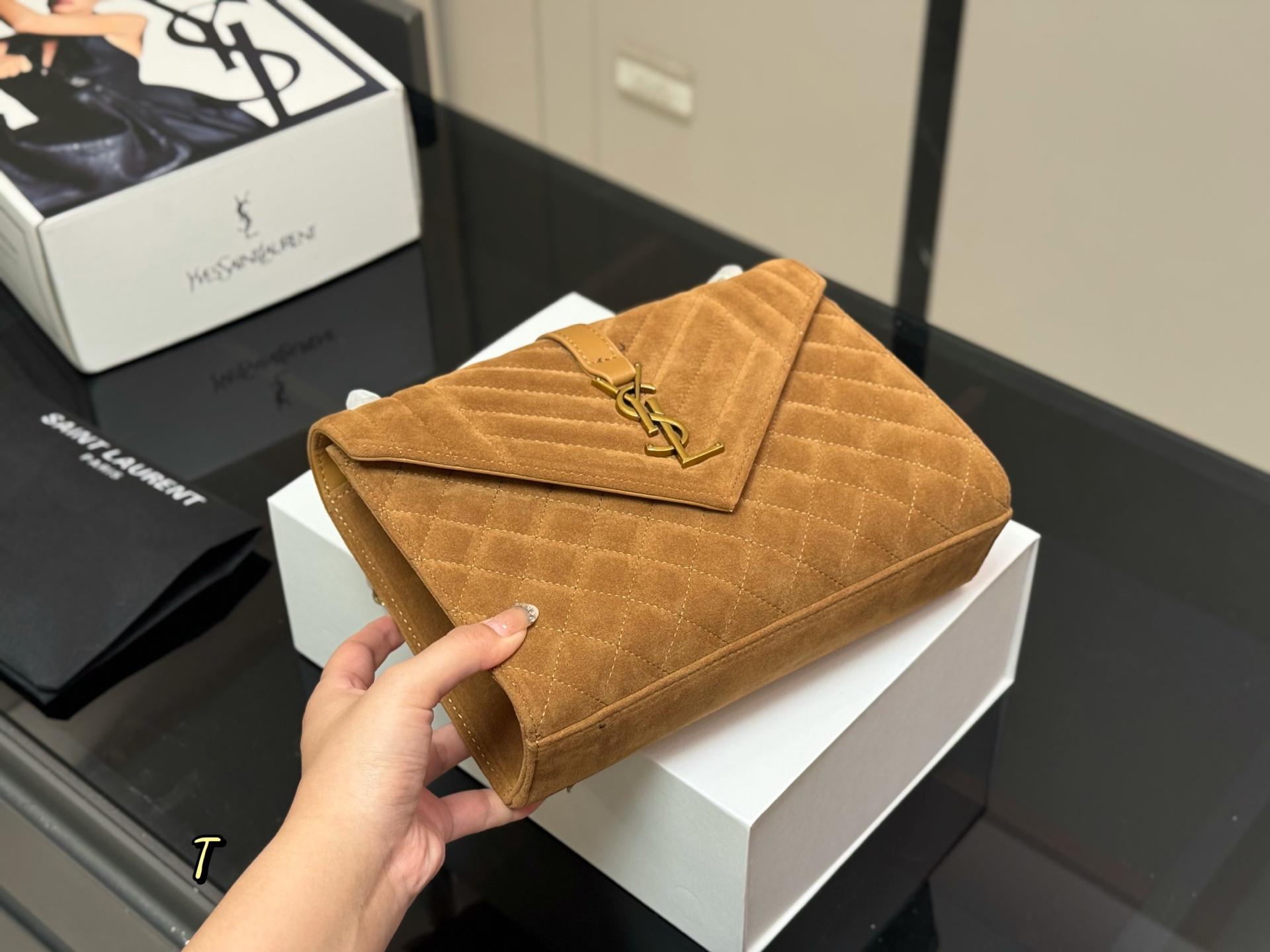 Yves Saint Laurent Envelope Bag in Brown Suede with Gold-tone Hardware
