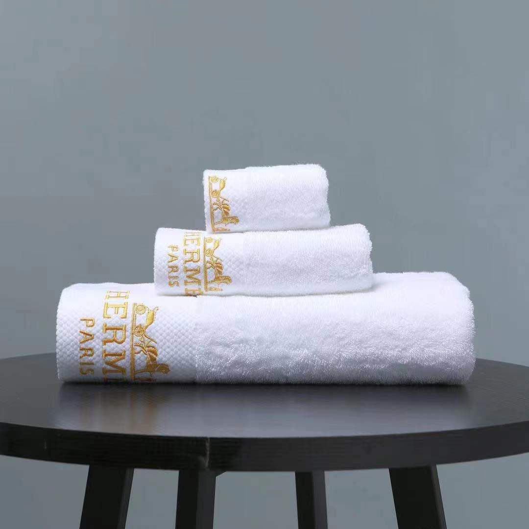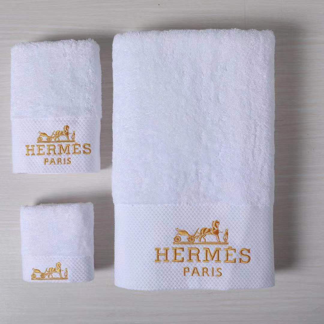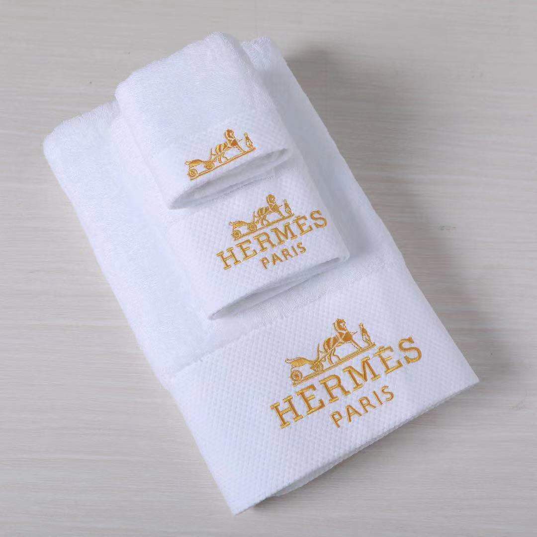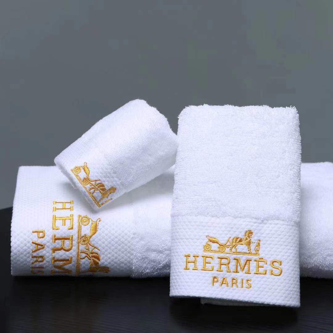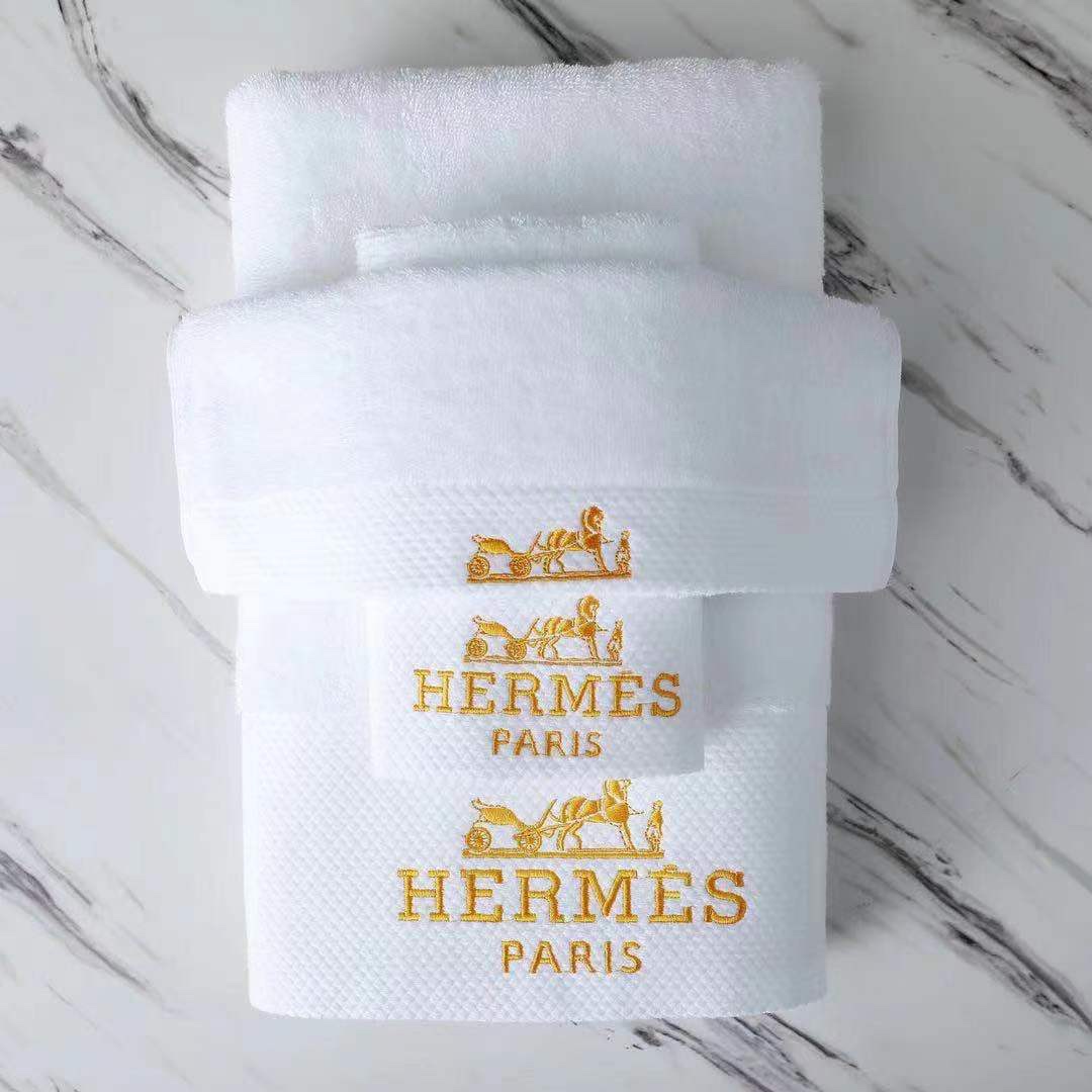 Indulge in luxurious comfort with this Hermès towel set. Made from 100% Pakistan cotton, these soft and absorbent towels feature elegant gold embroidery. Perfect for everyday use.