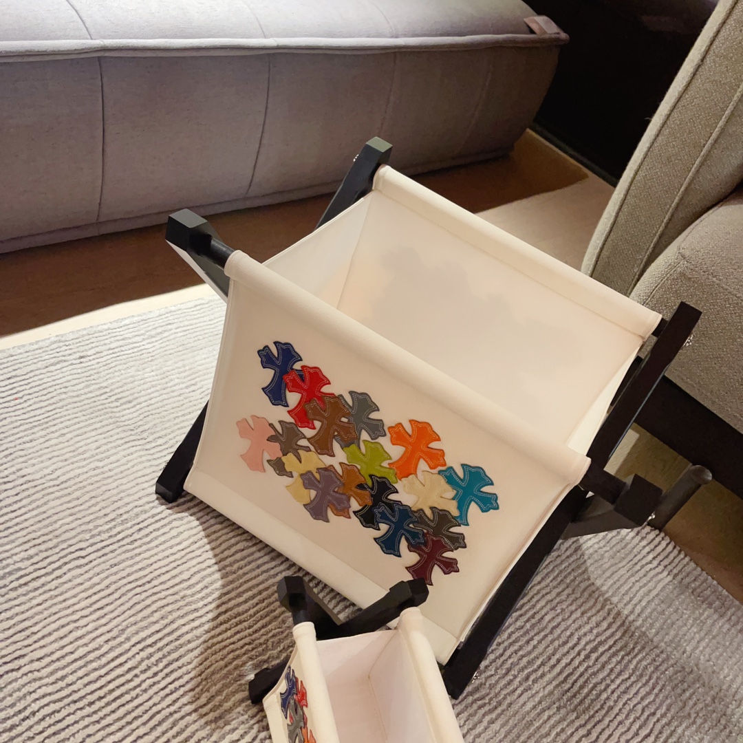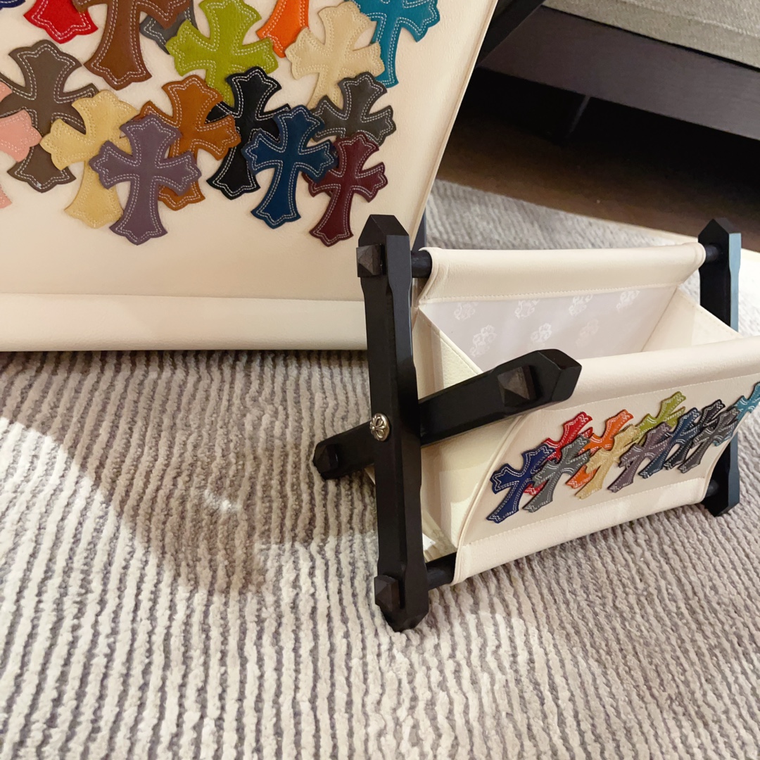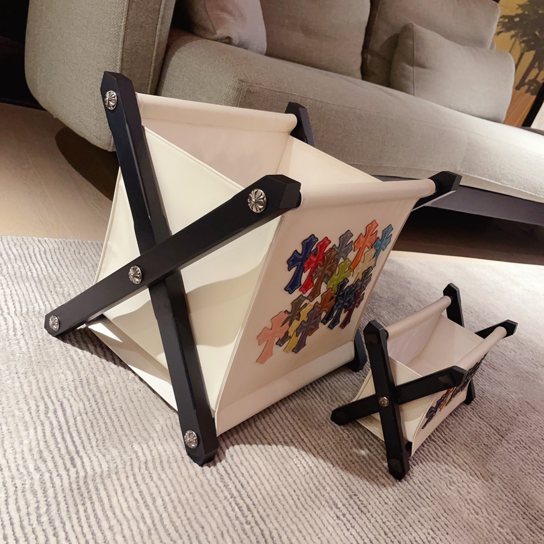 Chrome Hearts Wooden Folding Storage Rack Basket with Cross Embroidery