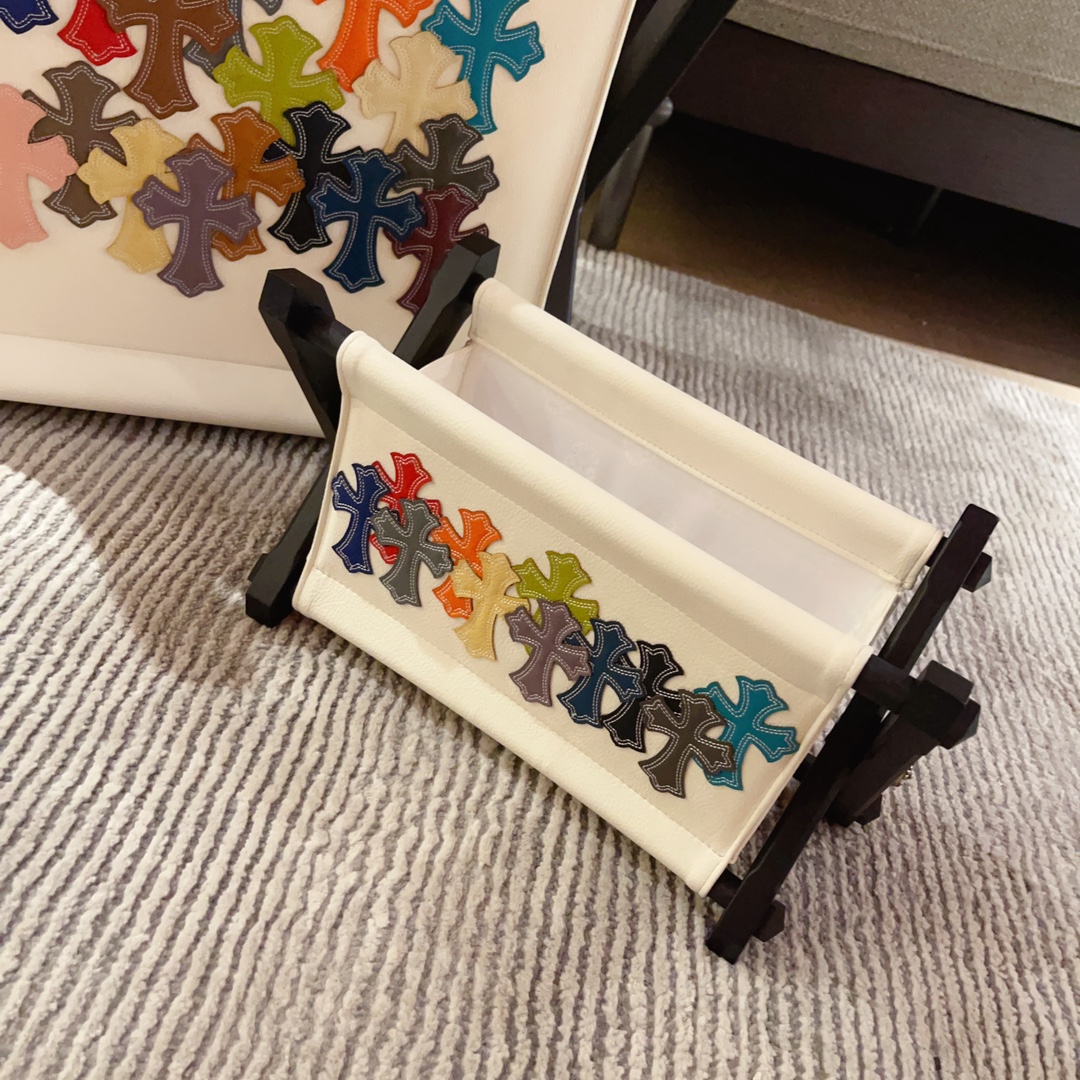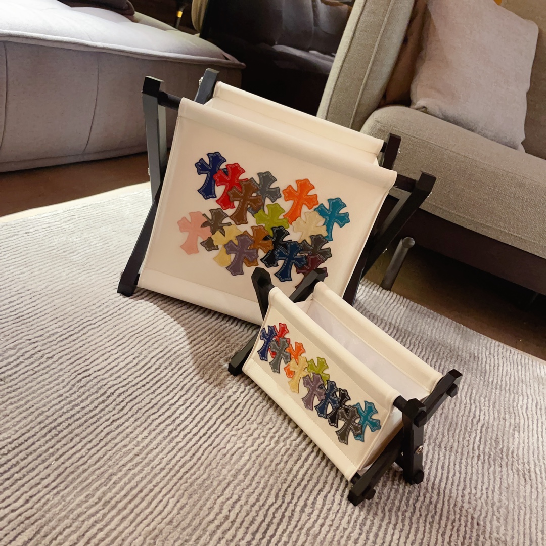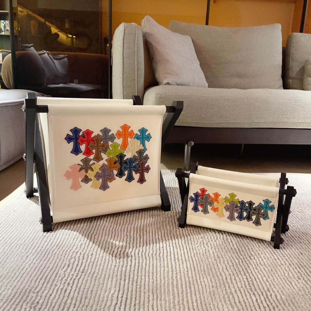 Chrome Hearts Wooden Folding Storage Rack Basket with Cross Embroidery