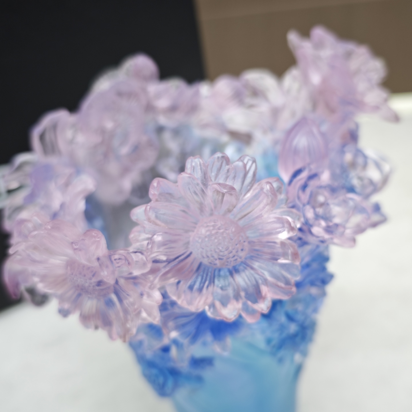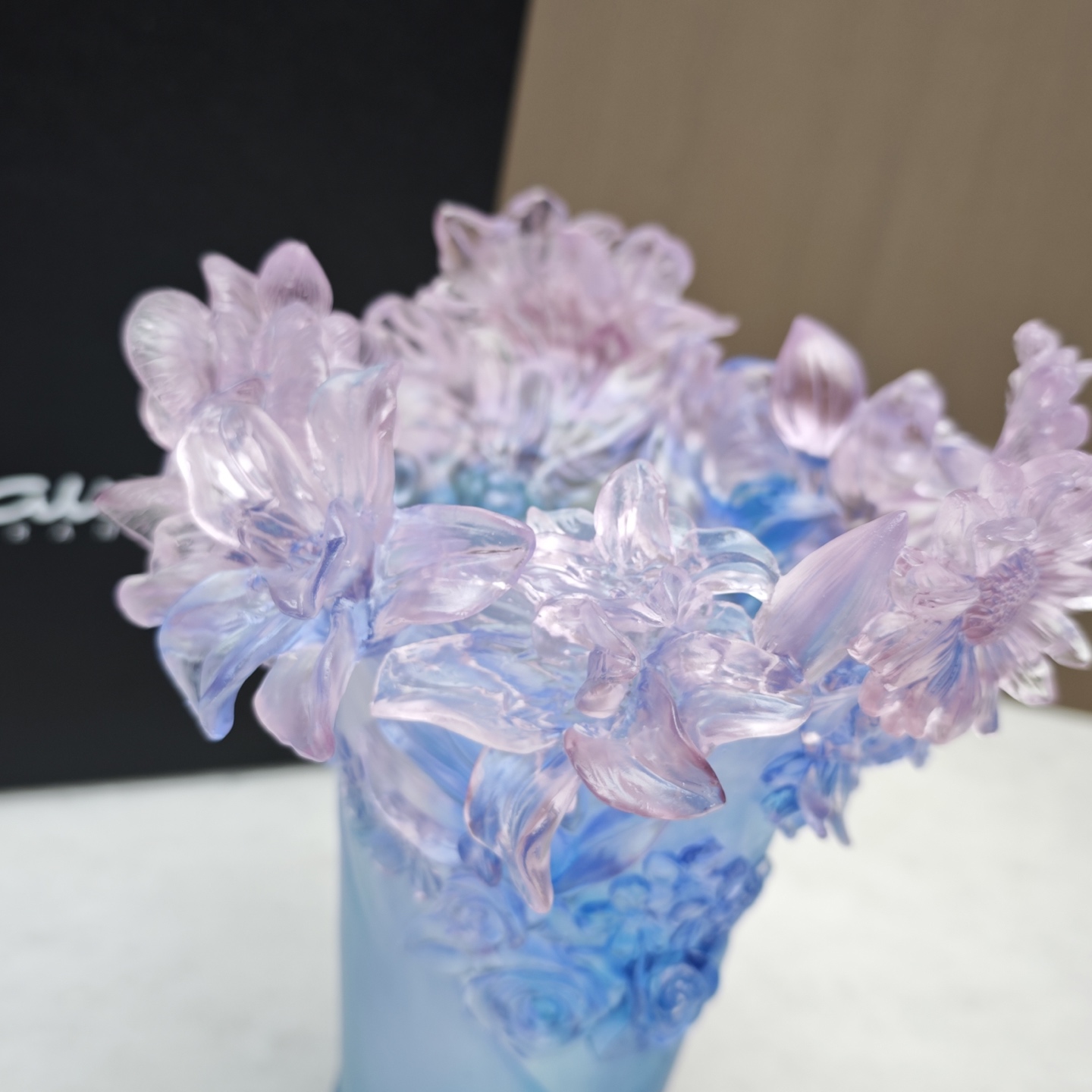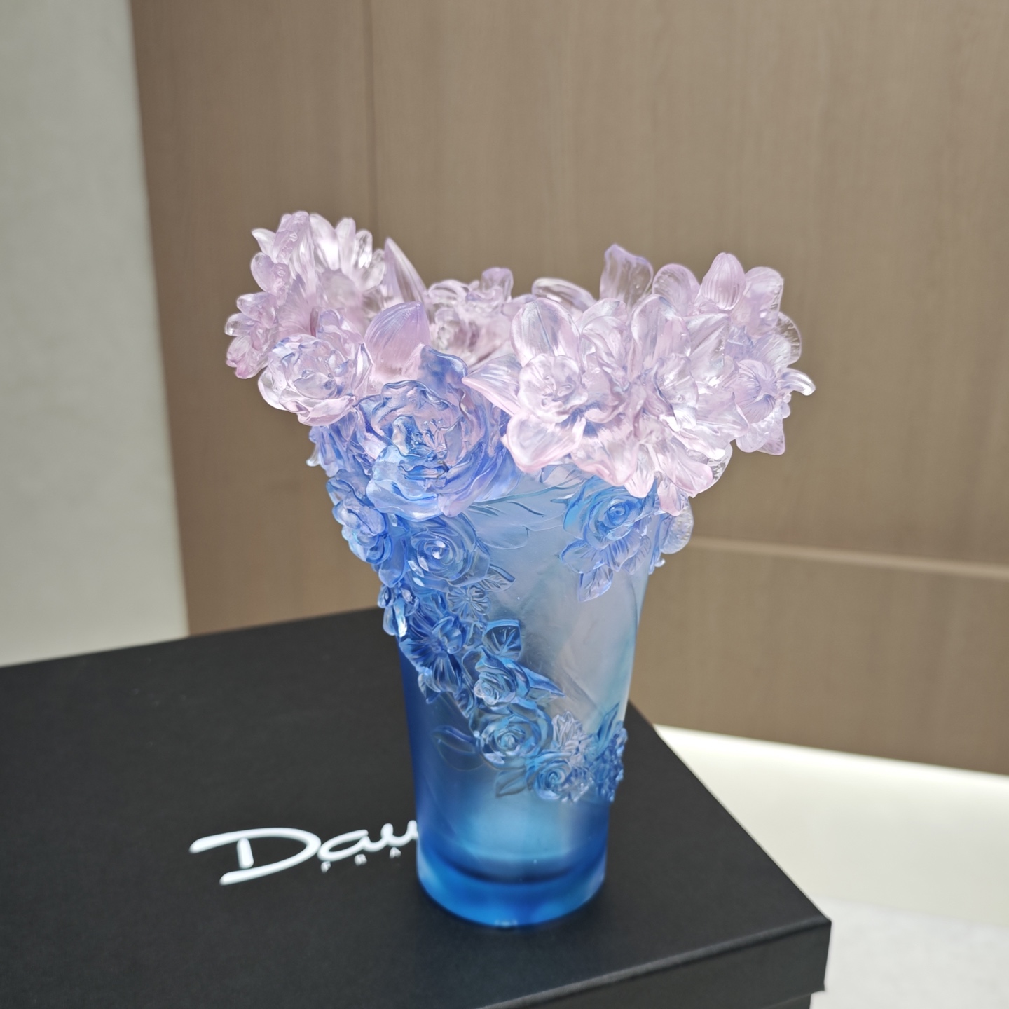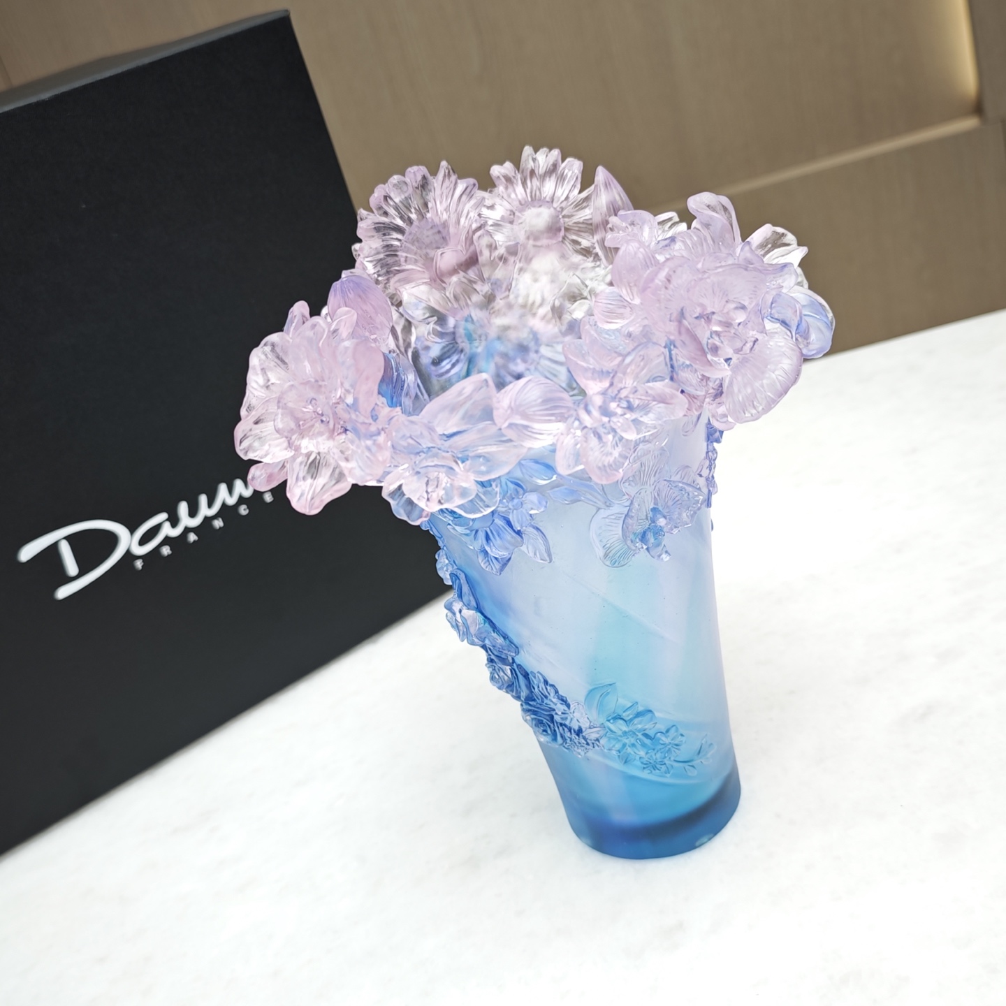 Daum crystal flower vase, where light dances through natural crystal, illuminating the delicate beauty of dawn. Each vase is a testament to French craftsmanship, a flowing work of art that brings elegance to any space.