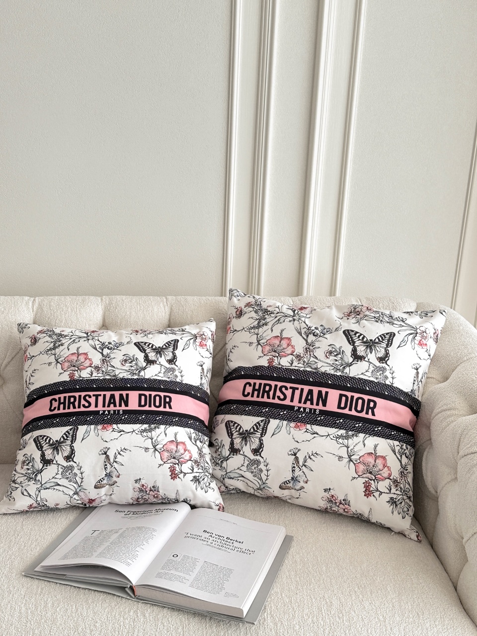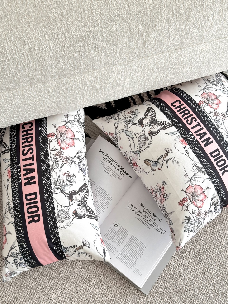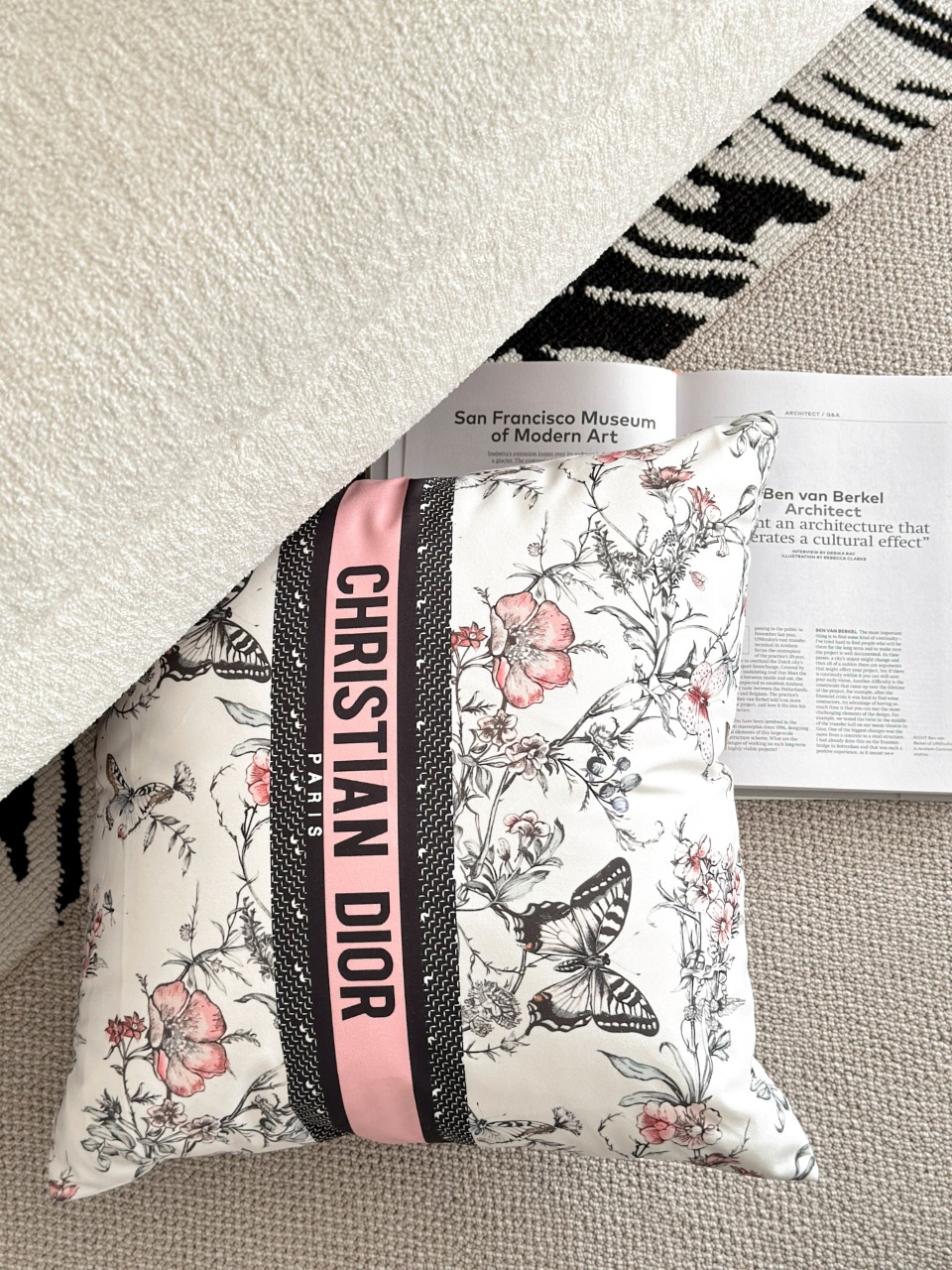 Elevate your home with the Dior Butterfly Plush Pillow. Soft cotton, elegant print. Available in multiple sizes.