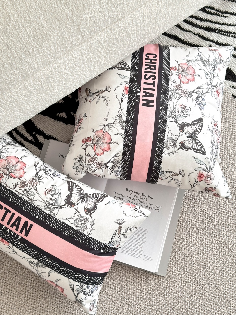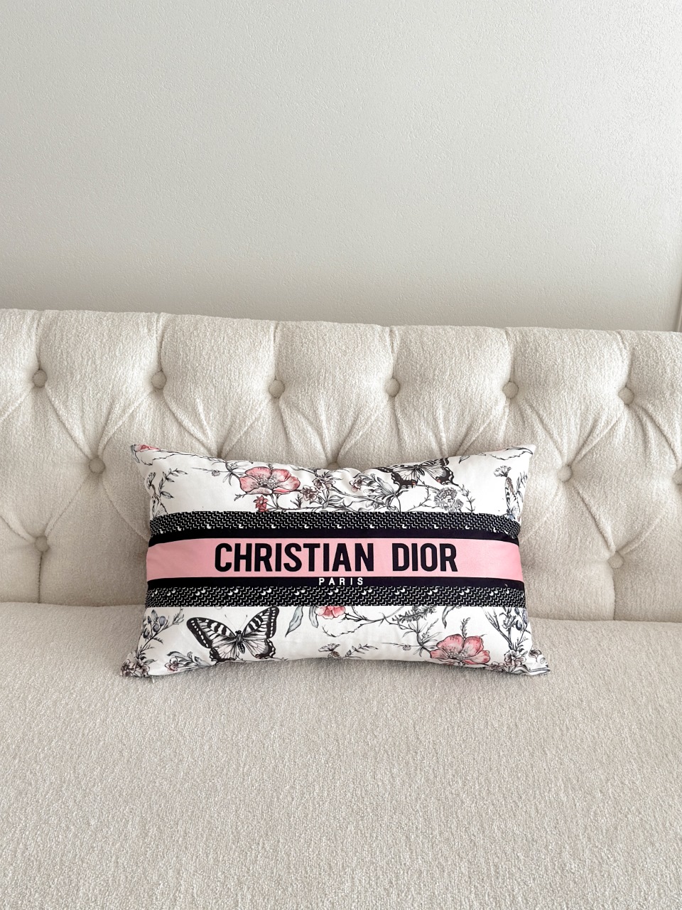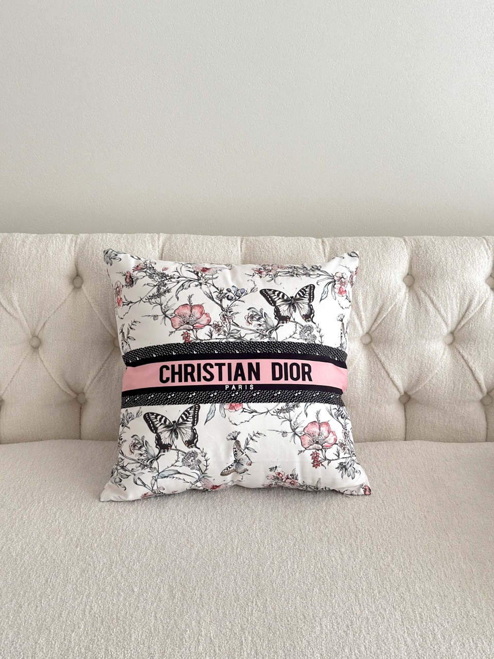 Introducing the Dior Butterfly Plush Pillow, a luxurious addition to your home decor. This pillow combines elegance with comfort, making it a perfect accent piece for any living space or bedroom.