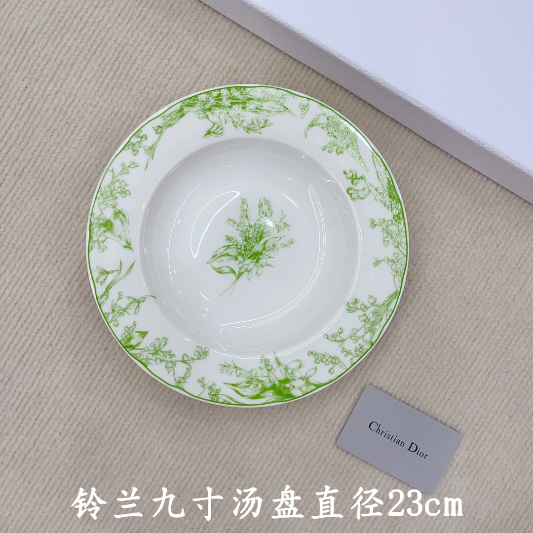 With the Dior Lily of the Valley Tableware Set, bring a touch of sophistication and charm to your table. Enjoy the perfect blend of style and practicality with this exquisite dinnerware collection.