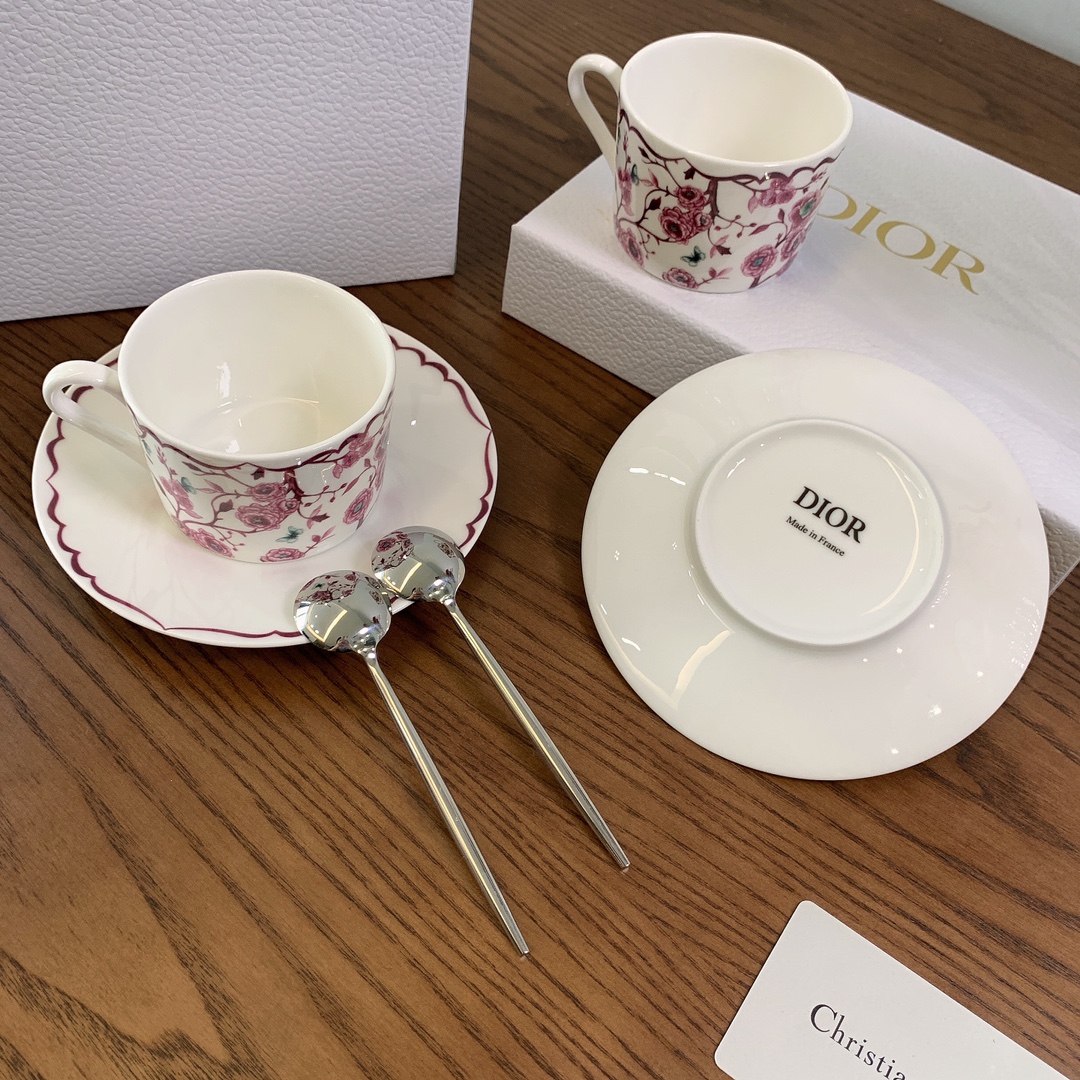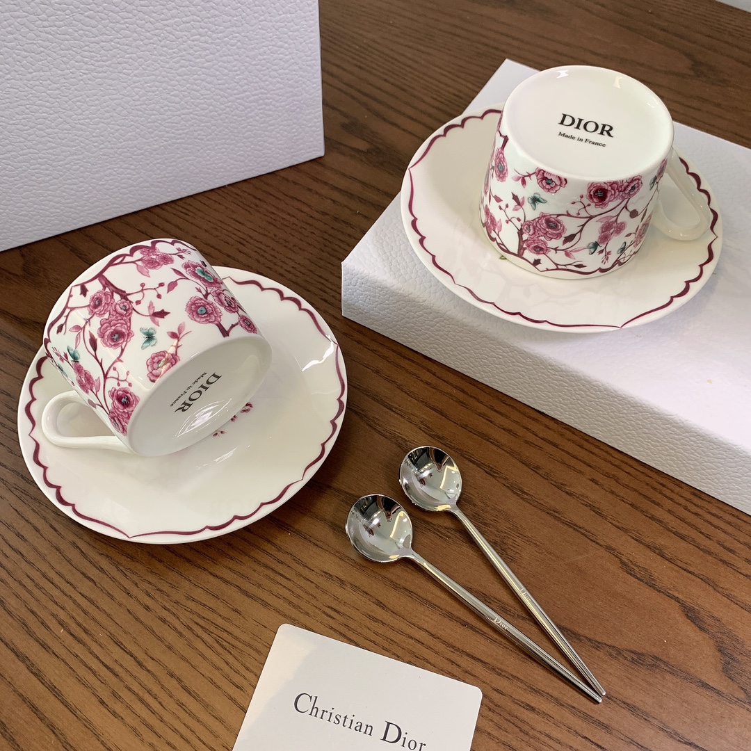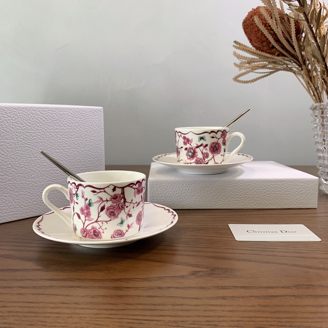 Elevate your tea time with this Dior 2-cup set. Made from top-tier high bone china, featuring a lovely floral design, and comes in a complete gift packaging.