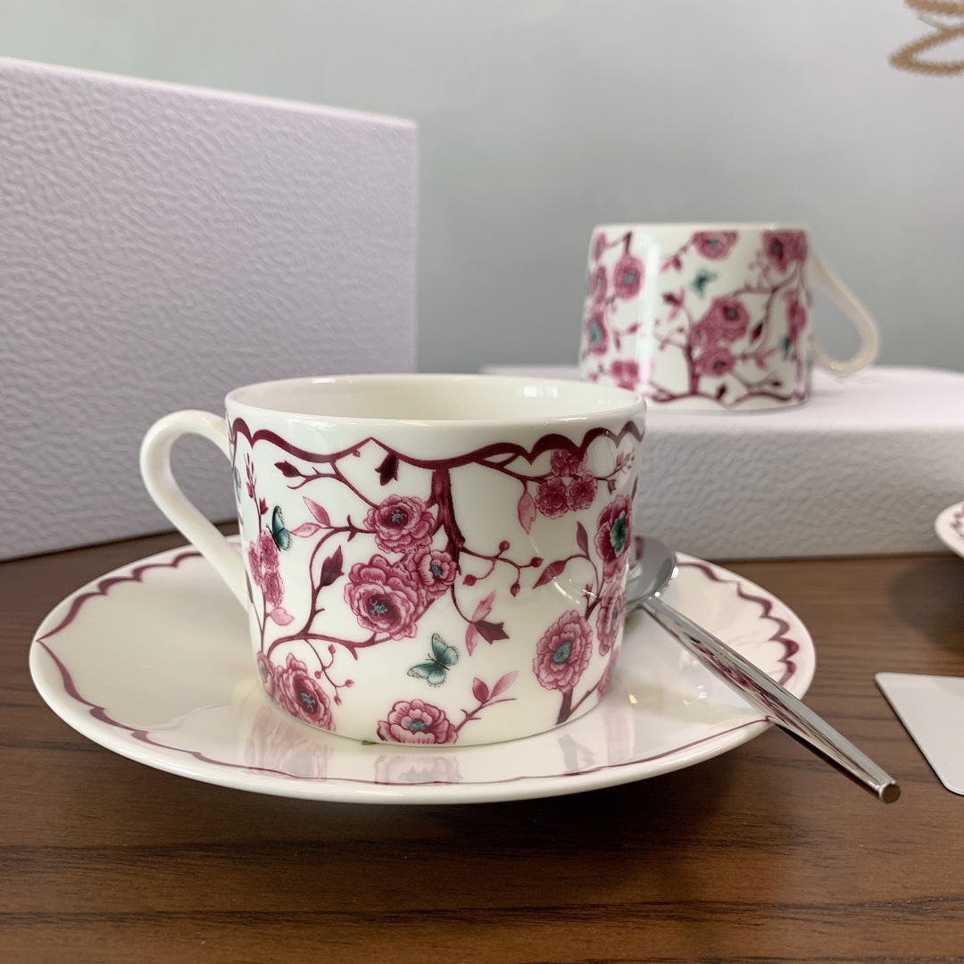 Dior Red Tea/Coffee Set - High Bone China, Exquisite Floral Design, Gift Packaging