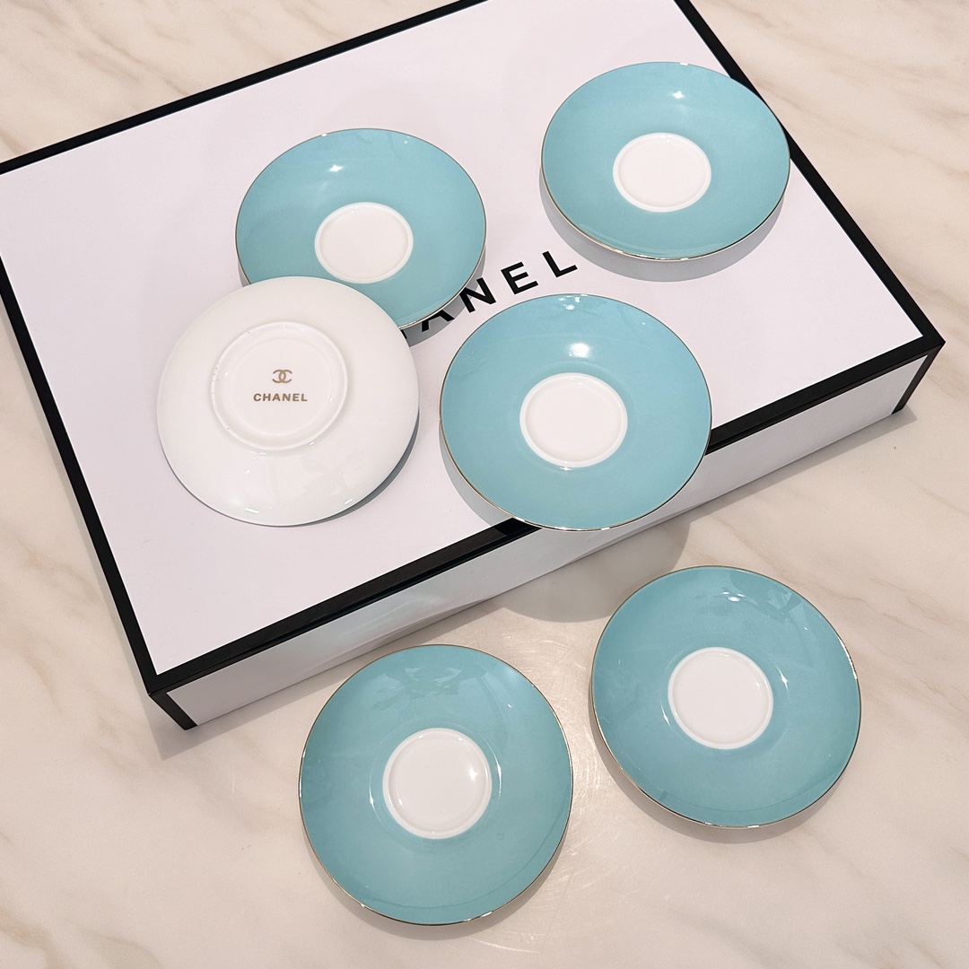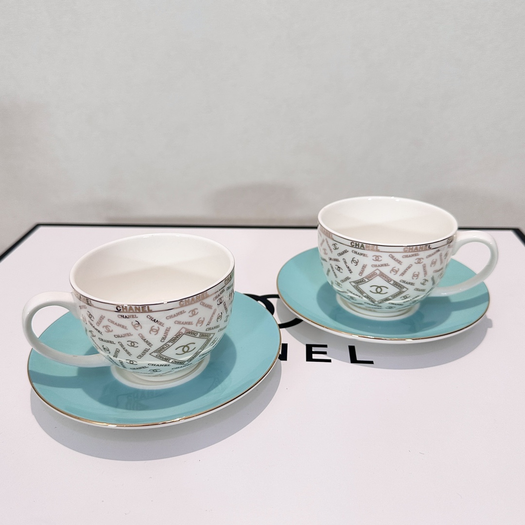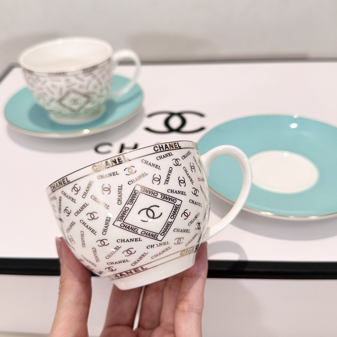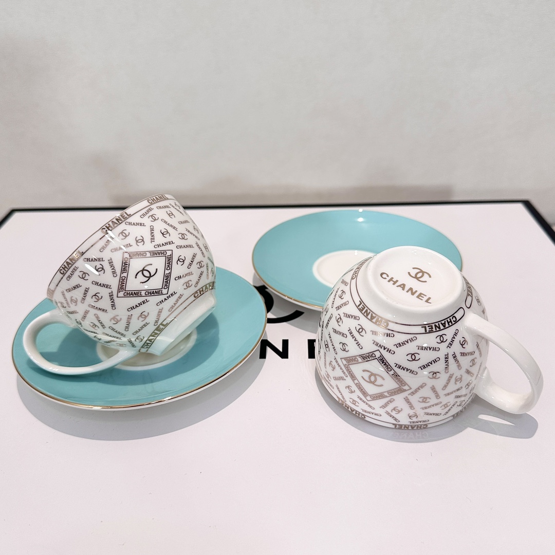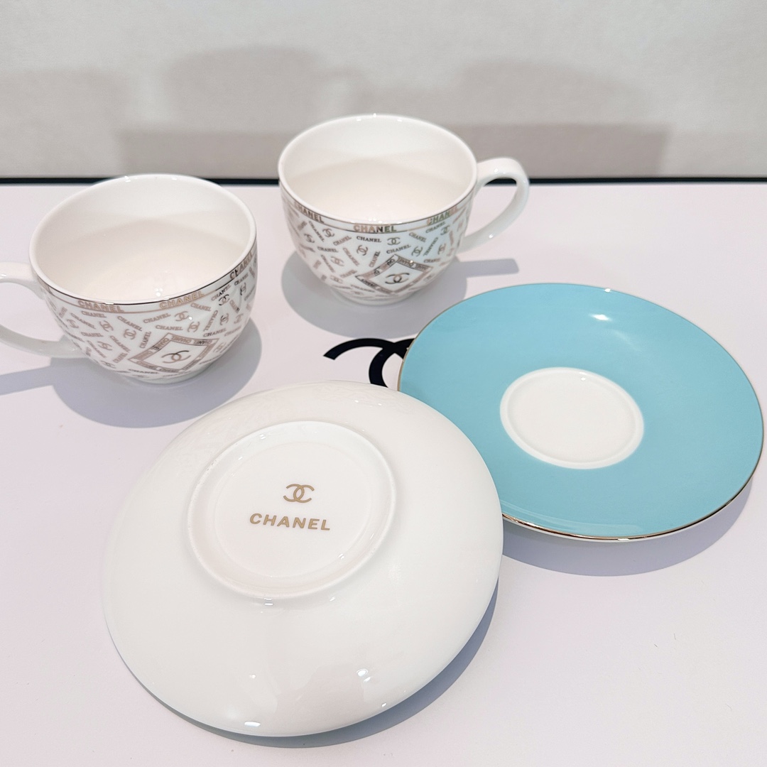Enjoy your leisure time with this CH*ANEL coffee set. Made with high-temperature glaze, it's durable, easy to clean, and features a classic design.