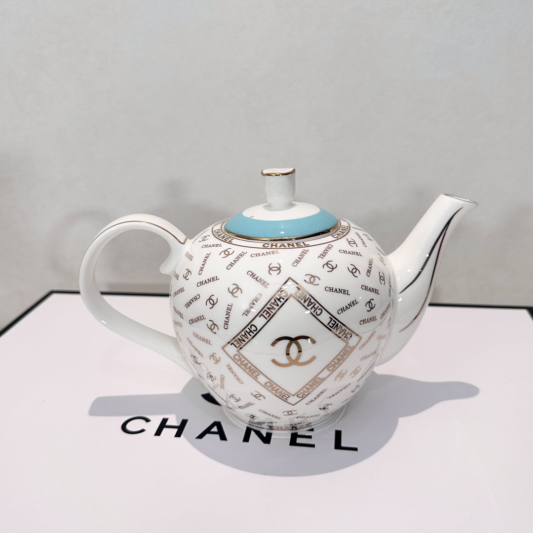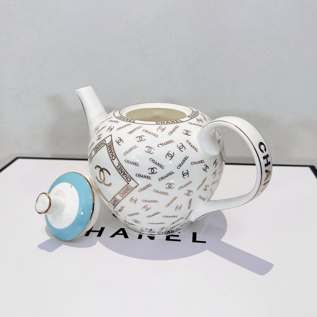 Elegant CH*ANEL Coffee Set, High Temperature Glaze Ceramic Teapot and Cup Set