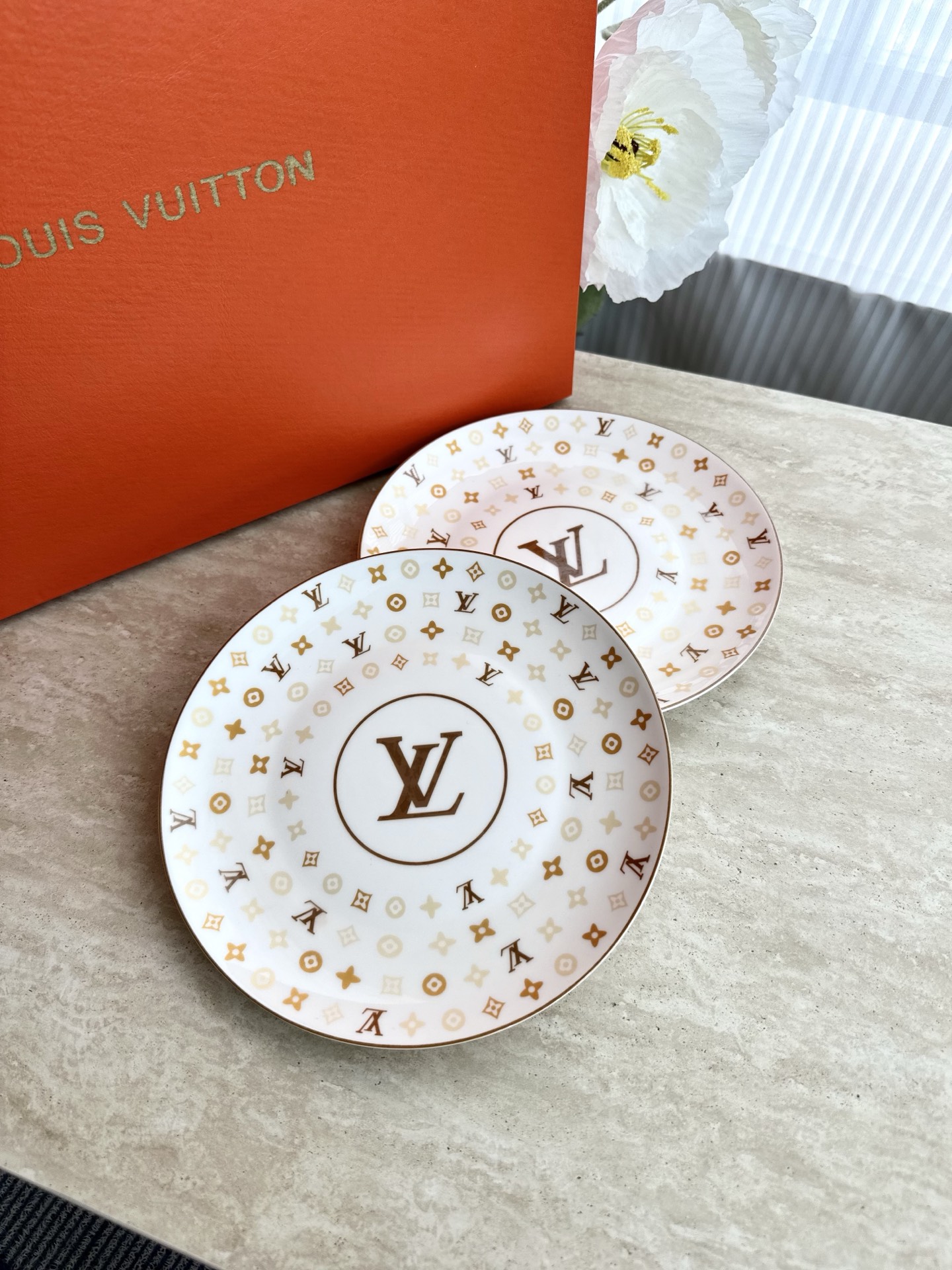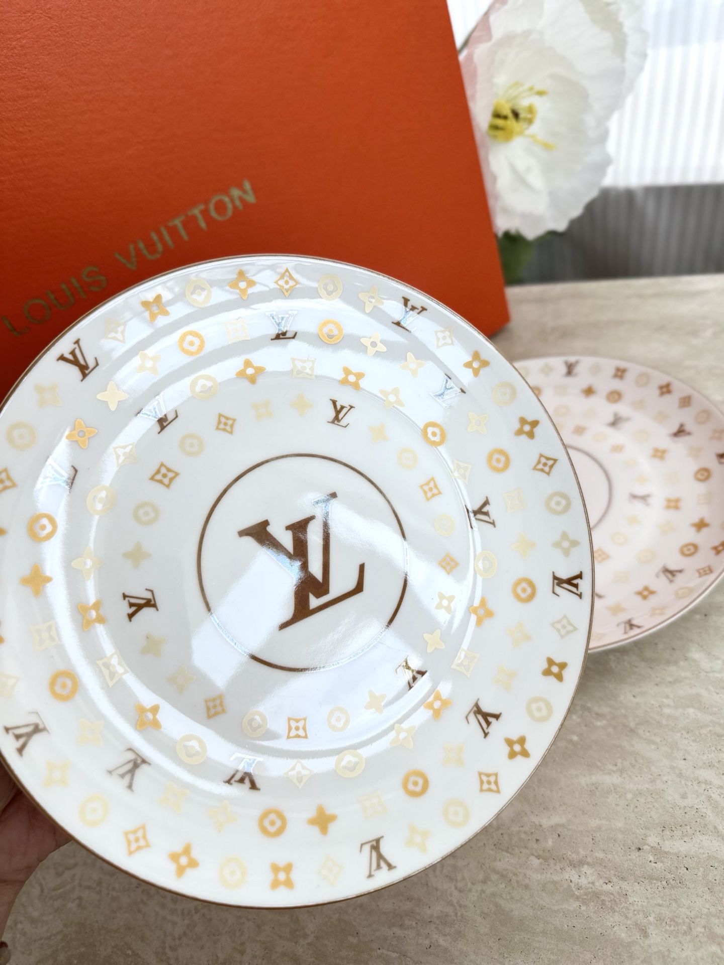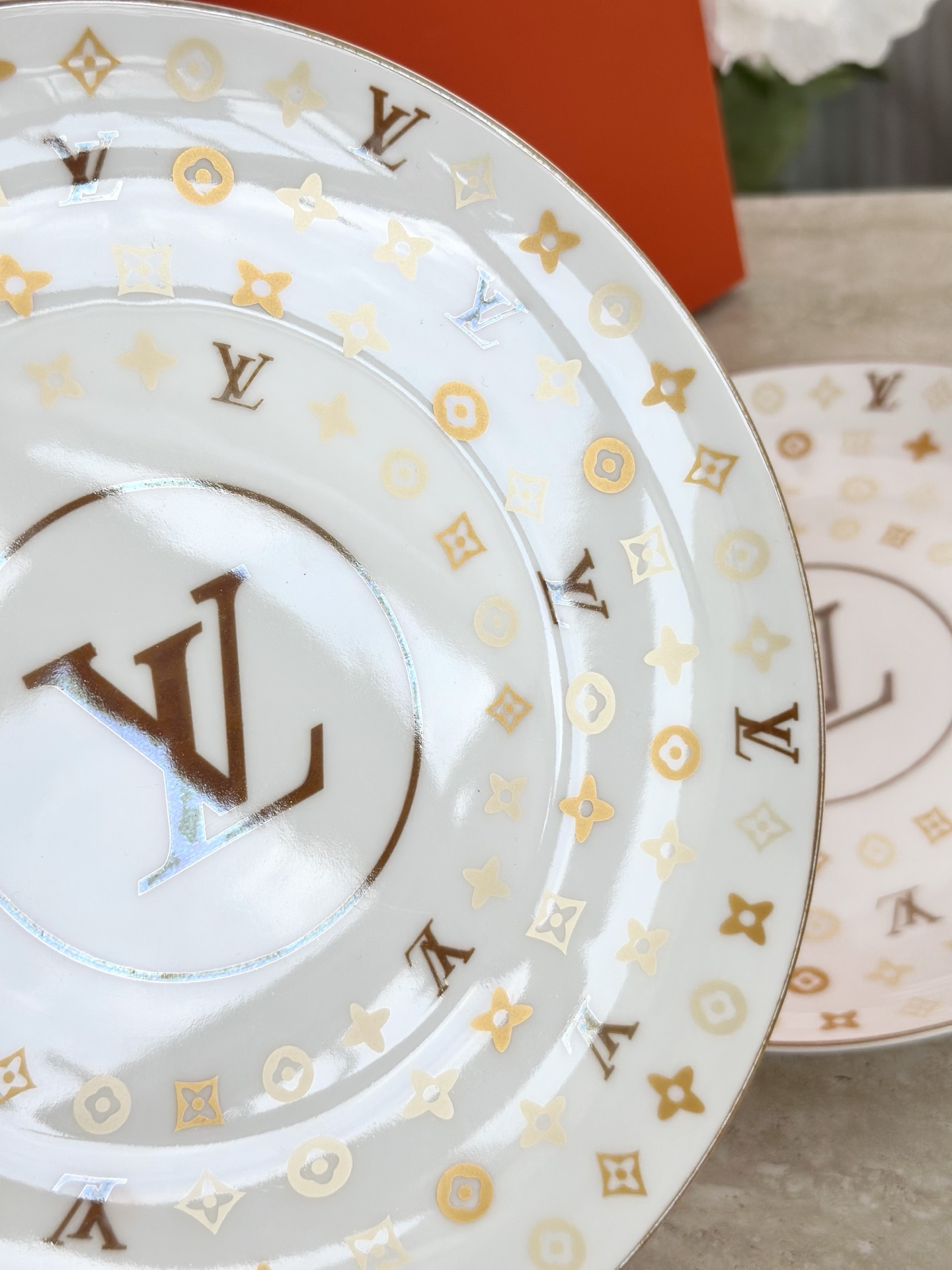 Elegant Louis Vuitton Inspired Bone China Dessert Plates - Set of 2